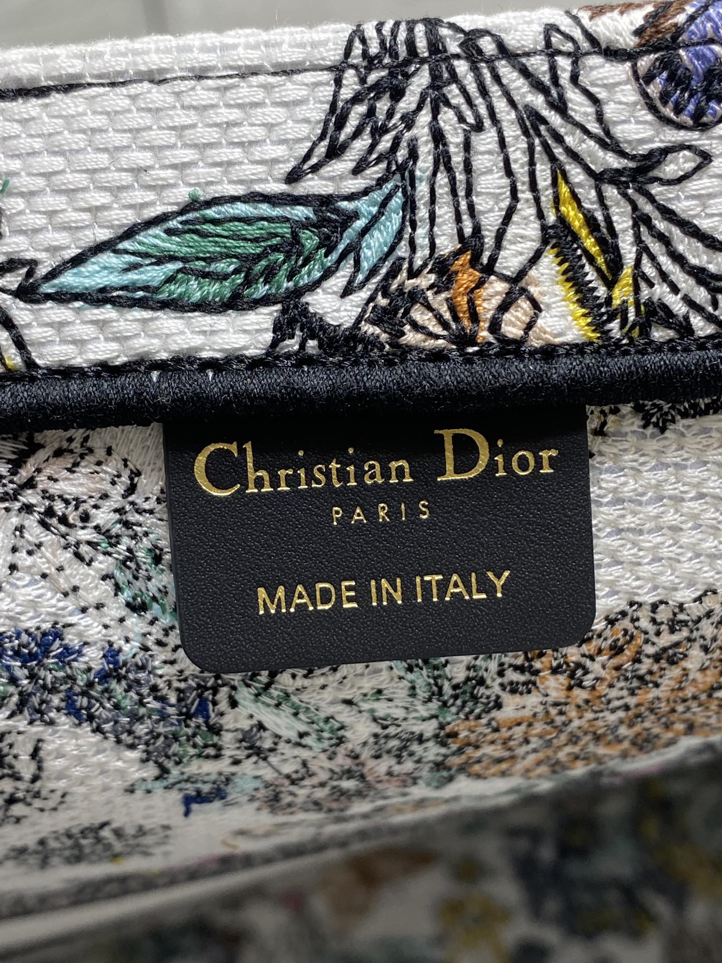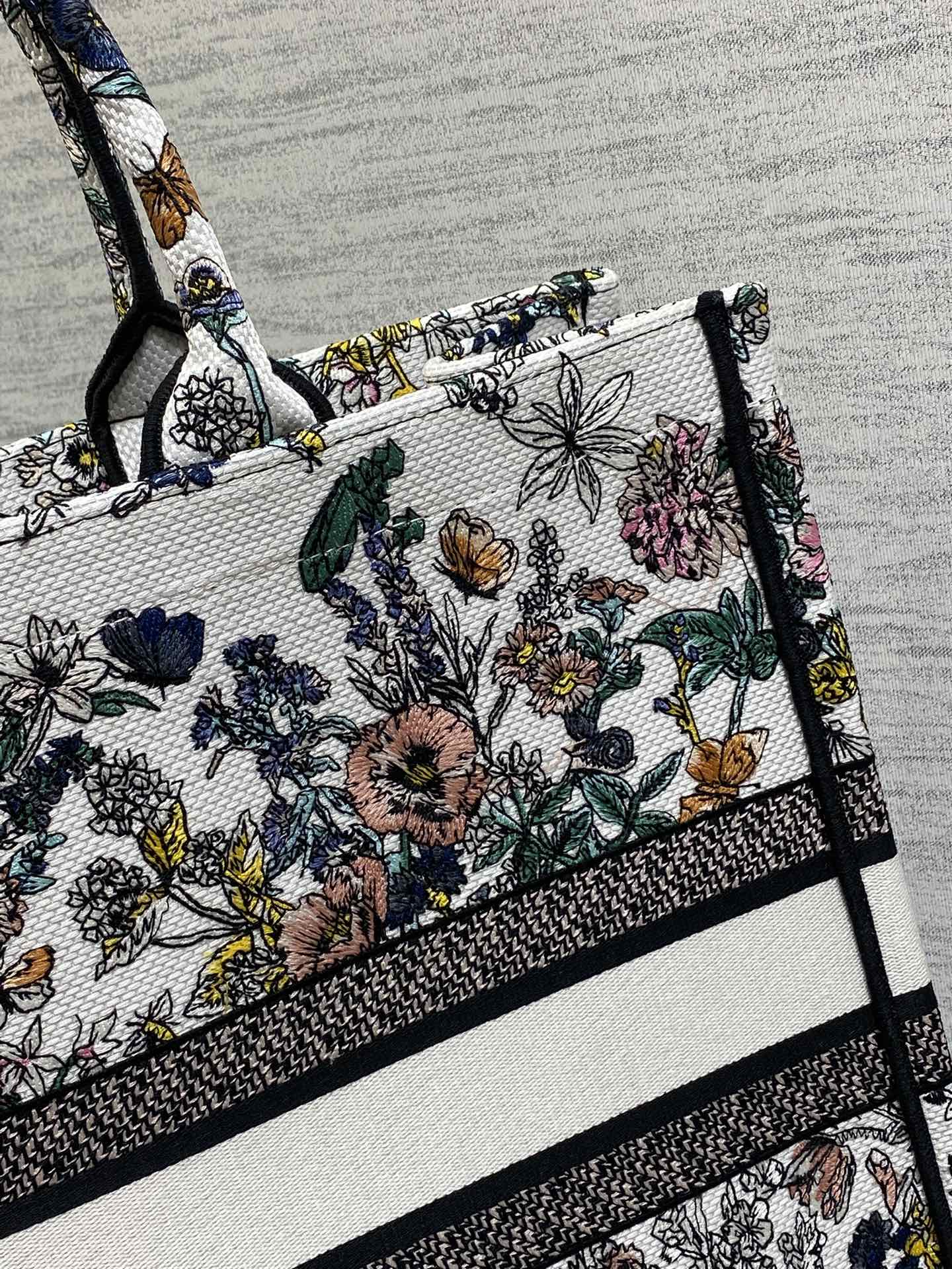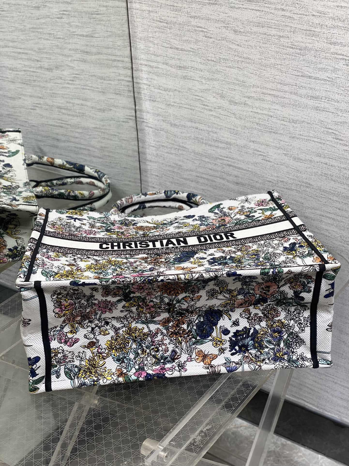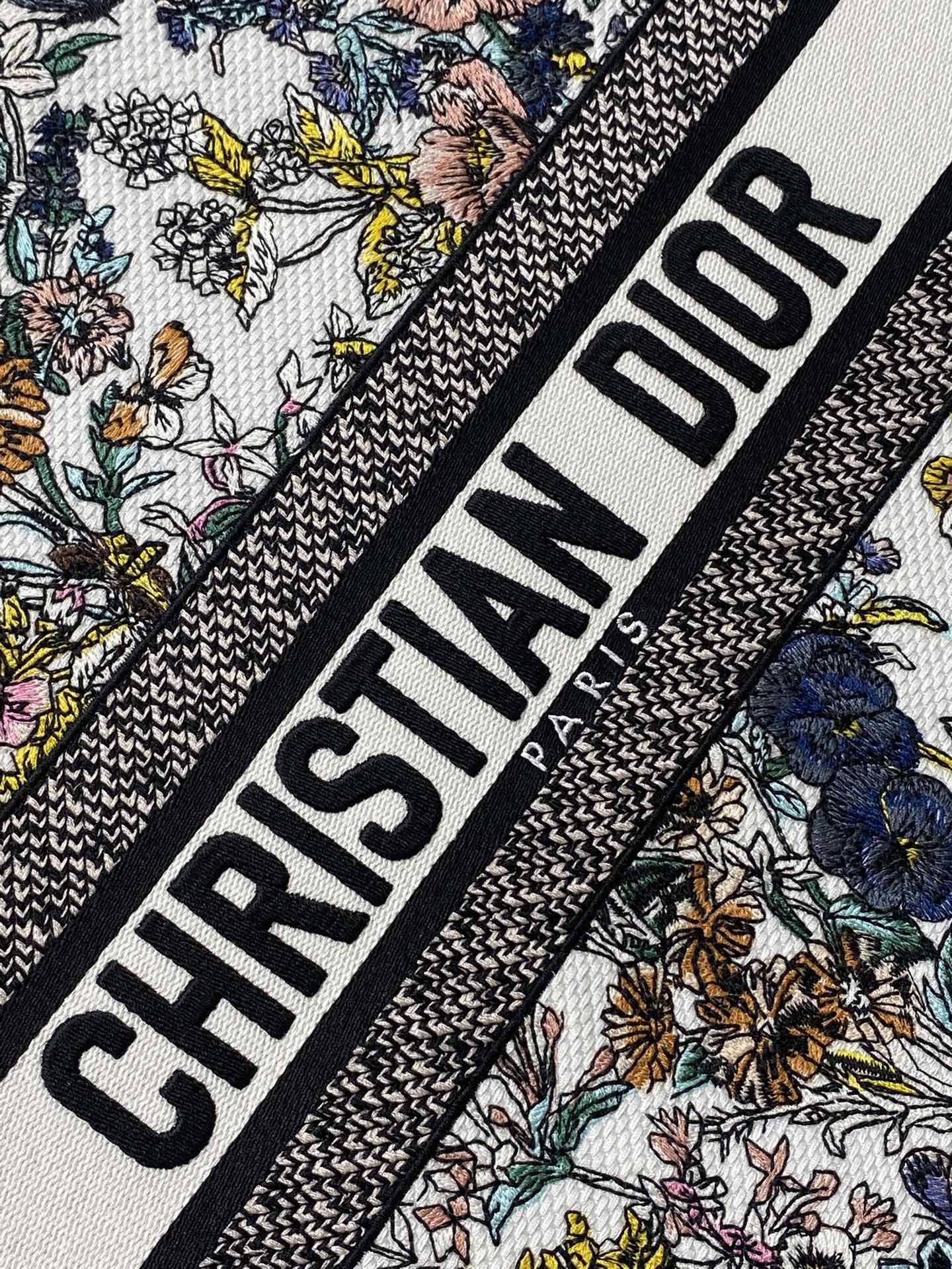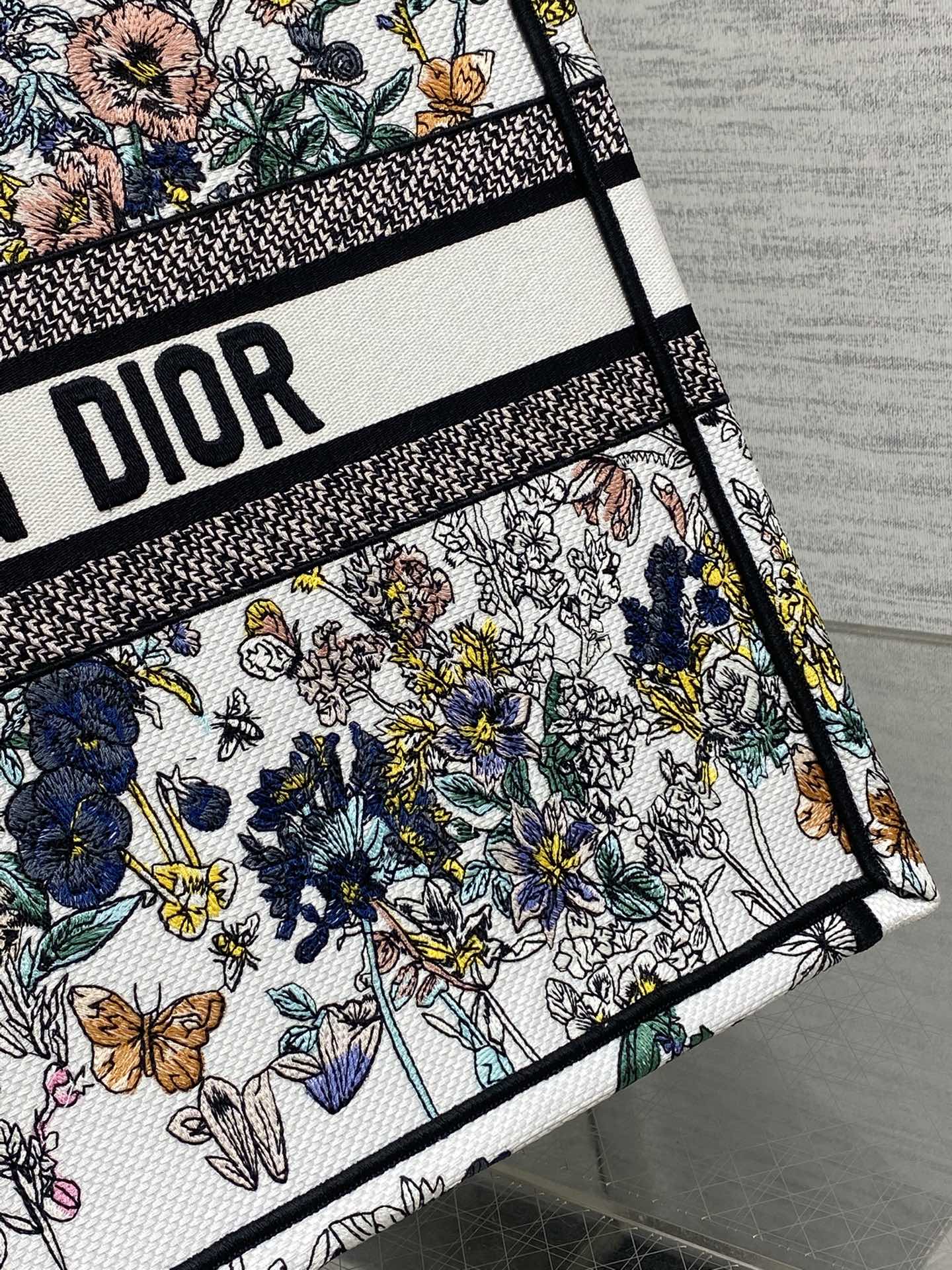 DIOR 25S LUCKY LARGE DIOR BOOK TOTE 42 IN MULTICOLOR DIOR FLOWERS CALENDAR ALLOVER EMBROIDERY