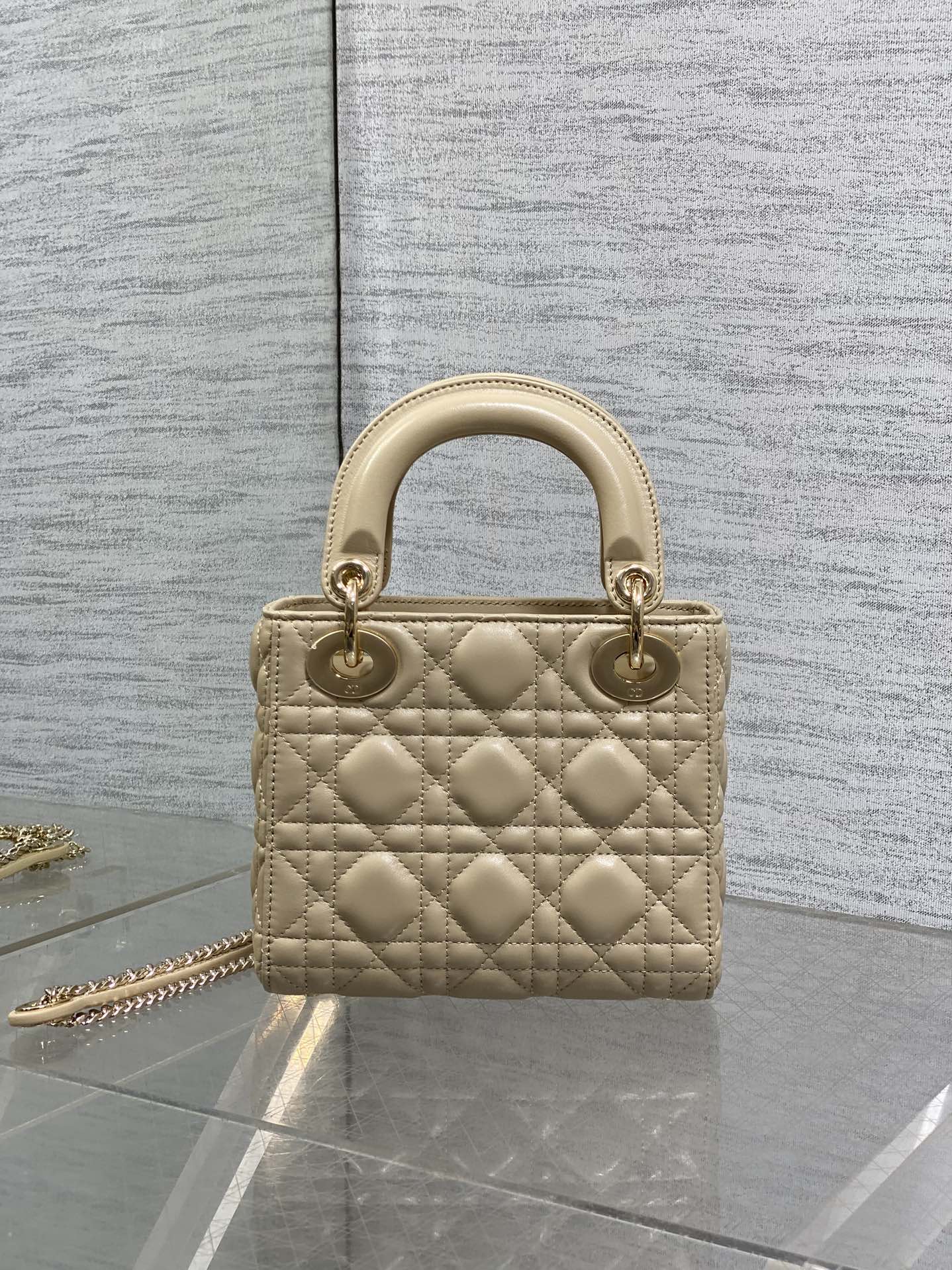 DIOR 25S MINI LADY DIOR BAG 17 IN BISCUIT CALFSKIN CHARM CRYSTAL EMBELLISHMENTS