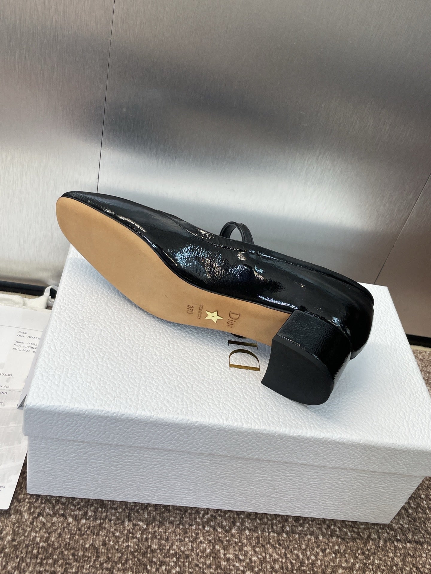 DIOR 25S ROUND-TOE MARY JANE BALLET FLATS IN BLACK CALFSKIN