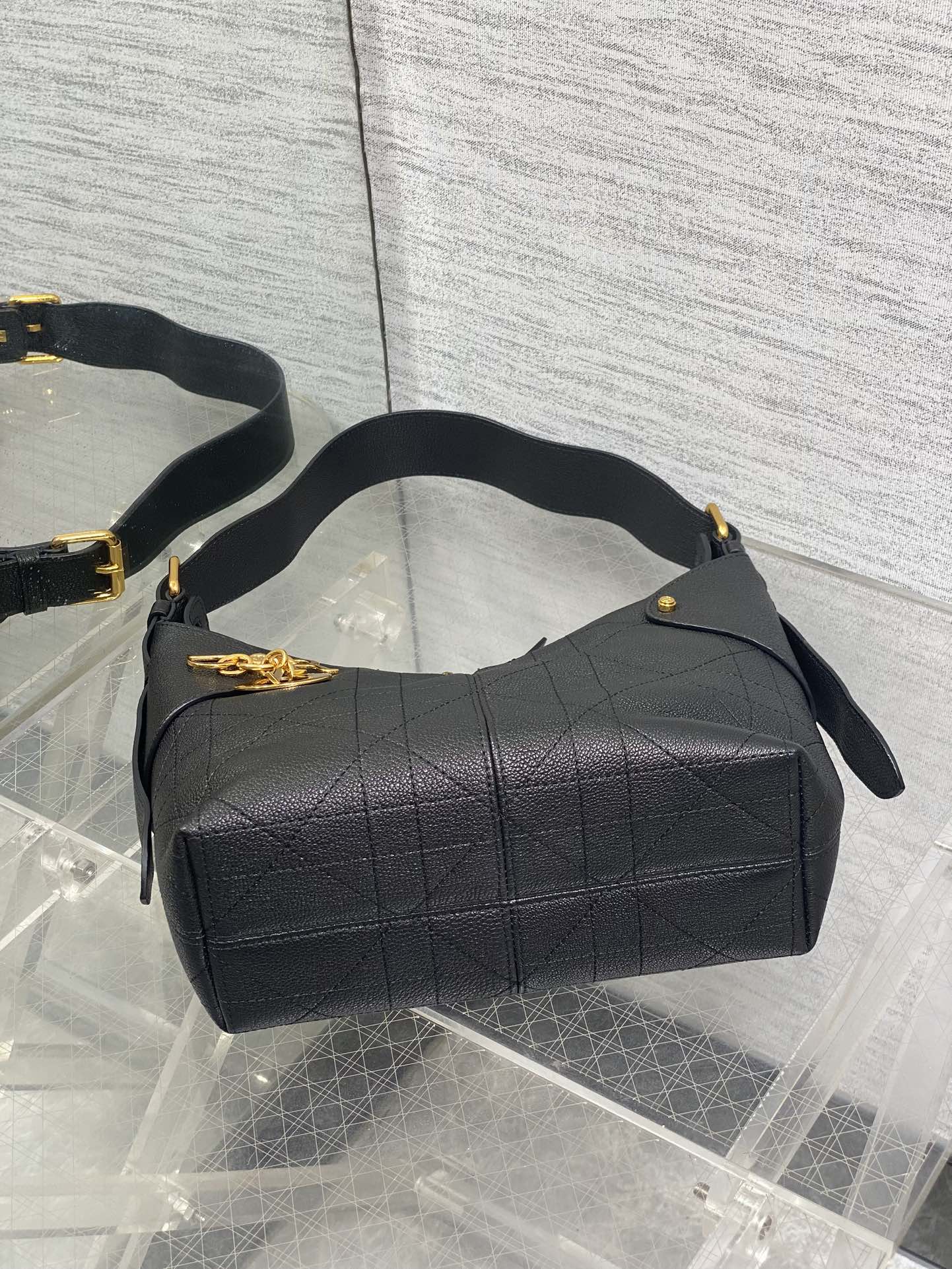 DIOR 25S SMALL VOYAGE BAG 23 IN BLACK FLAT MACROCANNAGE GRAINED CALFSKIN