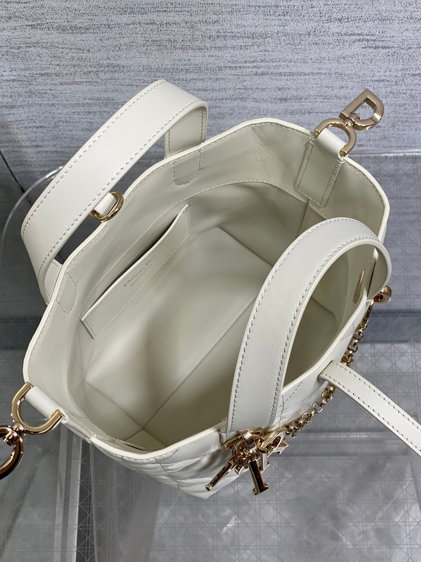 DIOR 25S TOUJOURS VERTICAL TOTE BAG 18 IN IVORY CALFSKIN WITH CHARM BRACELET STRAP