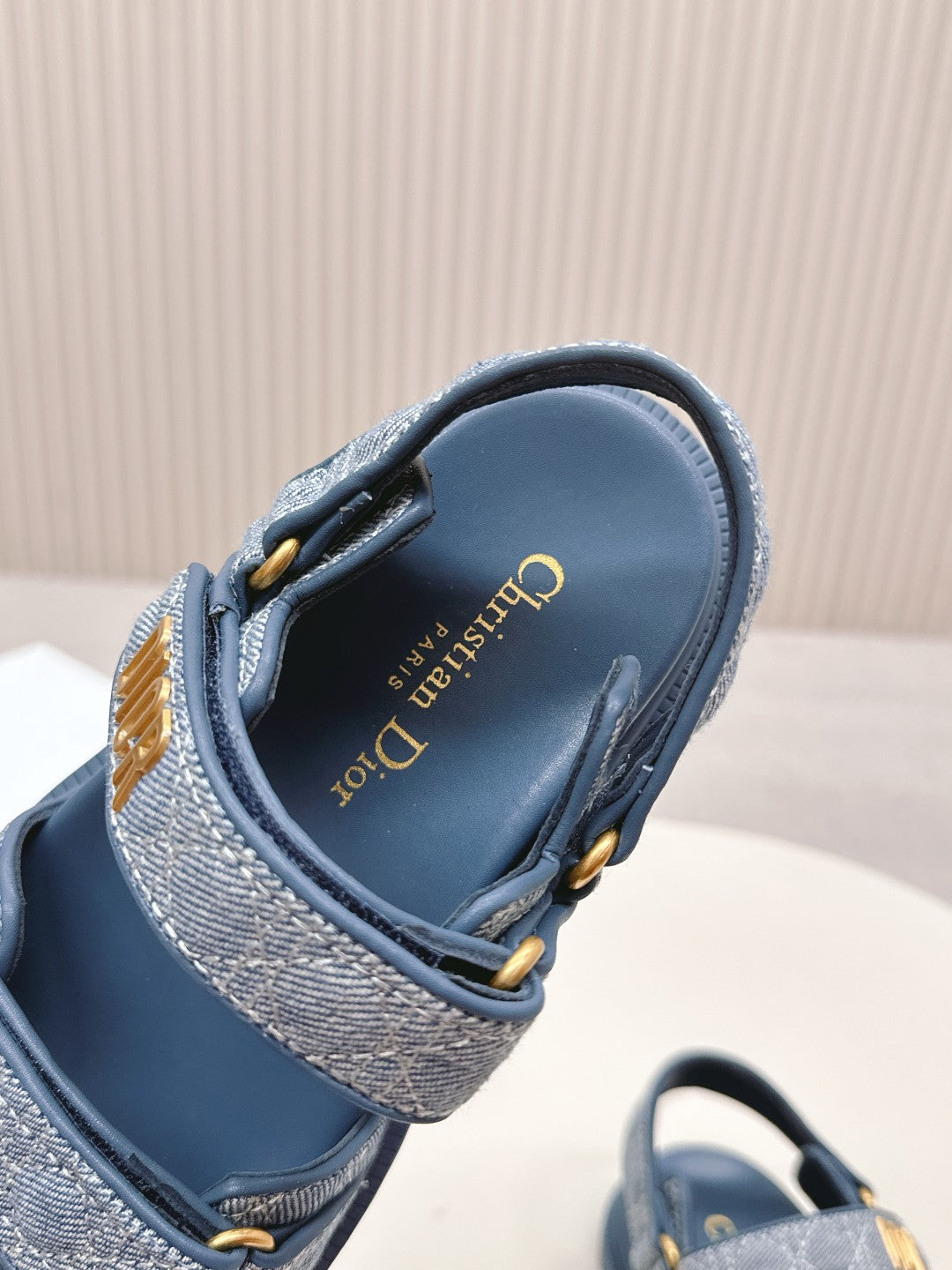 DIOR BACK-STRAP SANDALS 25S IN NAVY BLUE DENIM AND CALFSKIN