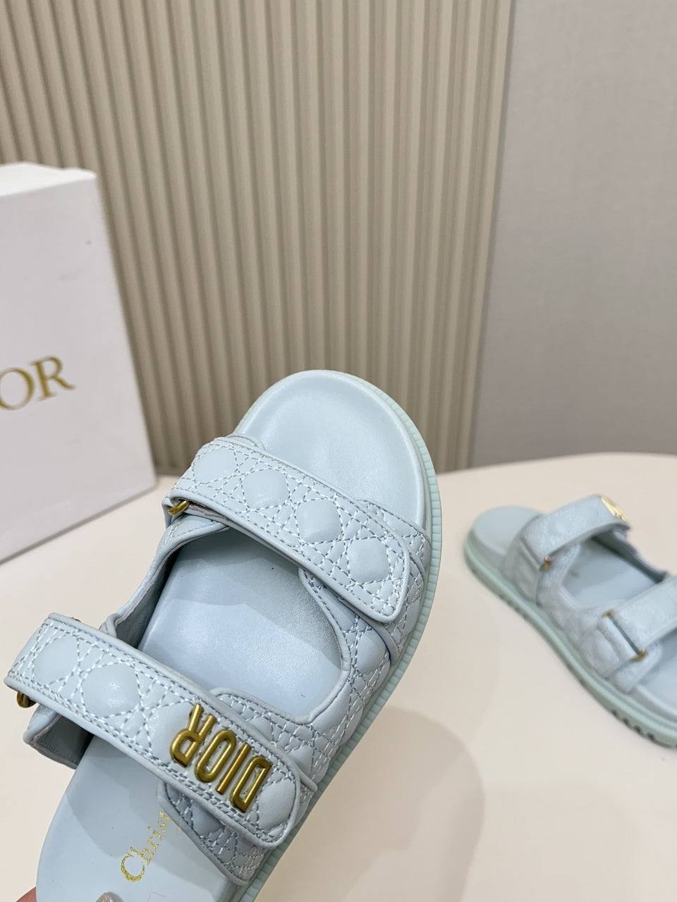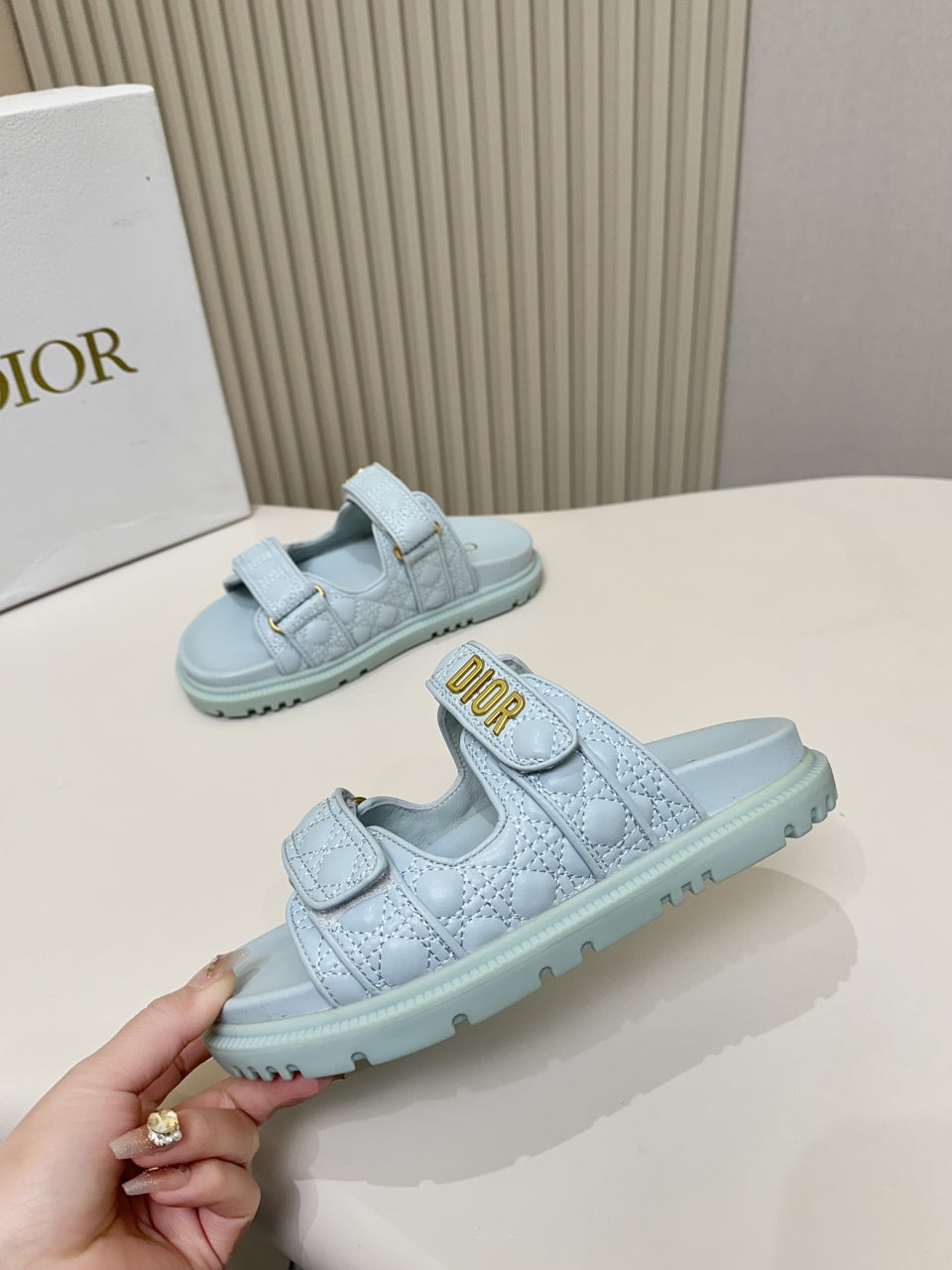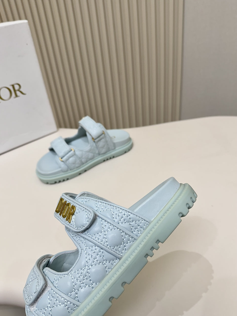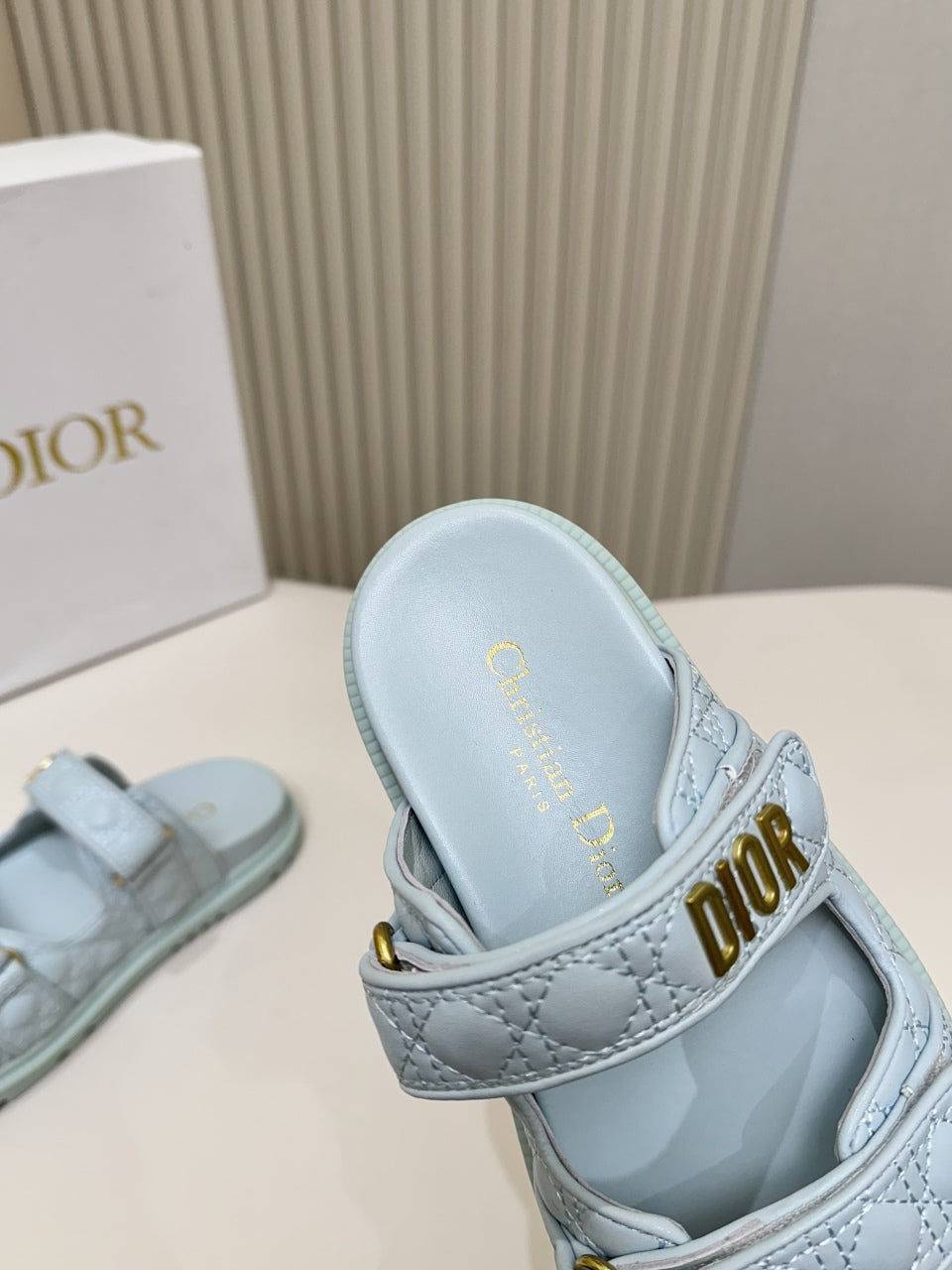 DIOR CLASSIC DOUBLE-STRAP SLIDES 25S IN PASTEL BLUE CALFSKIN