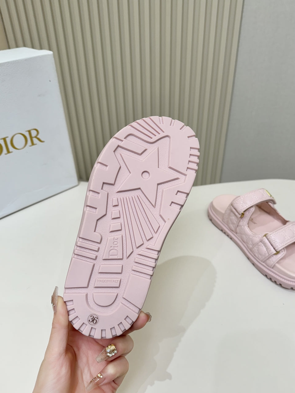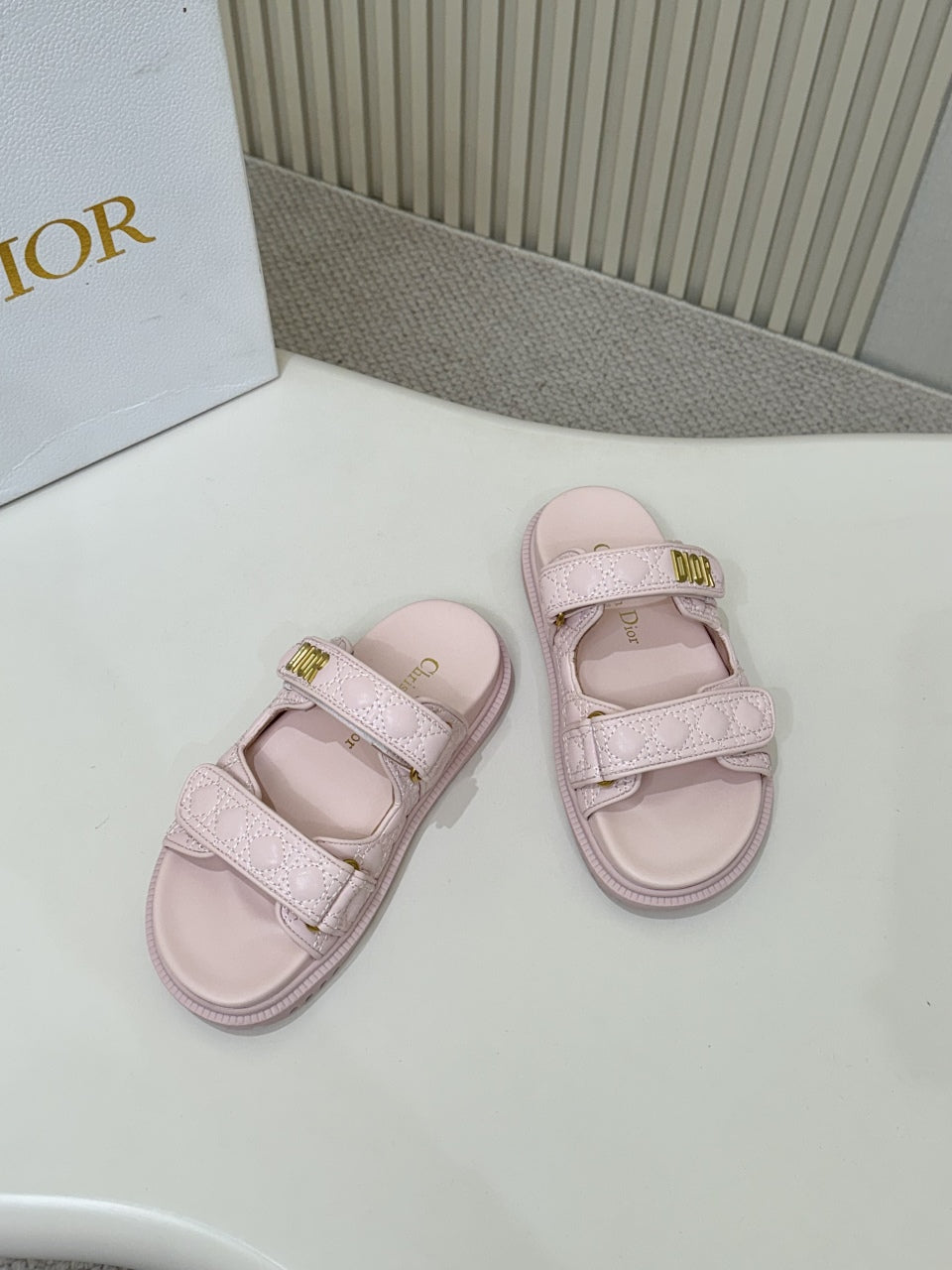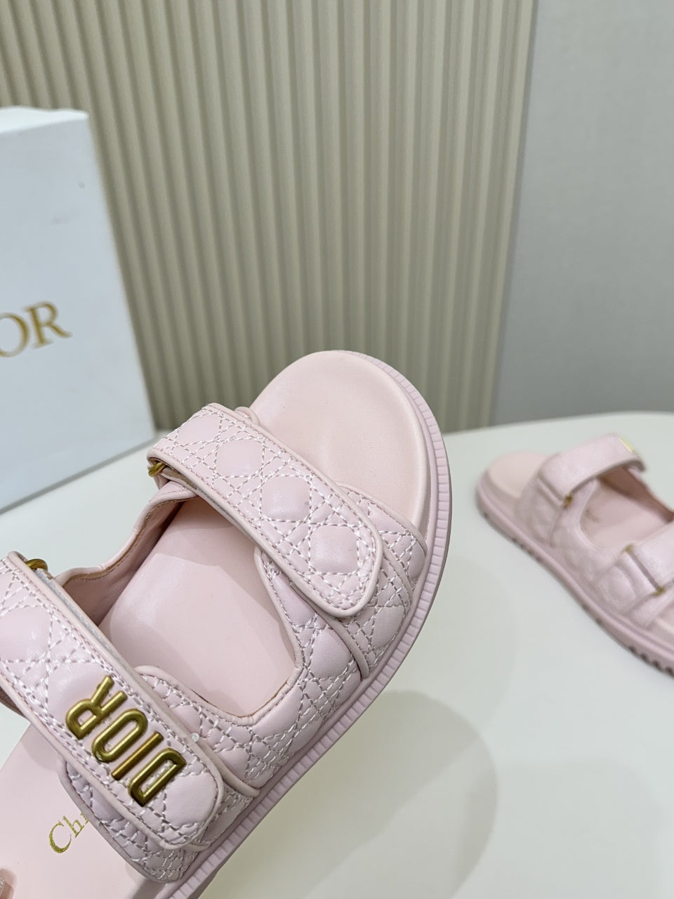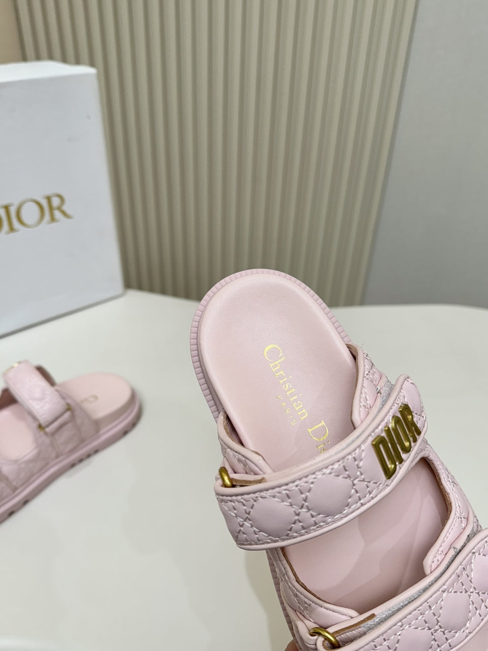 DIOR CLASSIC DOUBLE-STRAP SLIDES 25S IN PASTEL PINK CALFSKIN