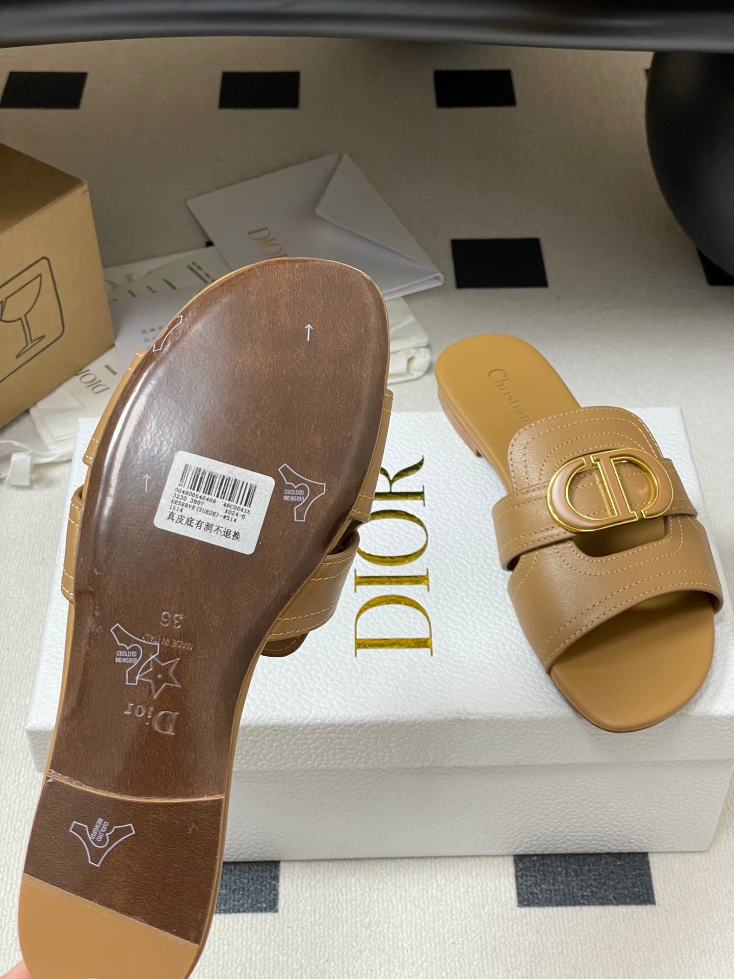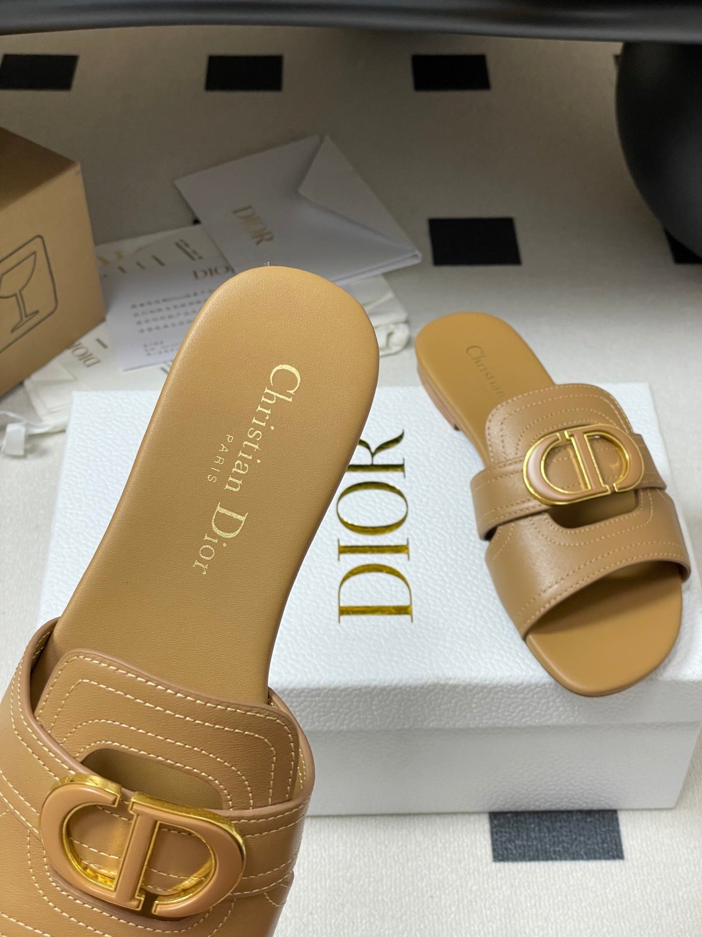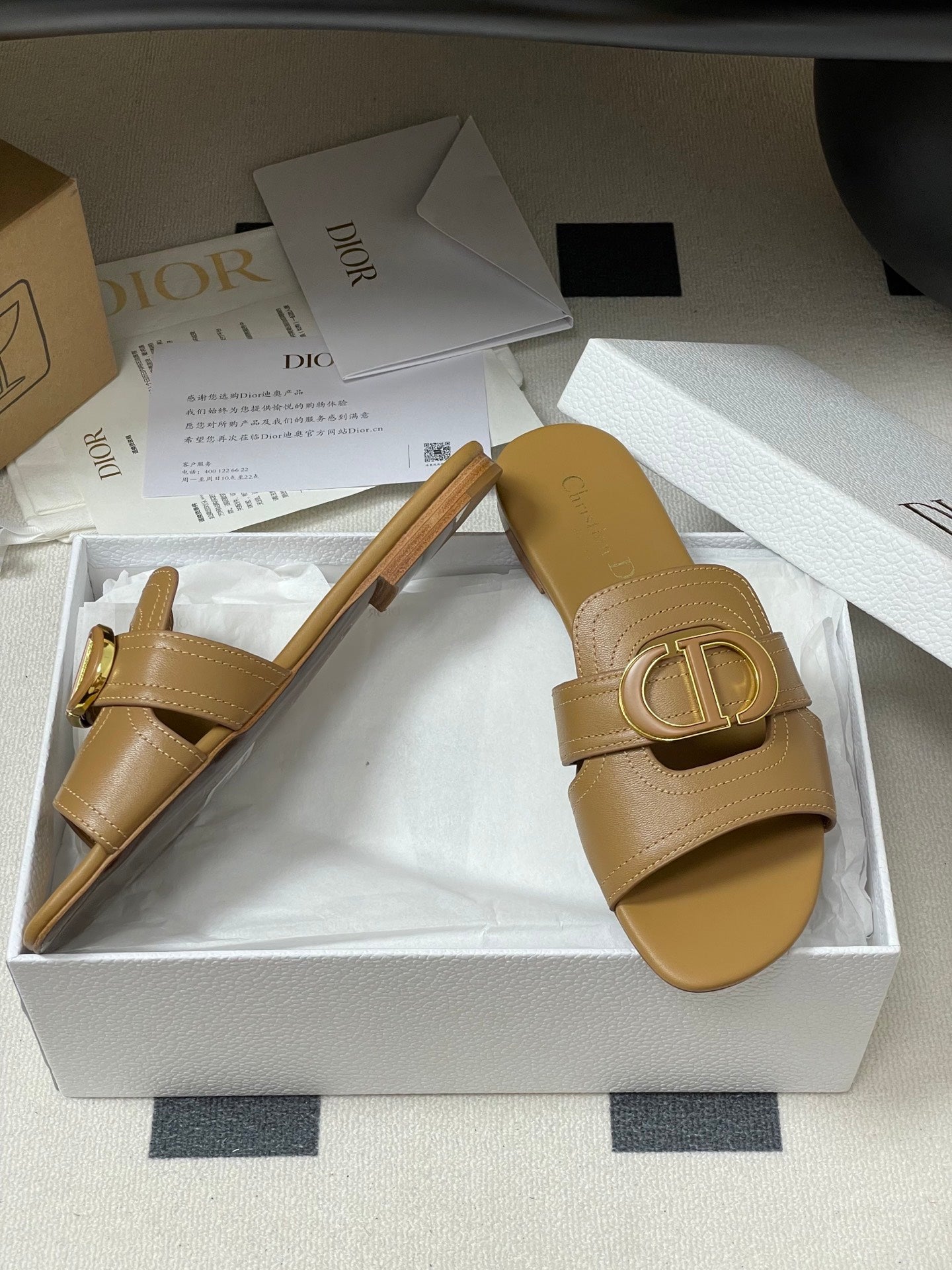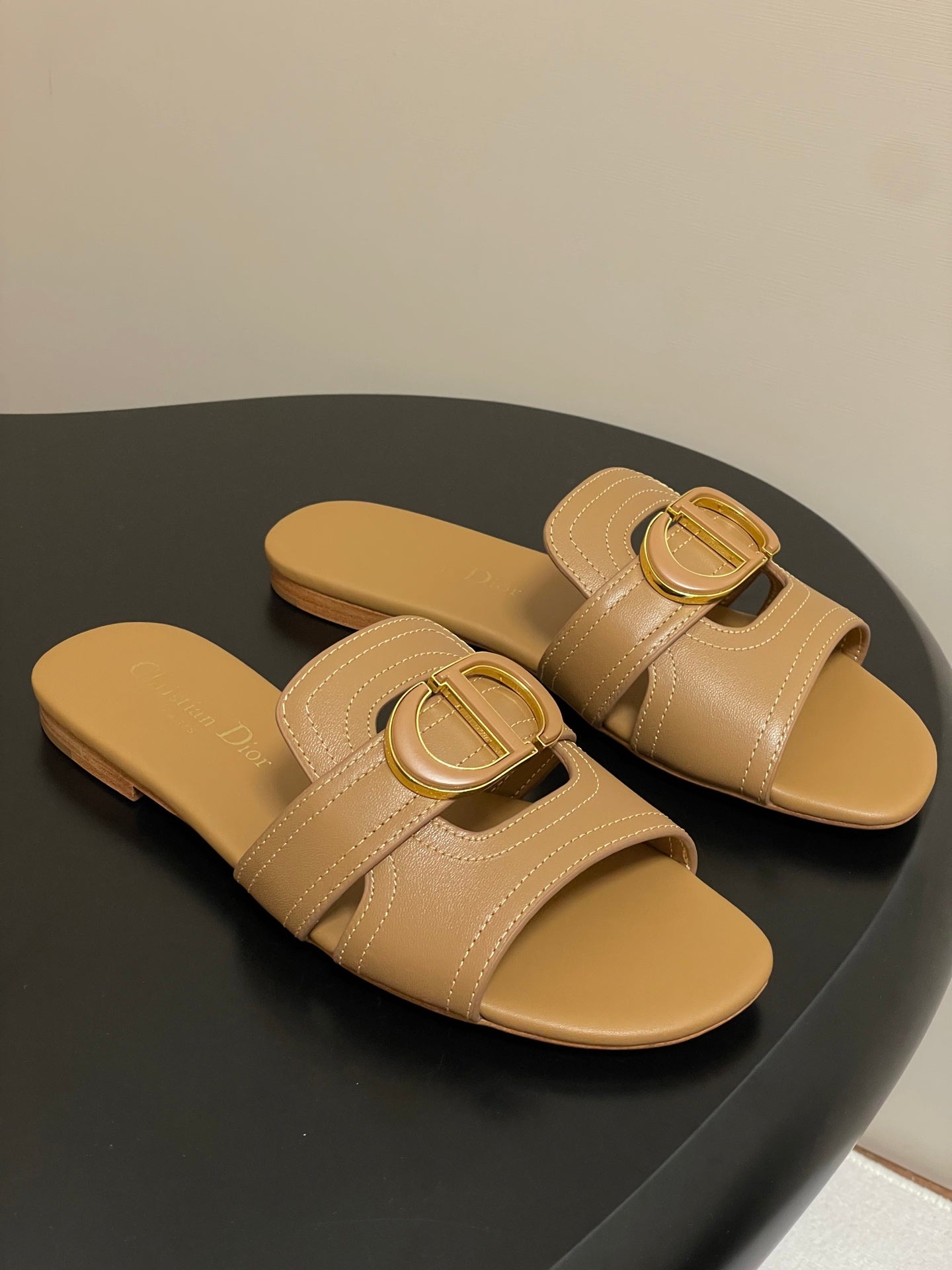 DIOR CLASSIC MONTAIGNE SANDALS 25S IN LIGHT BROWN LAMBSKIN WITH CD LOGO