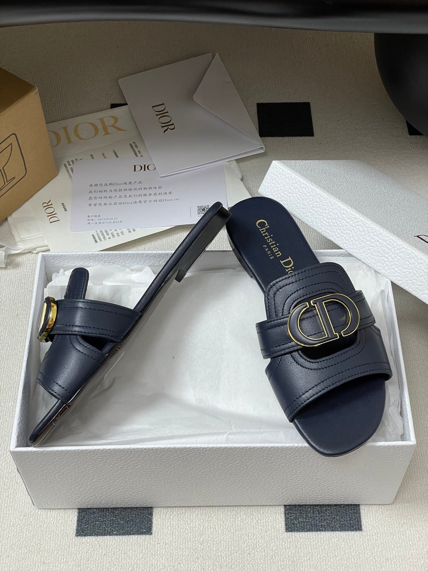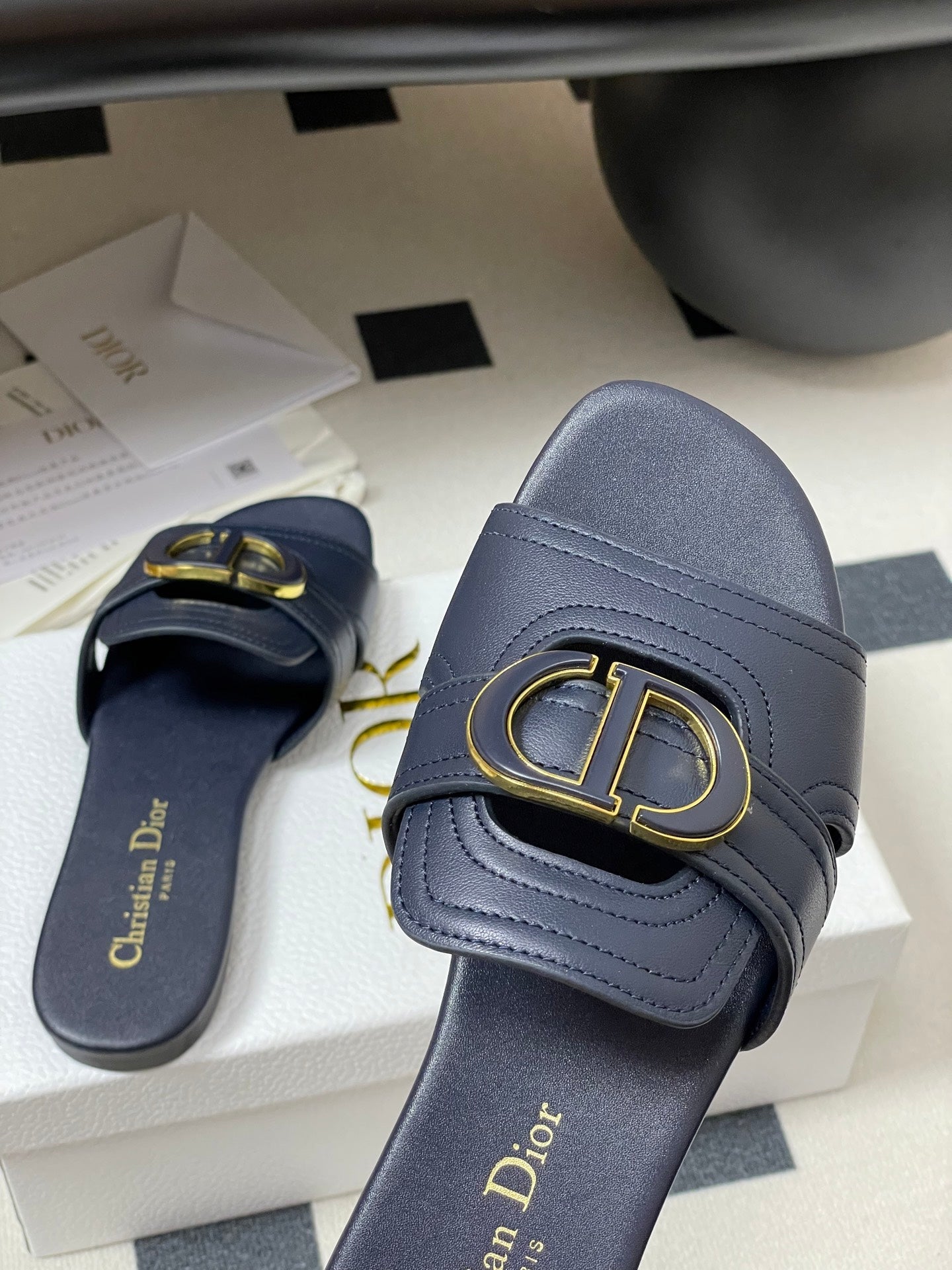DIOR CLASSIC MONTAIGNE SANDALS 25S IN MIDNIGHT BLUE LAMBSKIN WITH CD LOGO