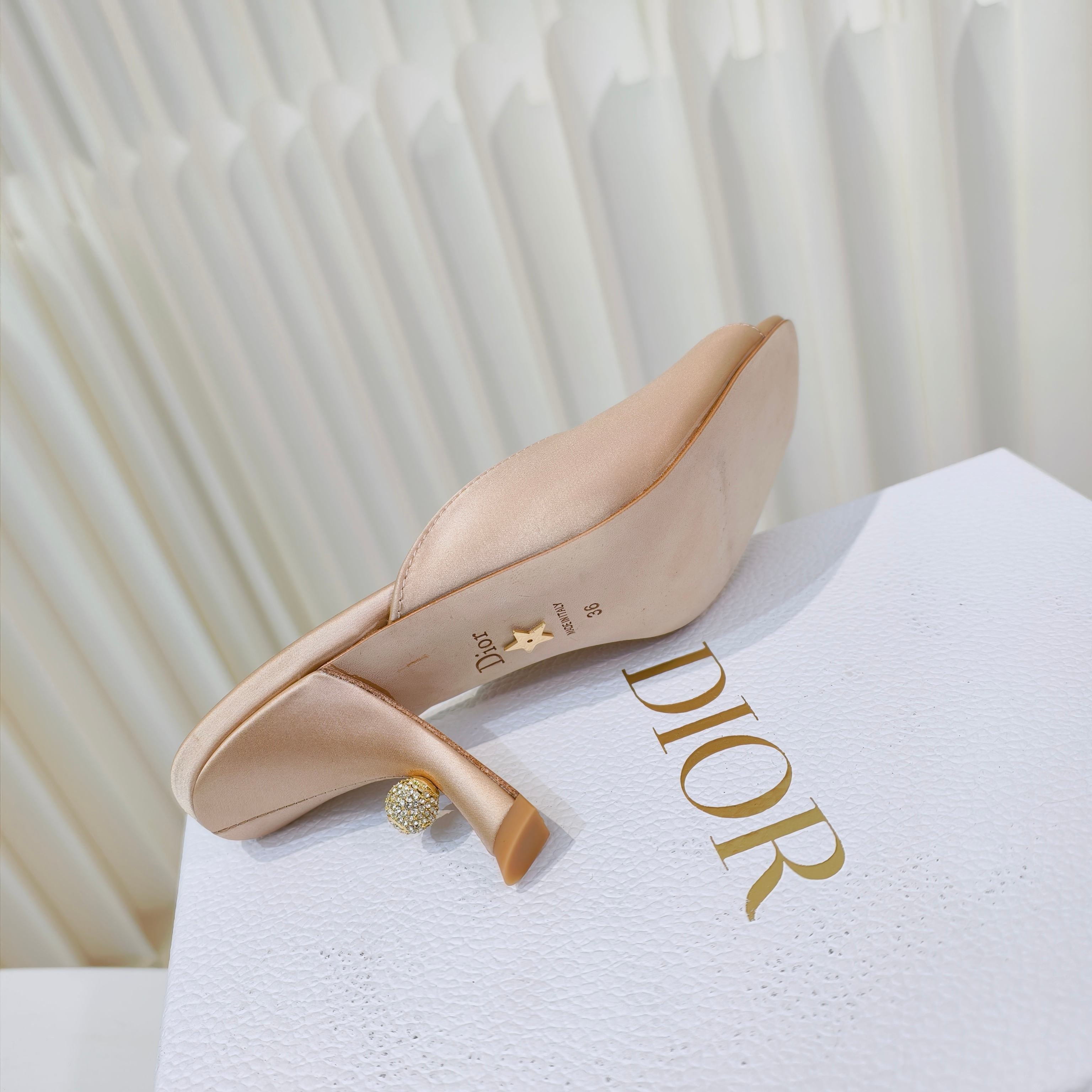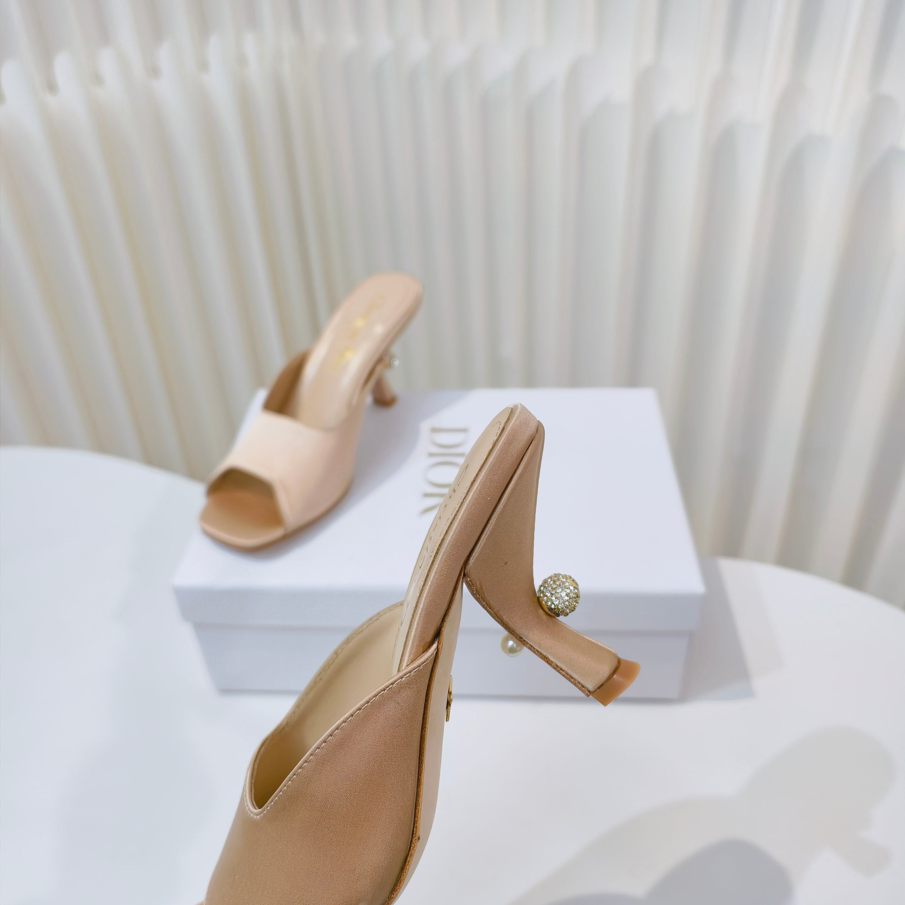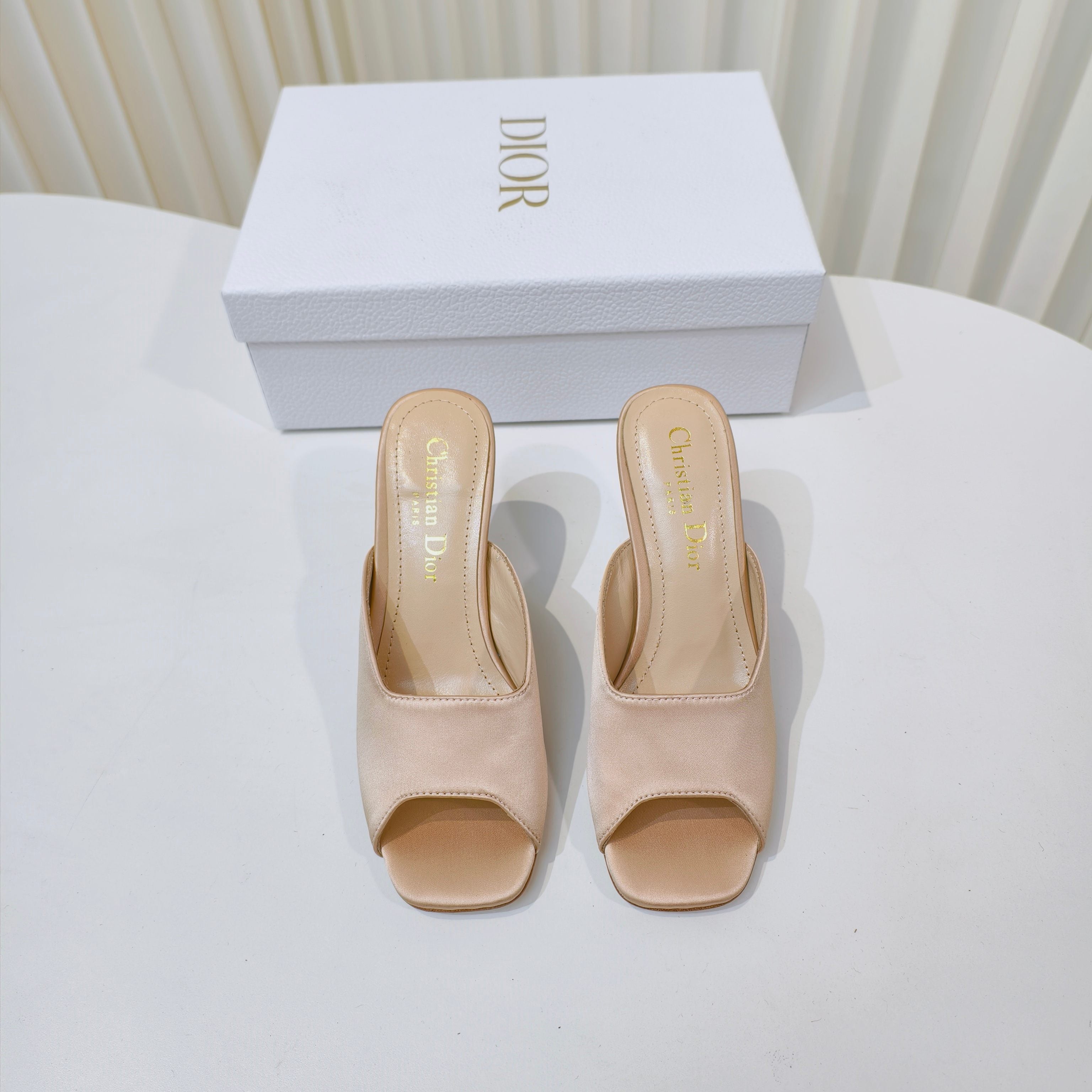 DIOR EMBELLISHED HIGH HEEL SLIDES 25S IN LIGHT BEIGE SATIN