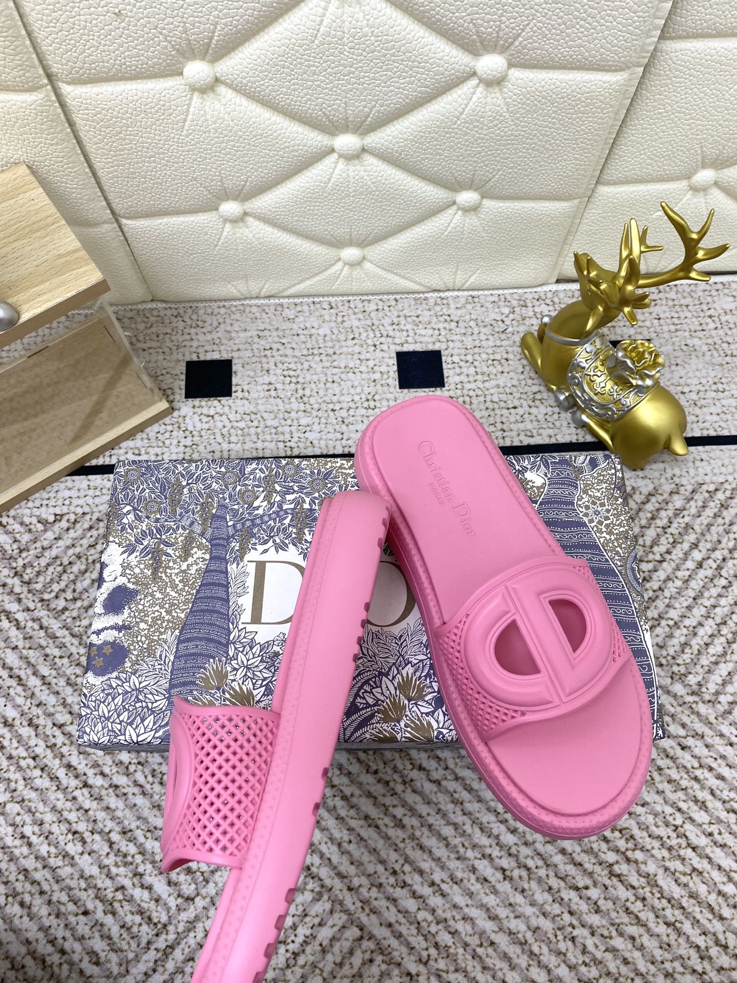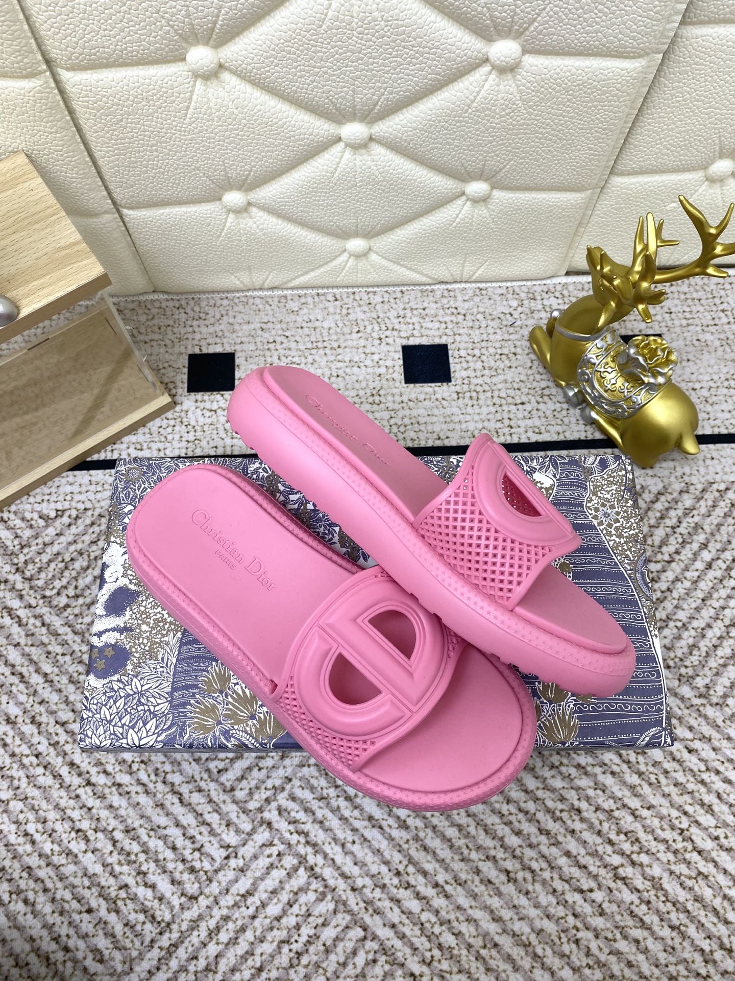 DIOR FLAT SLIDES 25S IN PINK TPU
