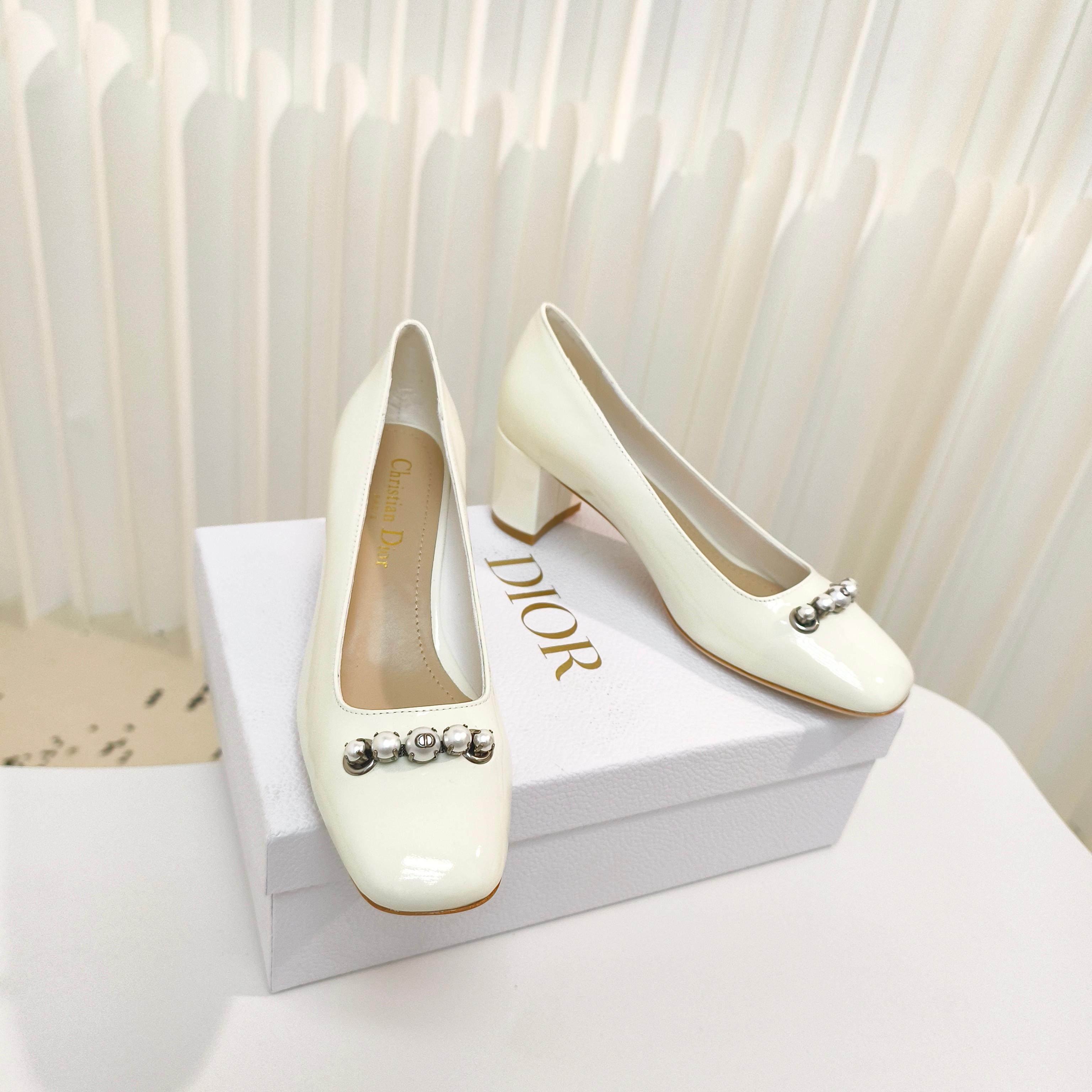 DIOR HIGH HEEL 55 MM 25S IN WHITE LAMBSKIN PEARL DETAILING