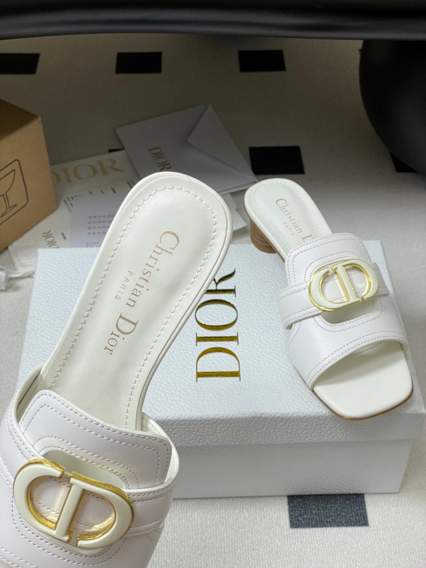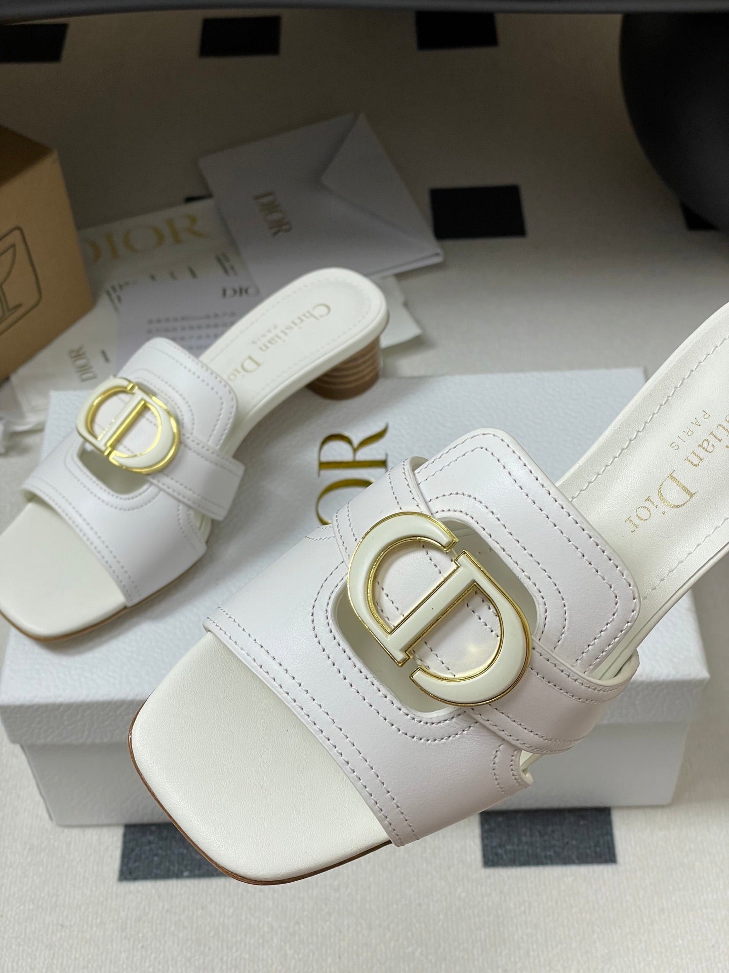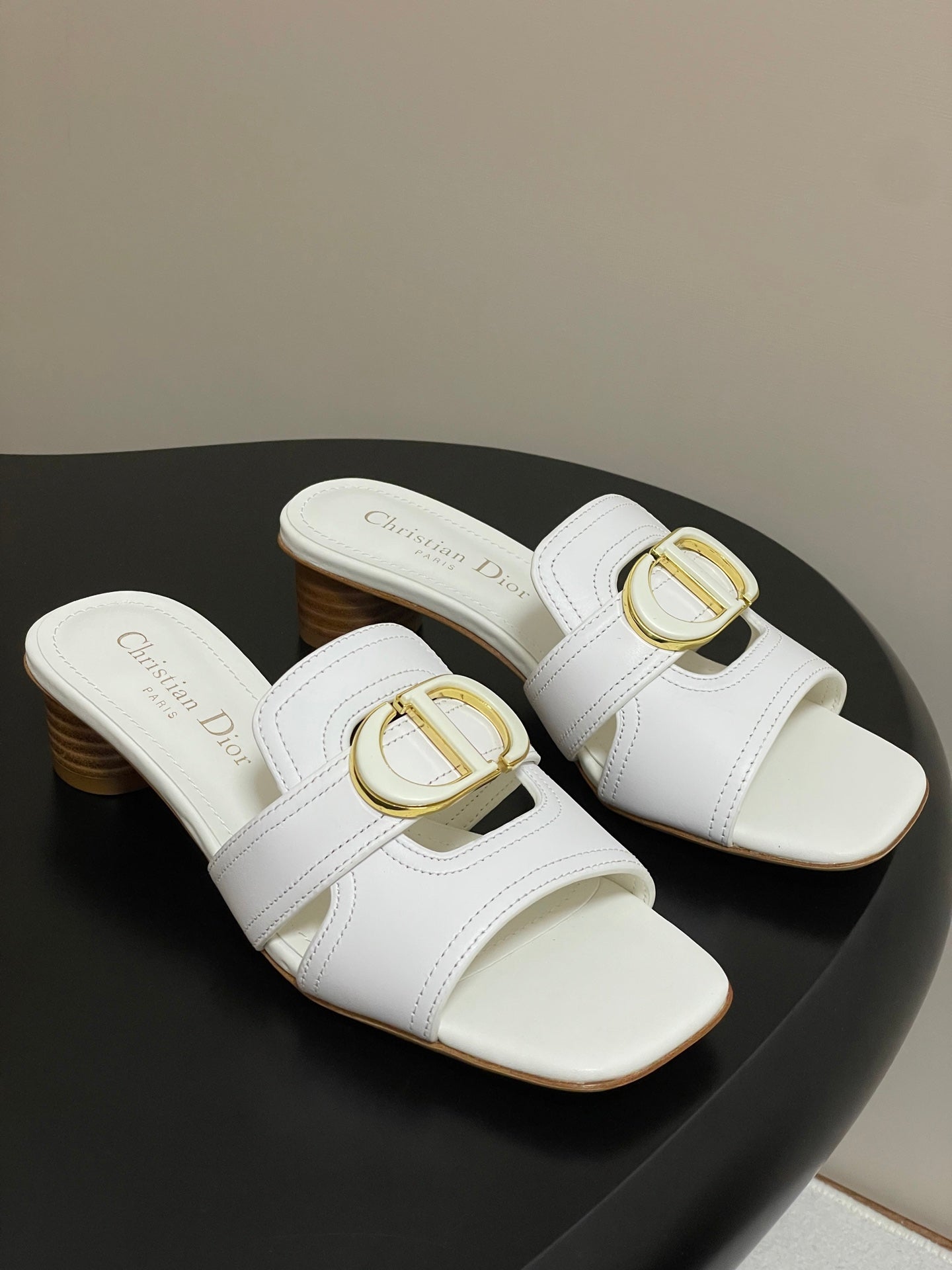 DIOR HIGH HEEL CLASSIC MONTAIGNE 40 MM 25S IN WHITE LAMBSKIN WITH CD LOGO