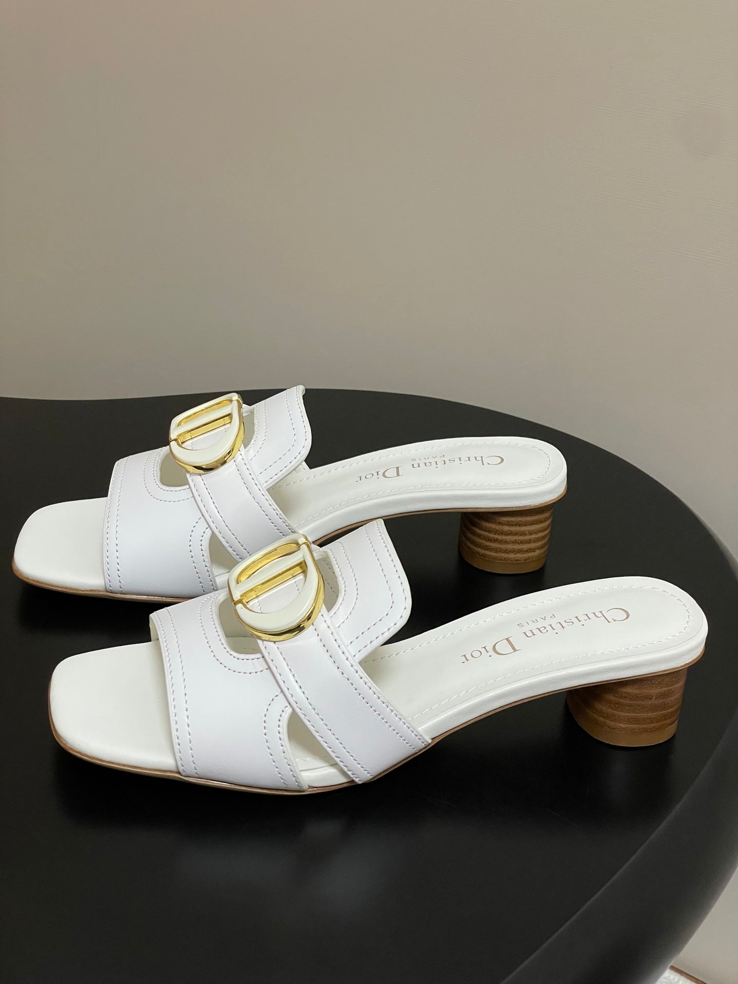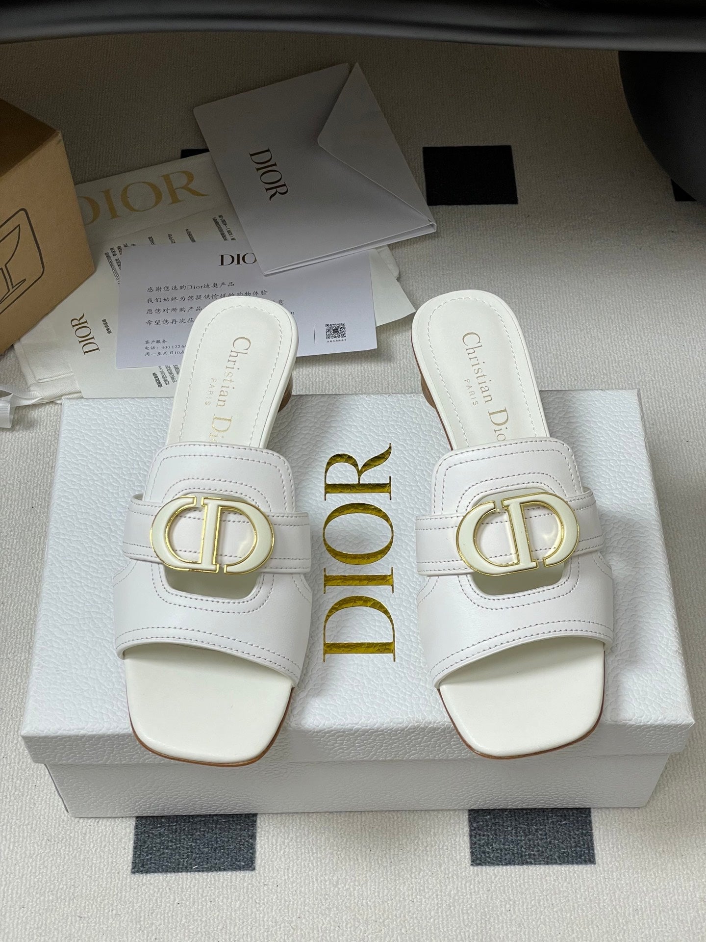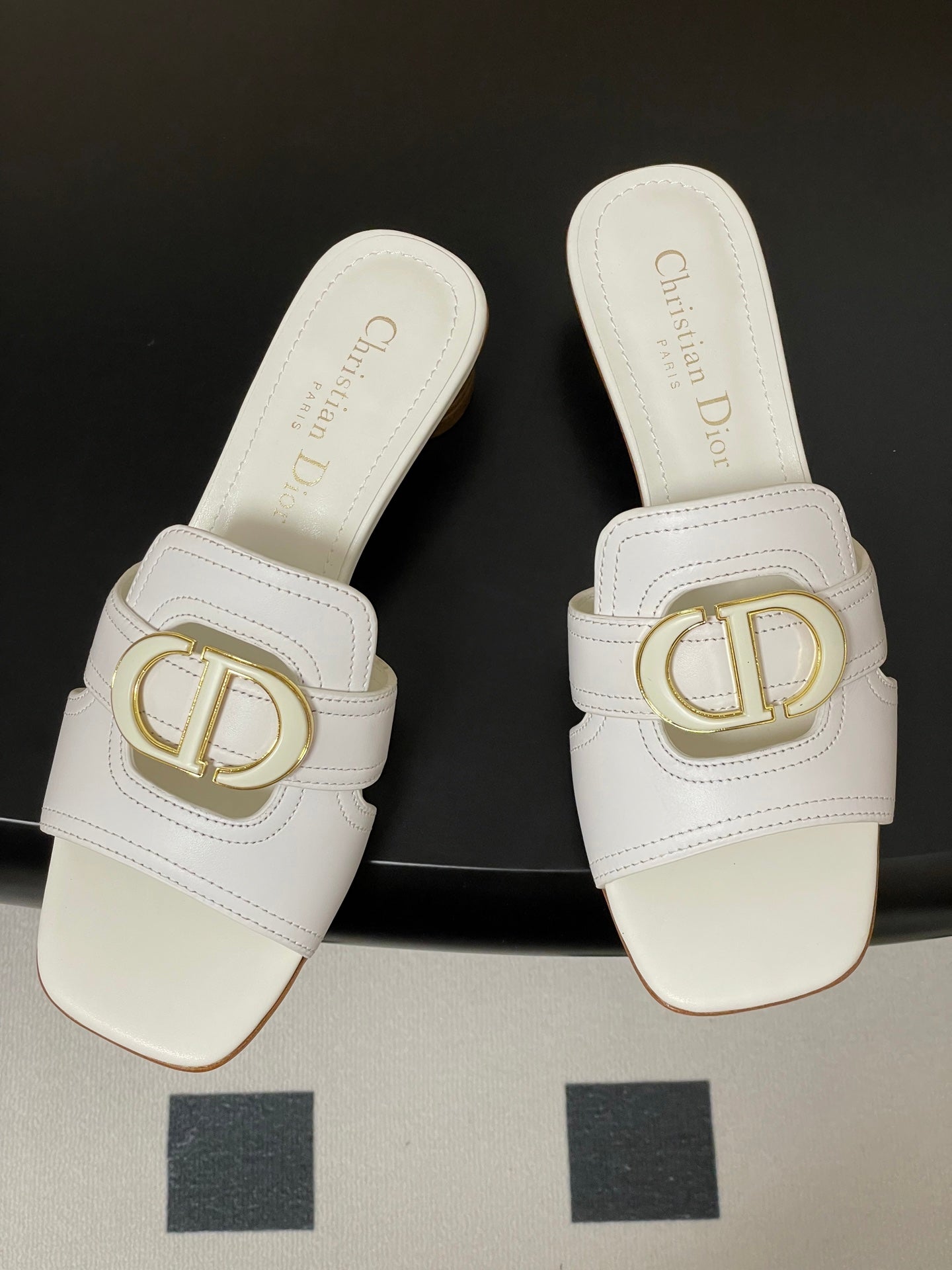 DIOR HIGH HEEL CLASSIC MONTAIGNE 40 MM 25S IN WHITE LAMBSKIN WITH CD LOGO