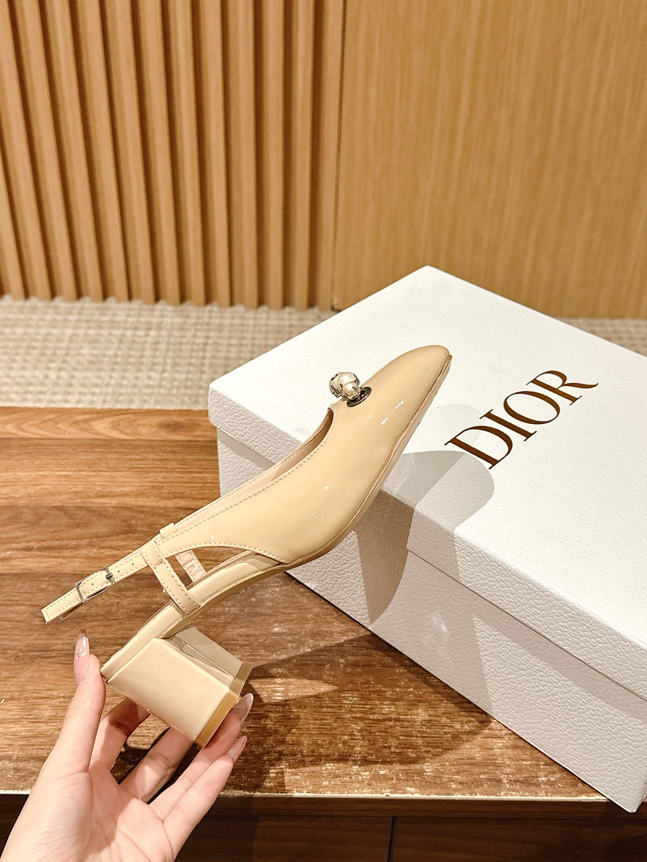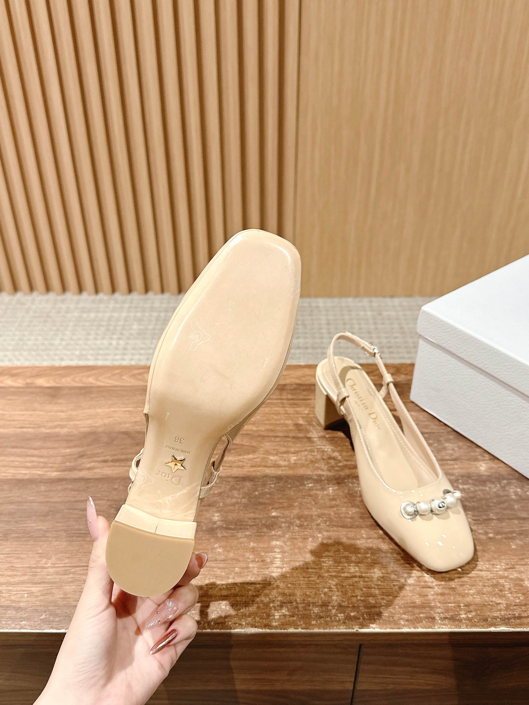 DIOR HIGH SLINGBACK 55 MM 25S IN BEIGE LAMBSKIN PEARL DETAILING