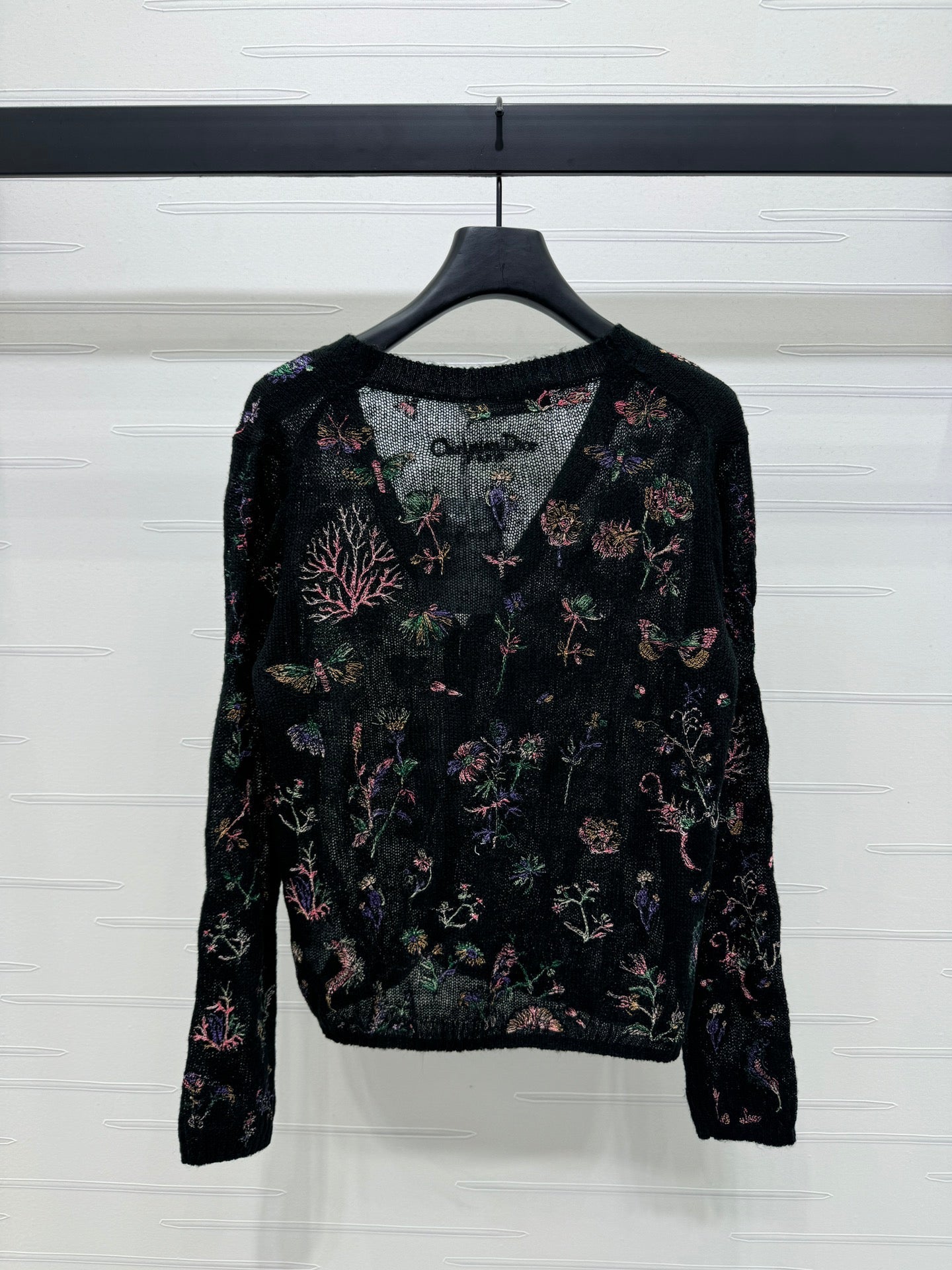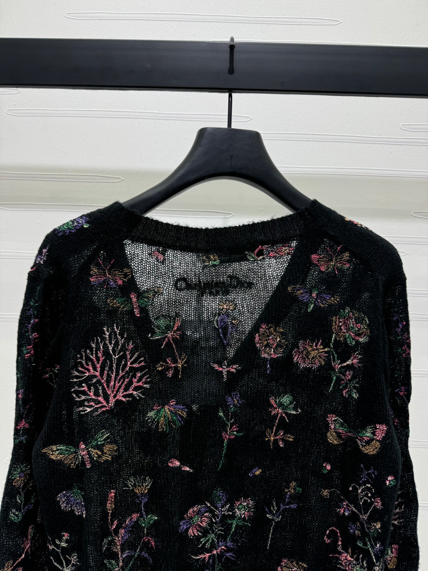 DIOR KNITTED V-NECK FLORAL EMBROIDERED CARDIGAN 276698