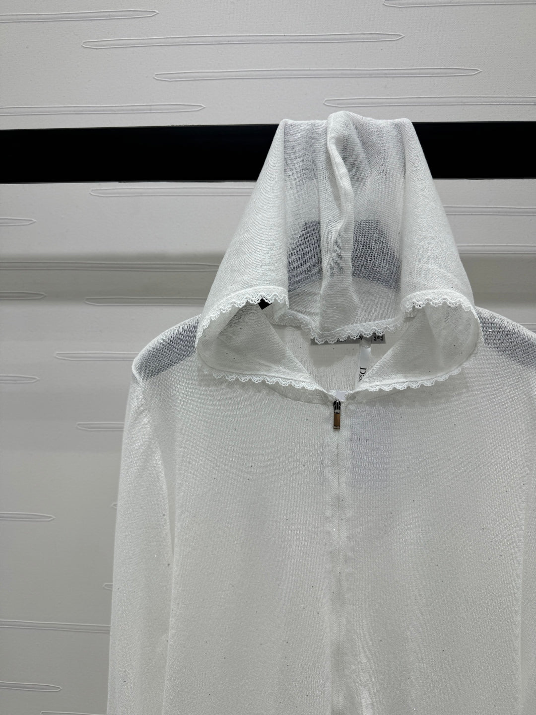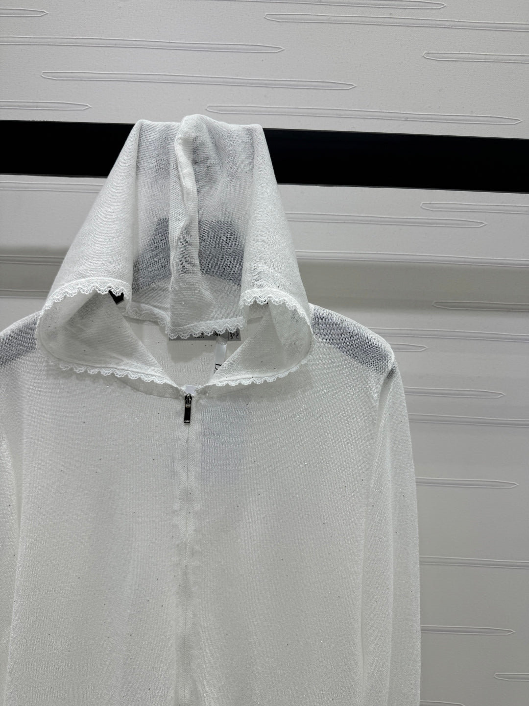 DIOR LACE-KNIT LONG-SLEEVE HOODIE WHITE 274970
