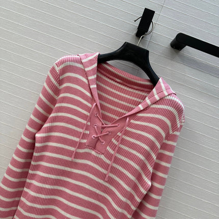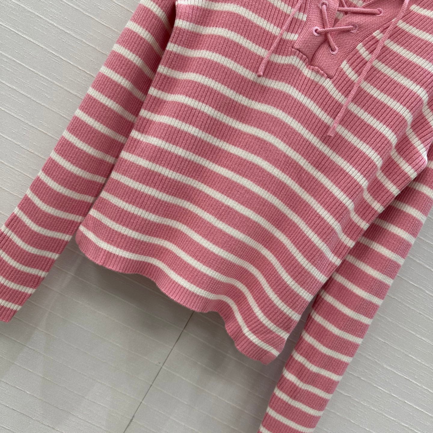 DIOR PINK STRIPED LONG-SLEEVE KNIT SWEATER
