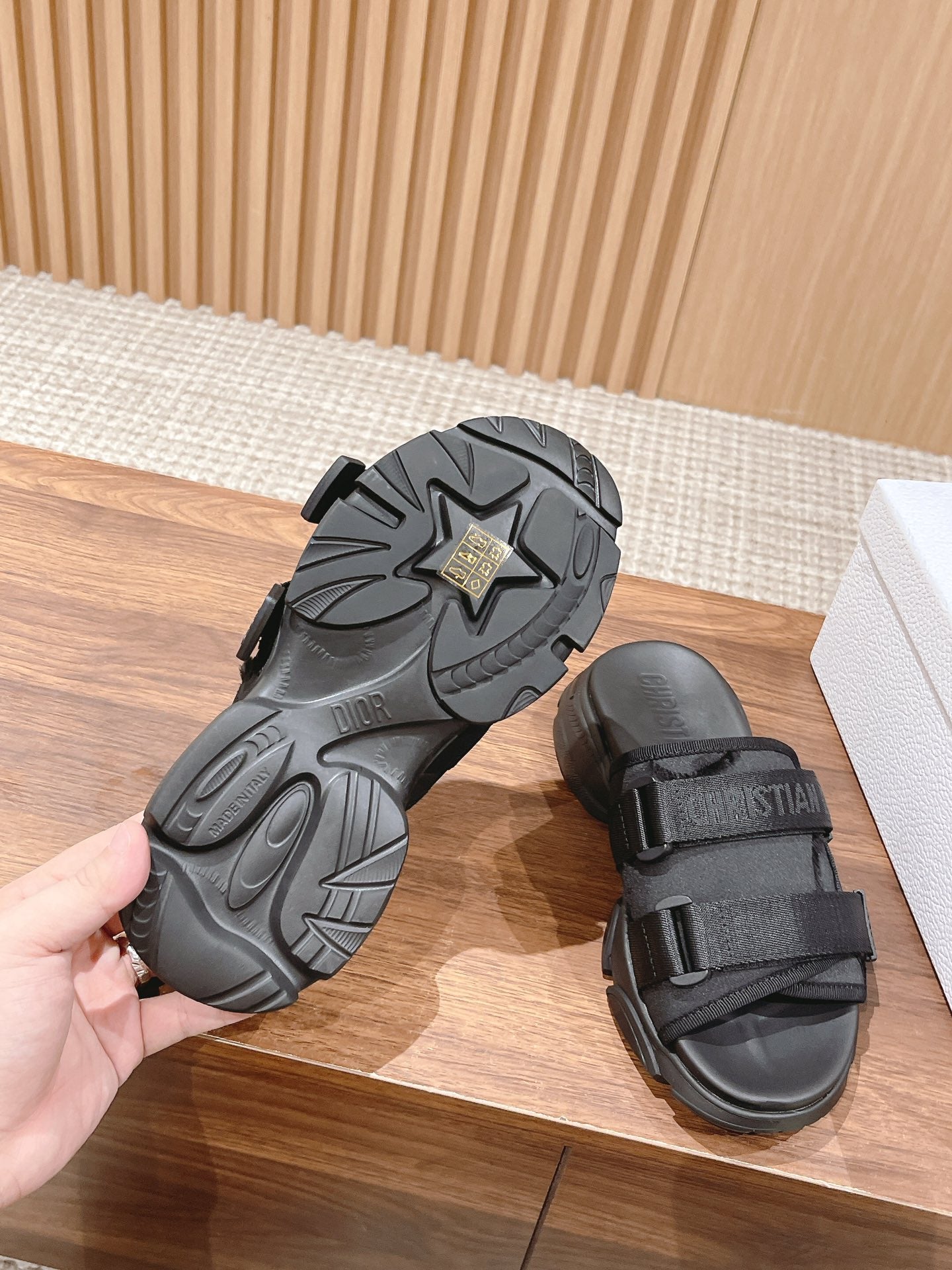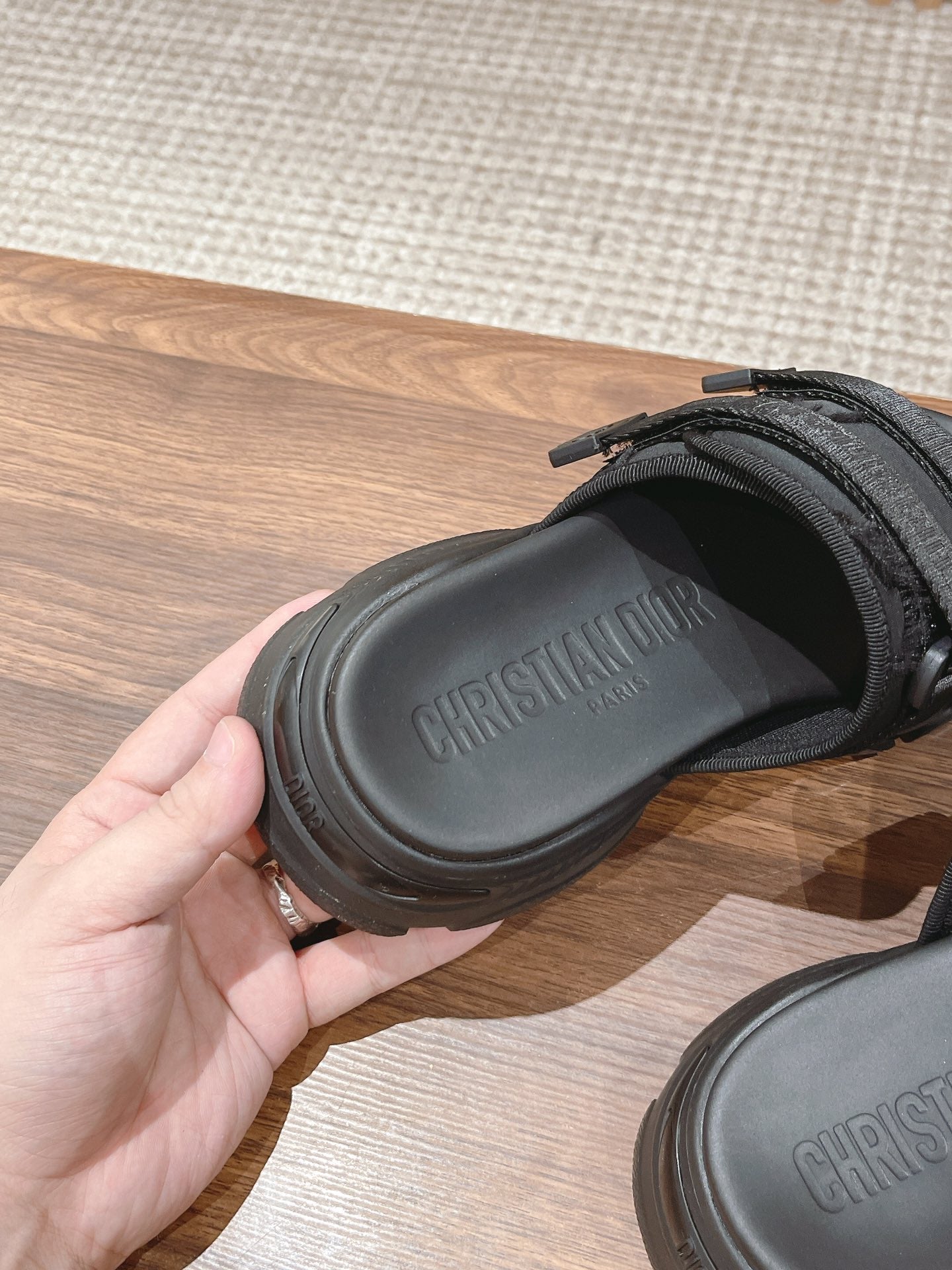 DIOR PLATFORM SLIDES 25S 30 MM IN BLACK FABRIC AND CALFSKIN