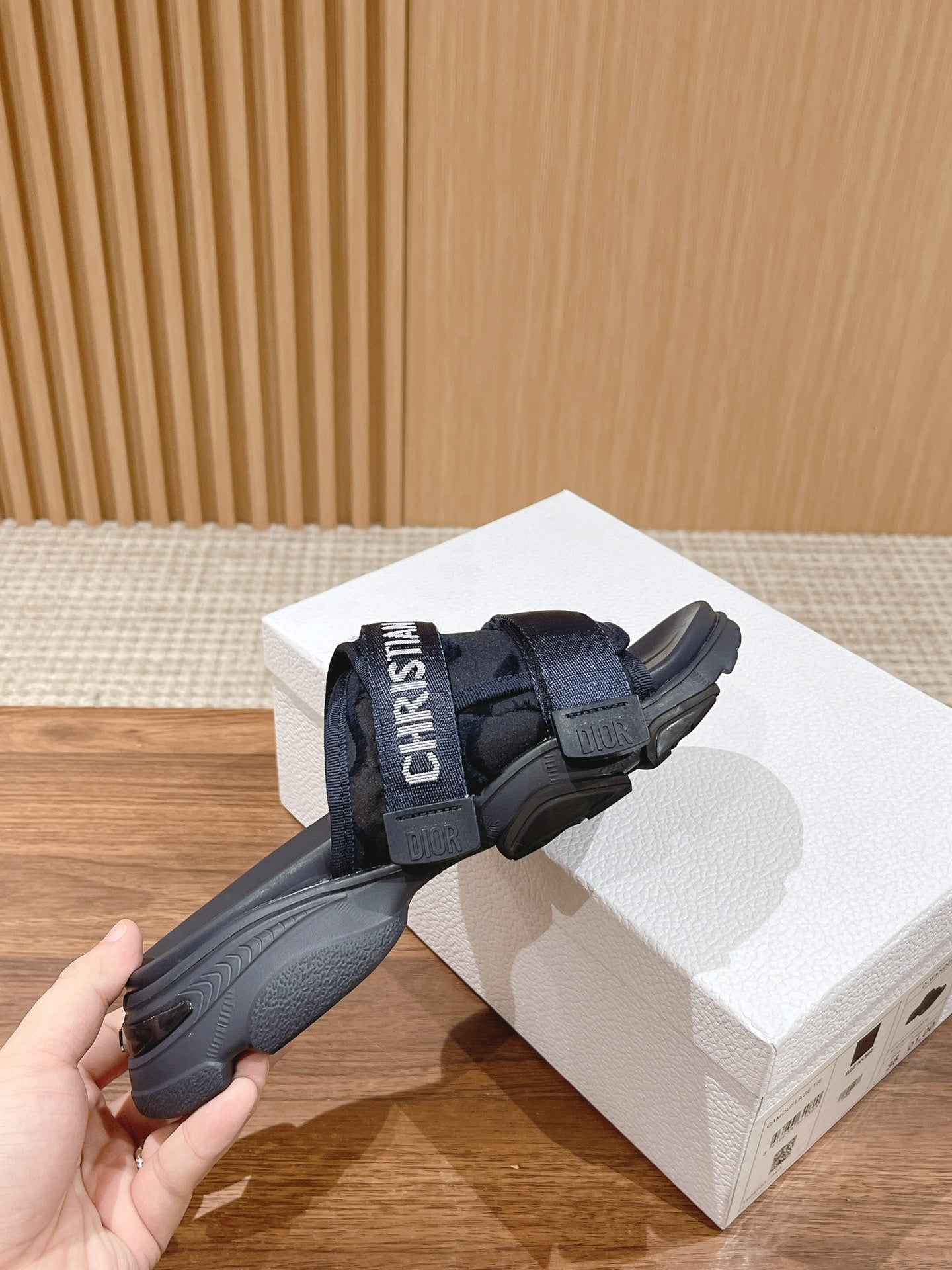 DIOR PLATFORM SLIDES 25S 30 MM IN MIDNIGHT BLUE FABRIC AND CALFSKIN