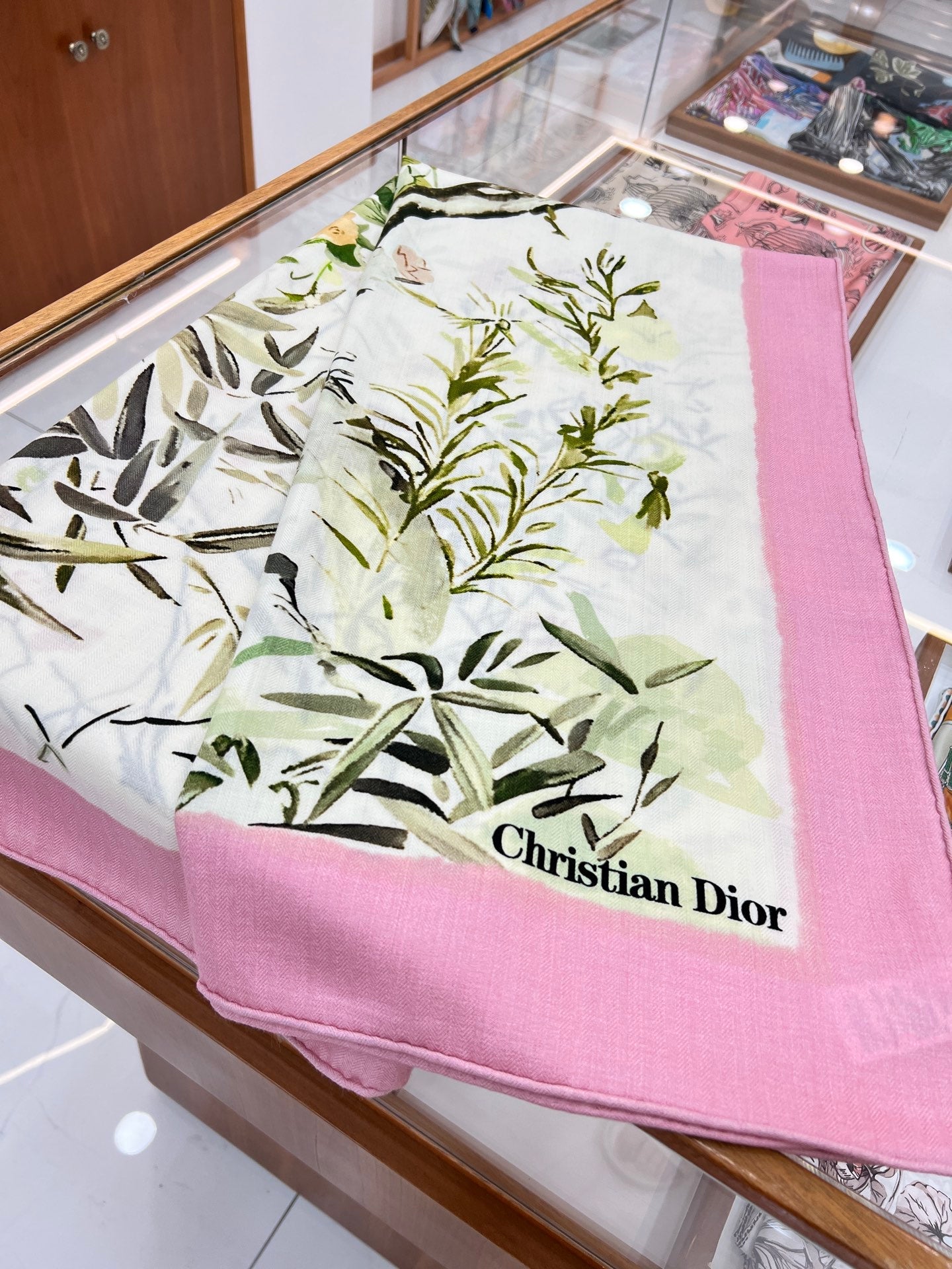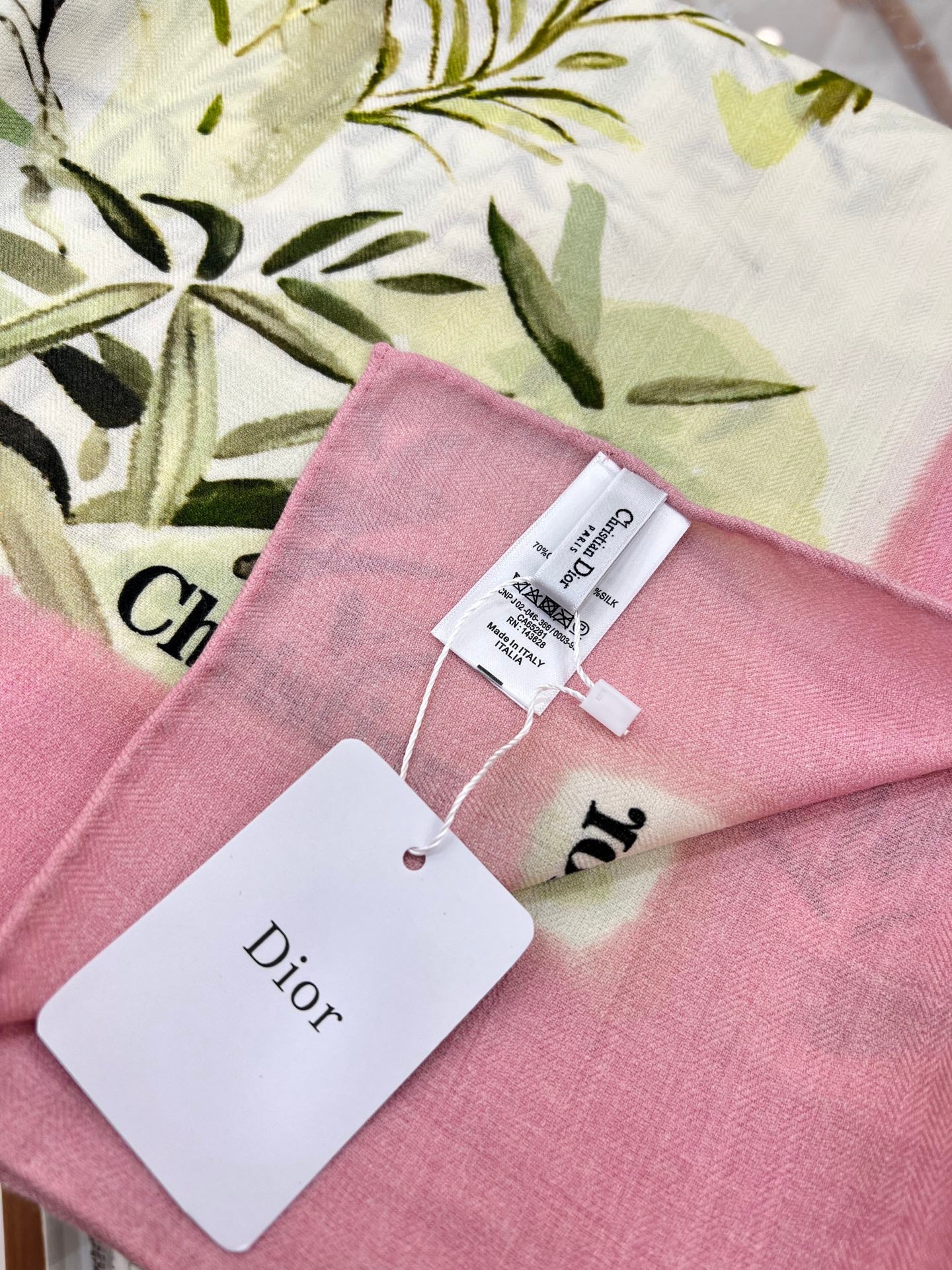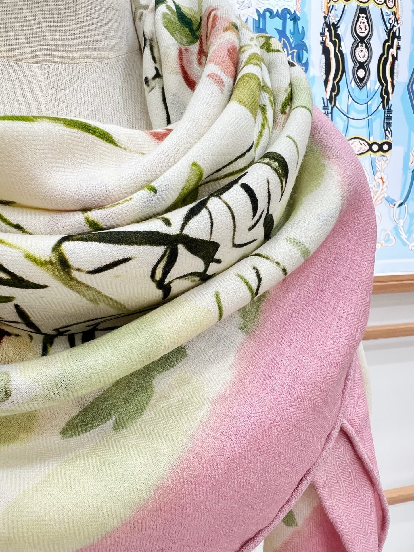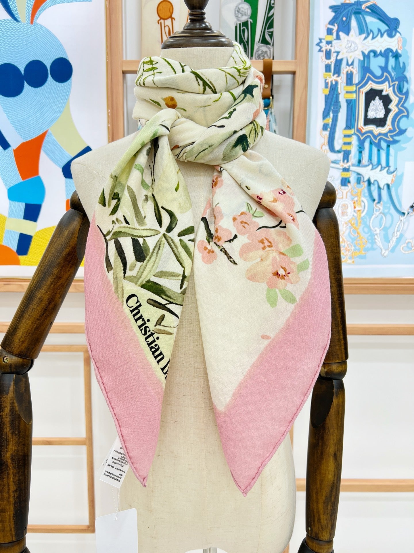 DIOR REVERSIBLE SCARF 140 CM IN CREAM WHITE MIX PINK WOOL-SILK FABRIC 735875