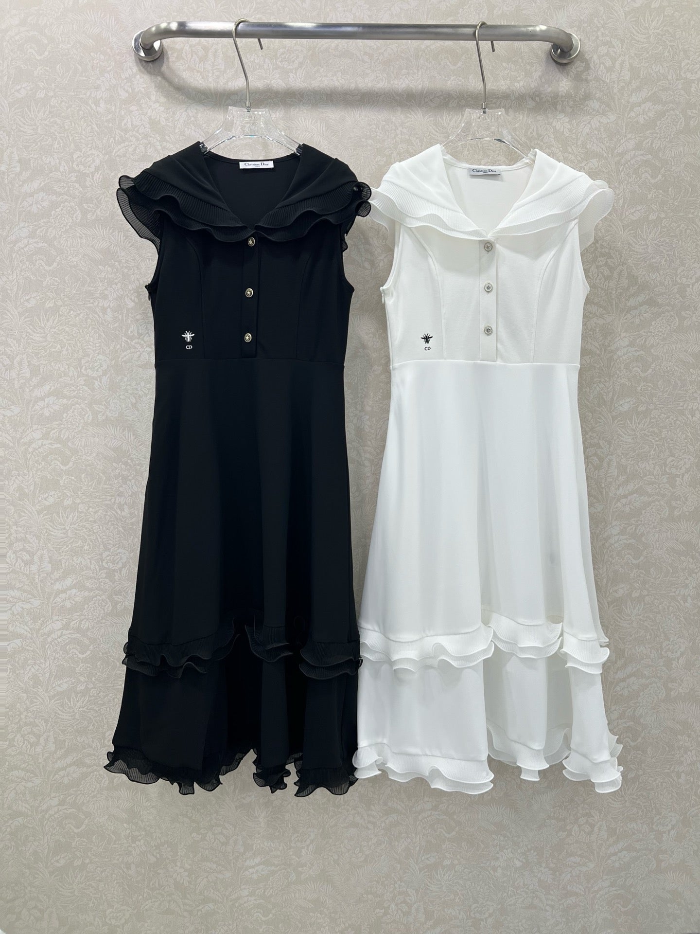 DIOR SLEEVELESS DRESS WITH RUFFLED SHOULDERS AND HEM 269143