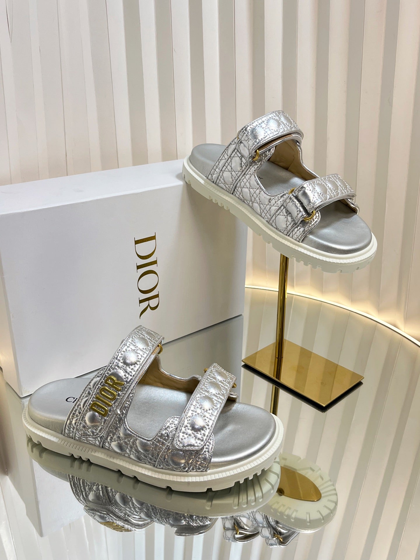 DIORACT SLIDES 25MM IN SILVER PATENT CALFSKIN