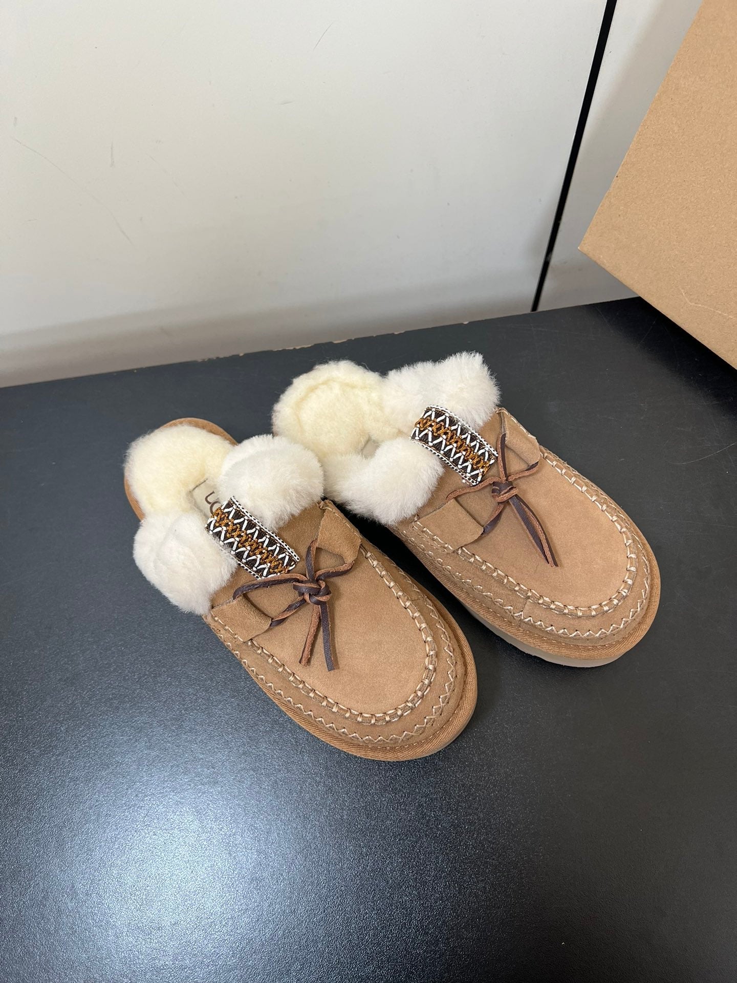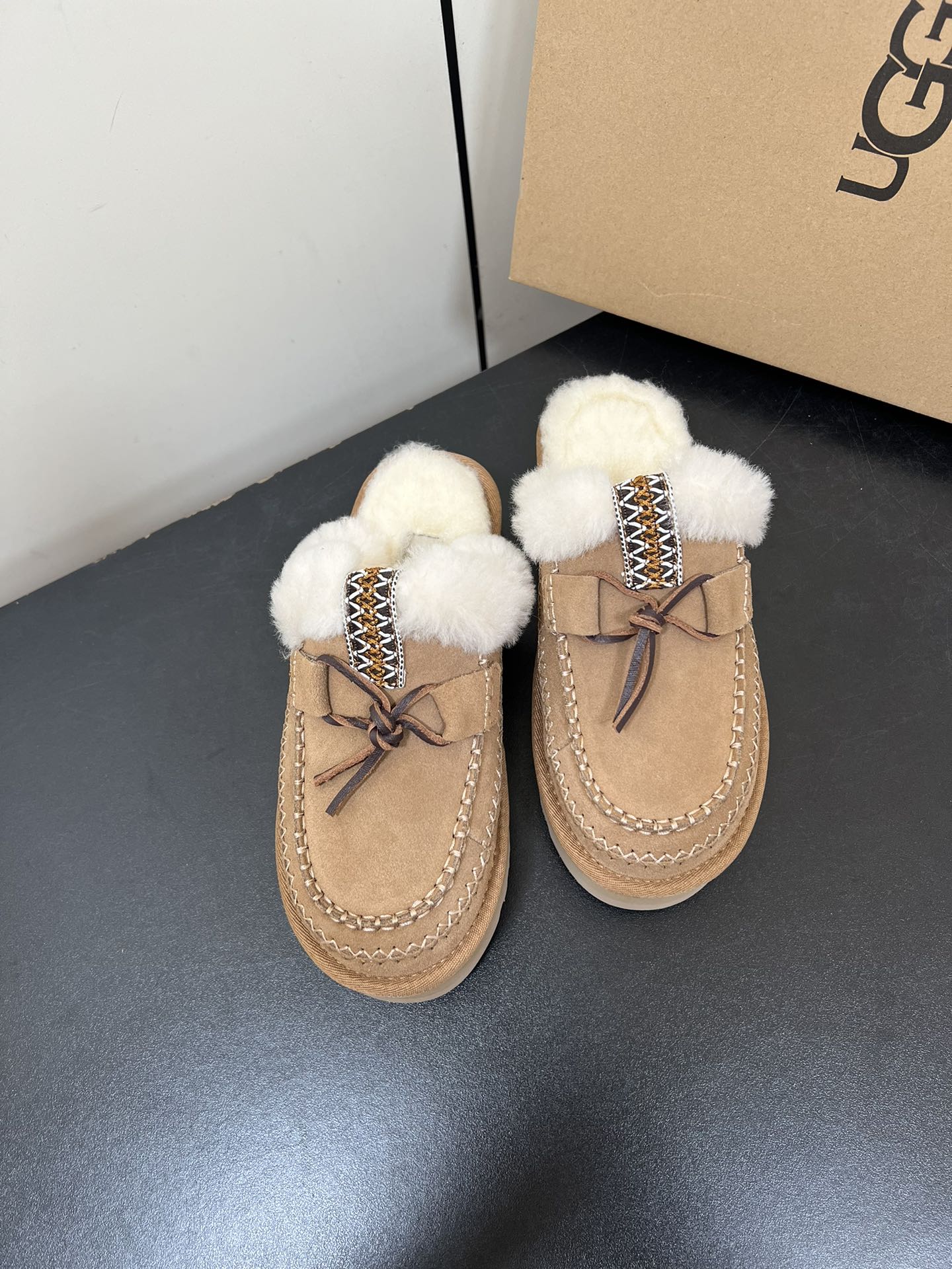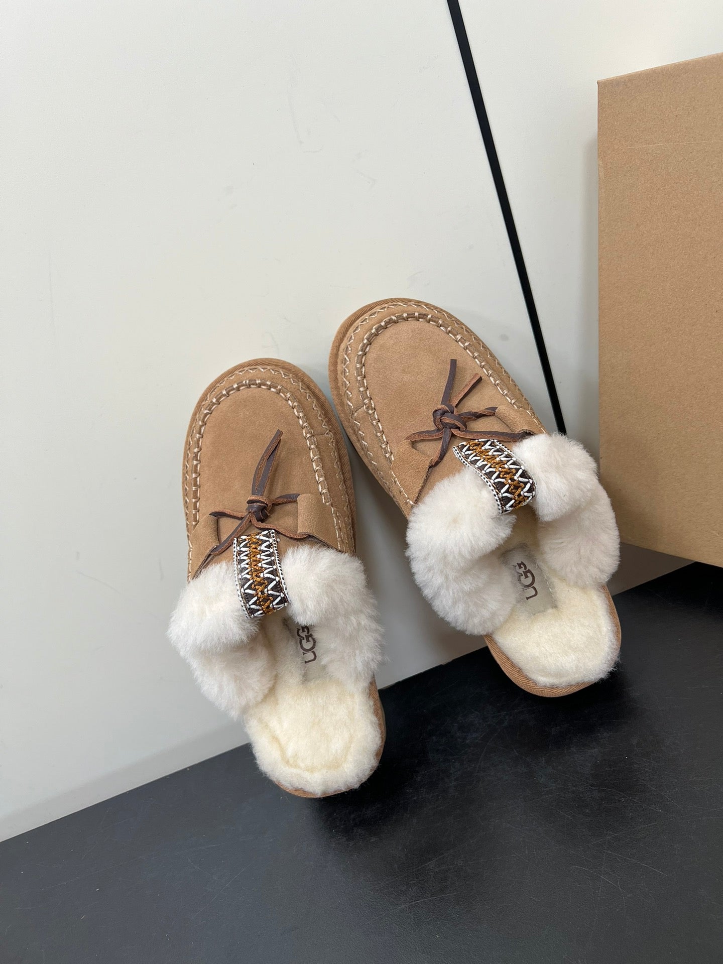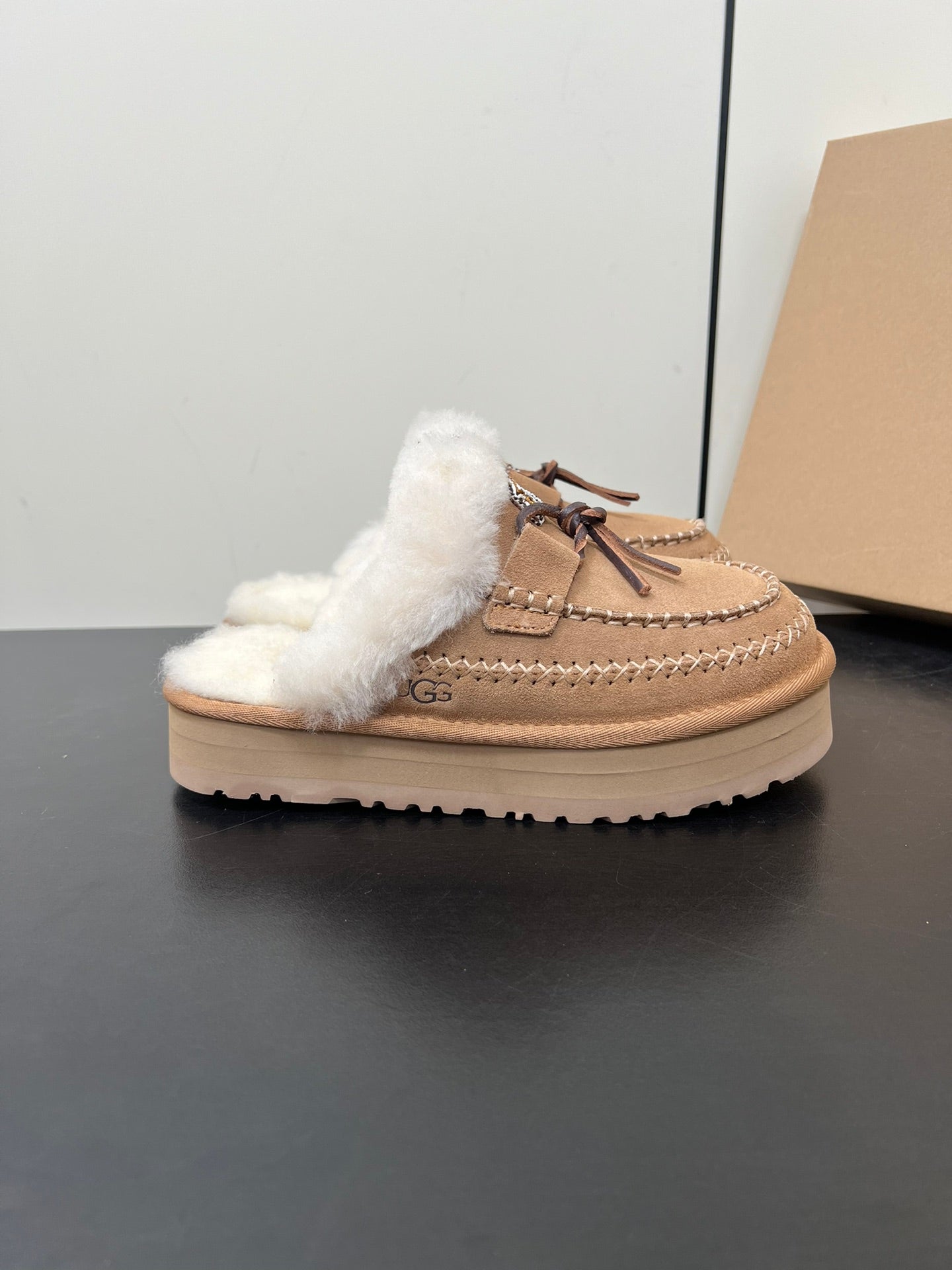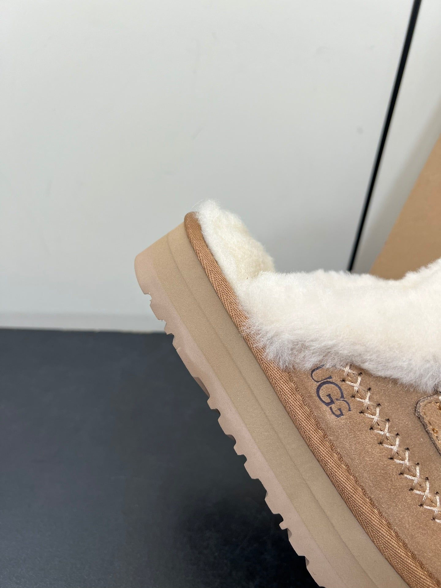 DISQUETTE ALPINE IN PEANUT BROWN SUEDE AND WHITE FLEECE