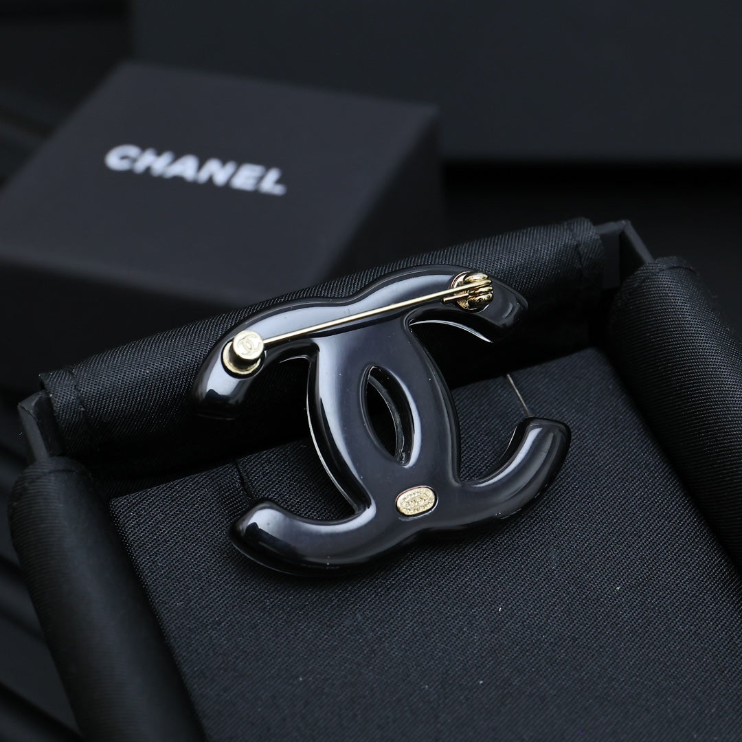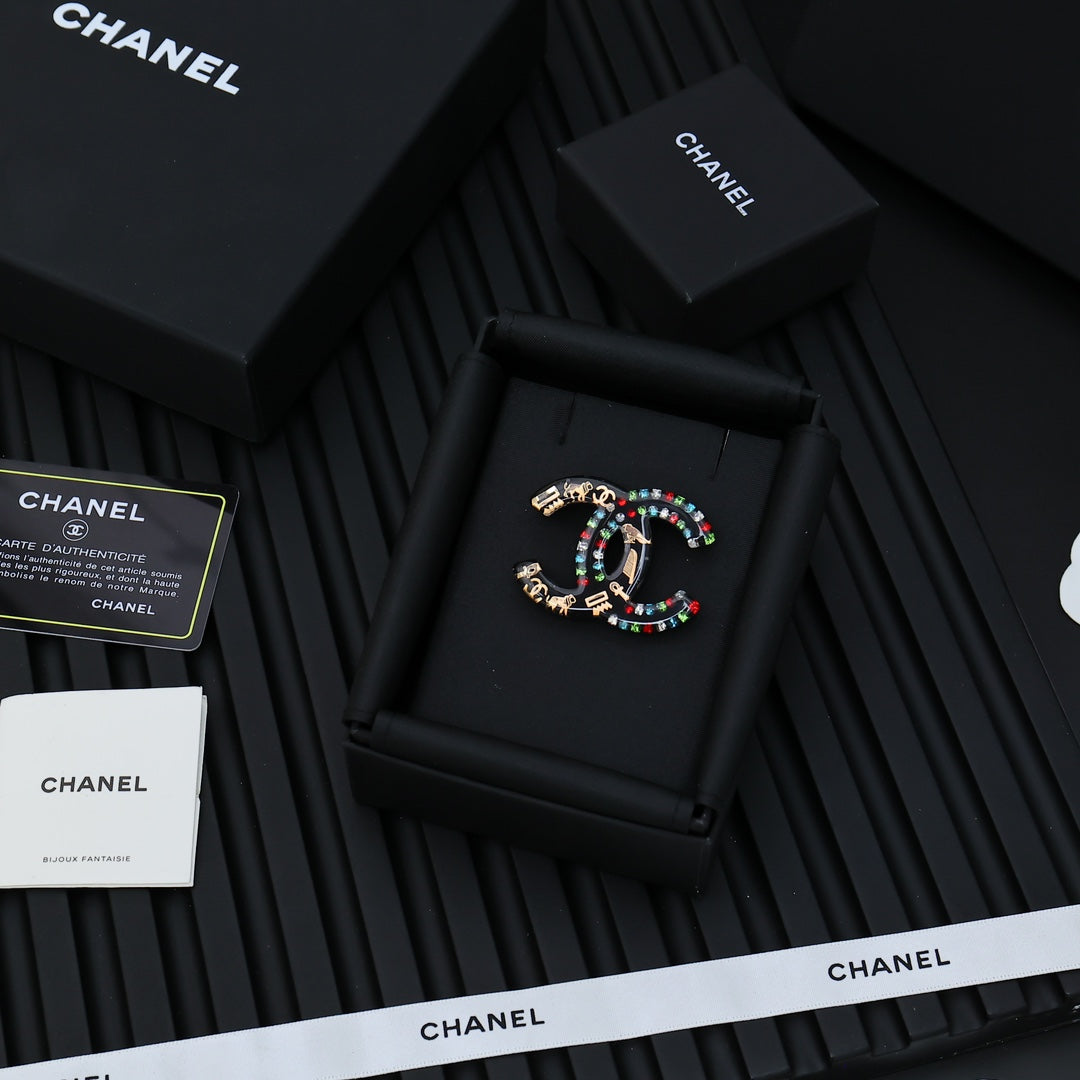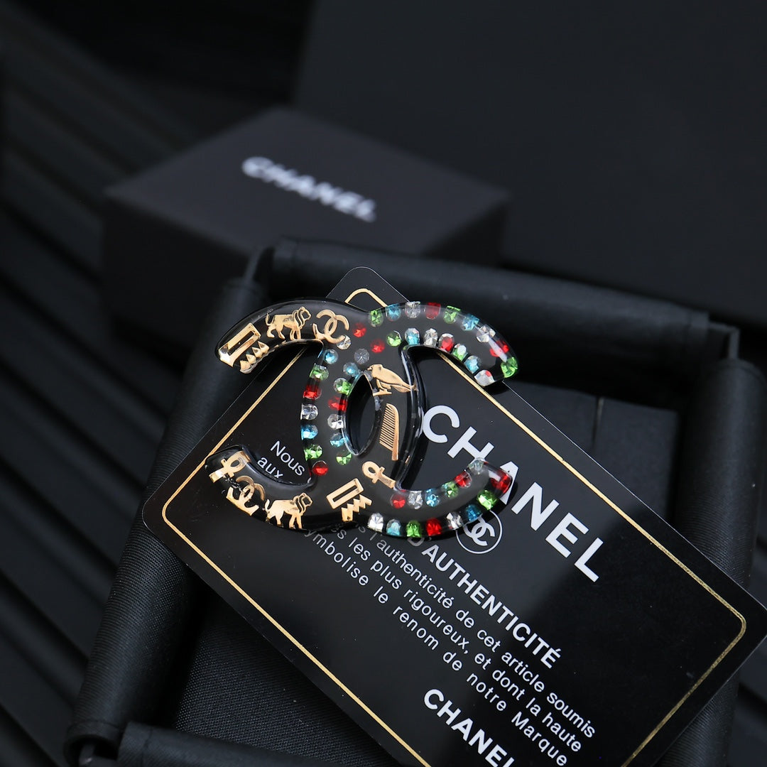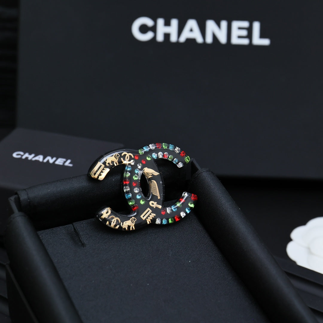 DOUBLE C BROOCH IN HAND-PAINTED ACRYLIC RESIN WITH COLORFUL STONE DESIGN