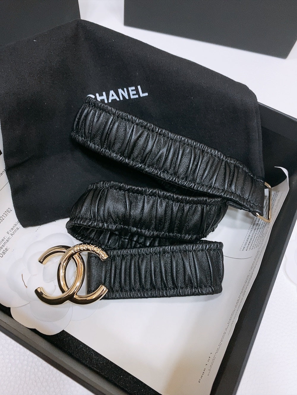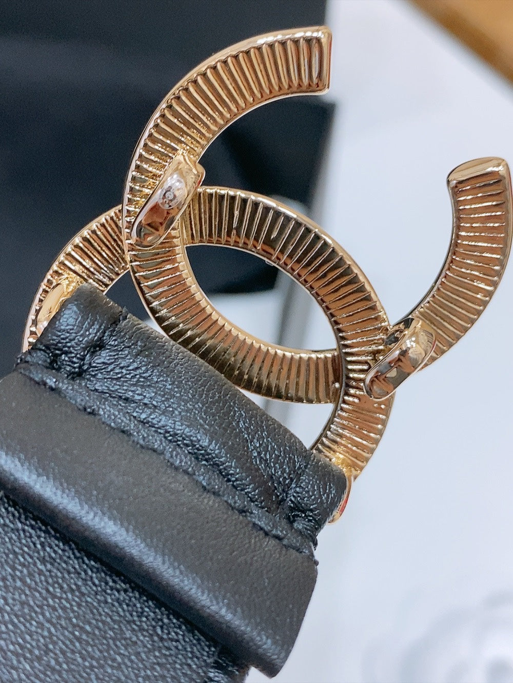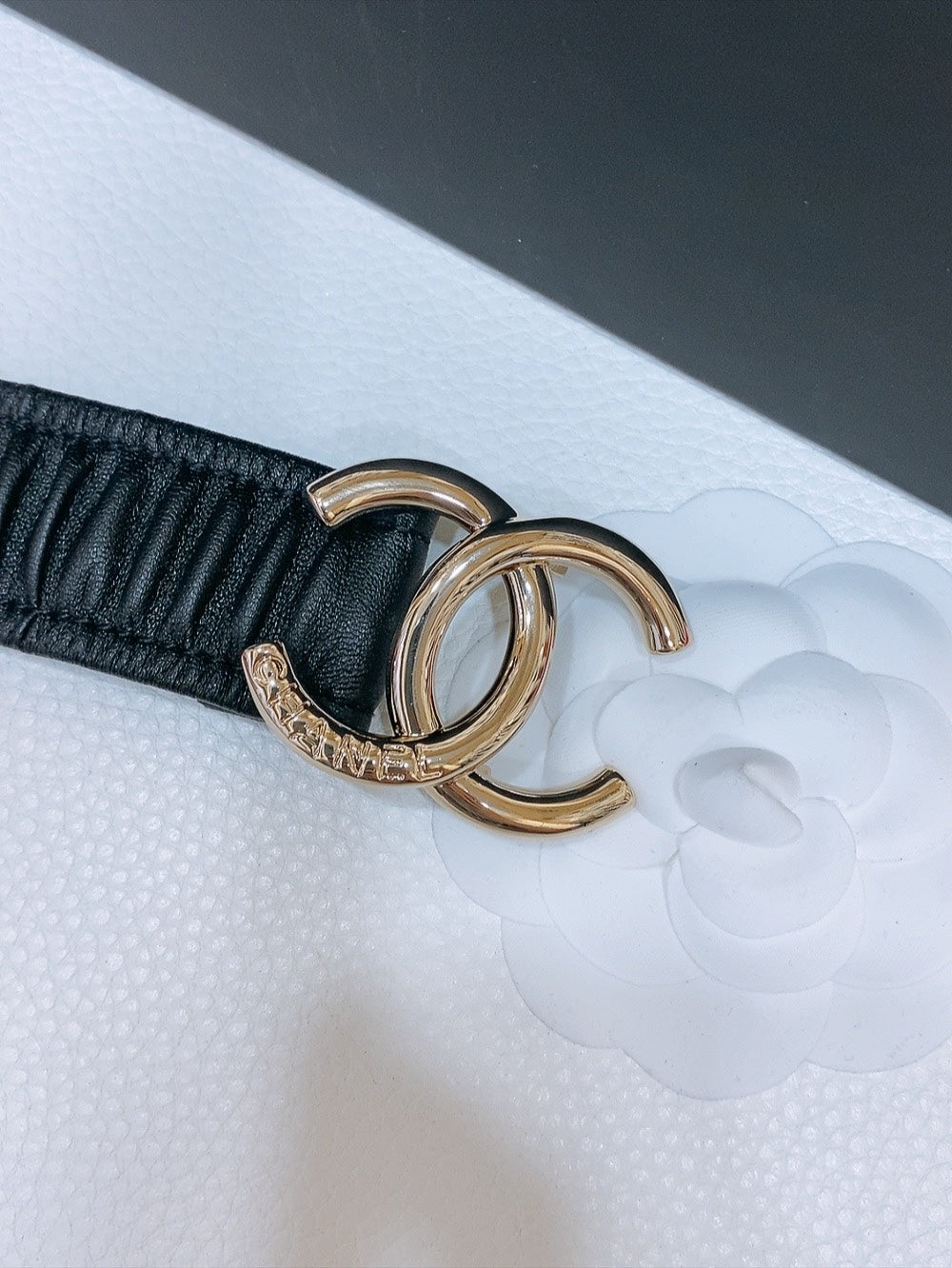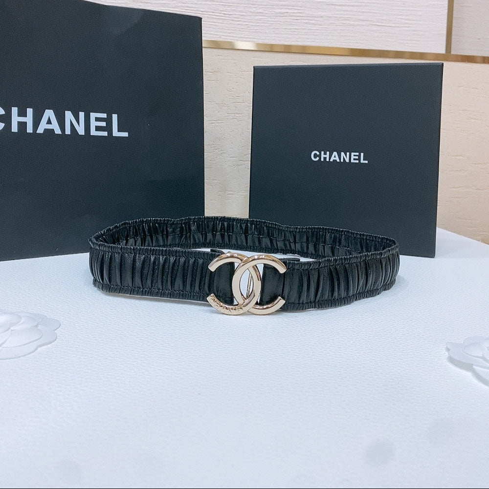 DOUBLE C ELASTIC BELT 30MM IN BLACK CANVAS GOLD HARDWARE EMBOSSED LOGO