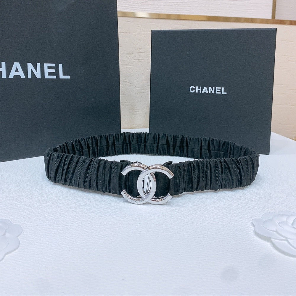 DOUBLE C ELASTIC BELT 30MM IN BLACK CANVAS SILVER HARDWARE