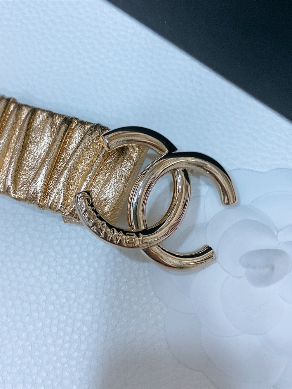 DOUBLE C ELASTIC BELT 30MM IN YELLOW PATENT CALFSKIN GOLD HARDWARE