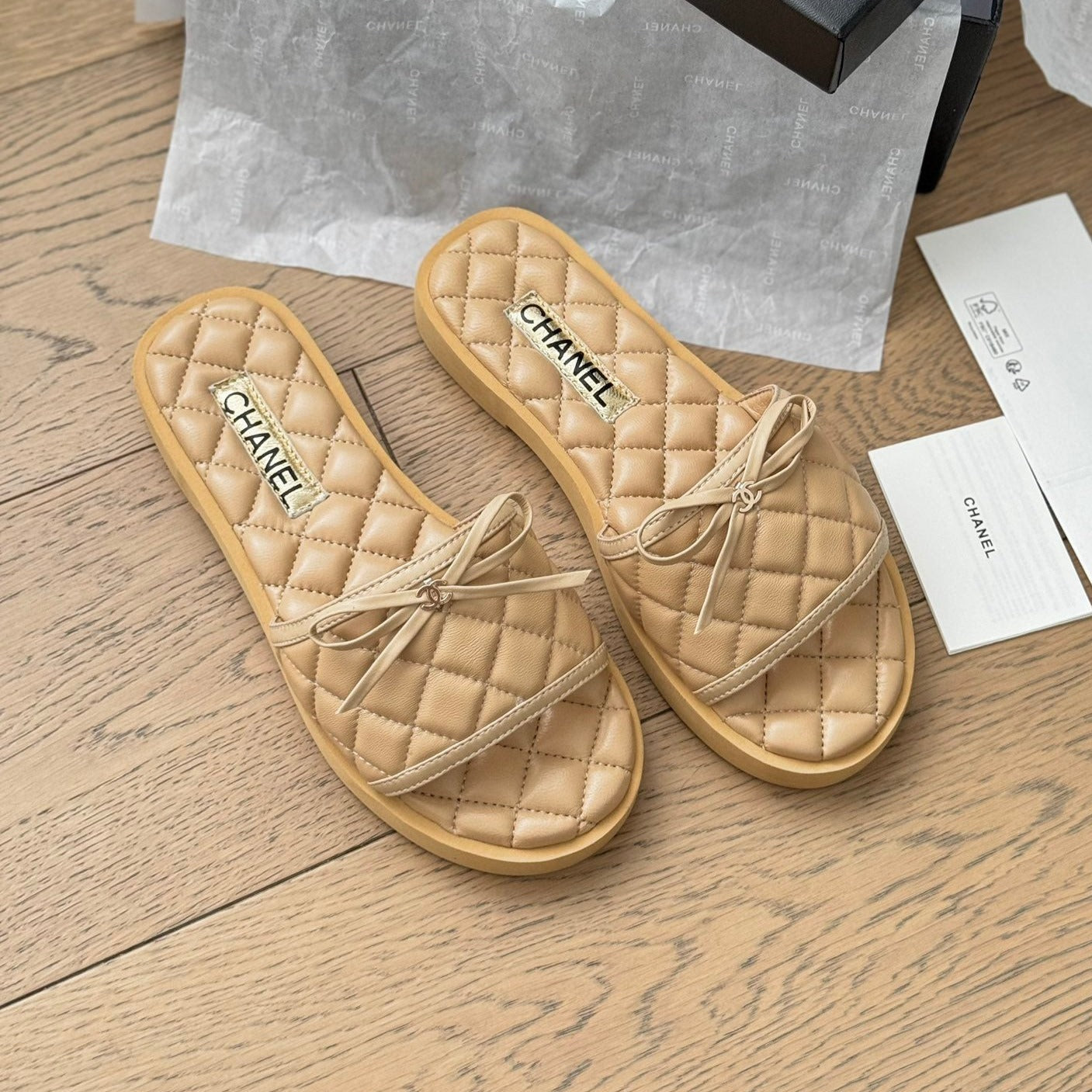 Double C New Butterfly Button Slippers Yellow Cream Lambskin