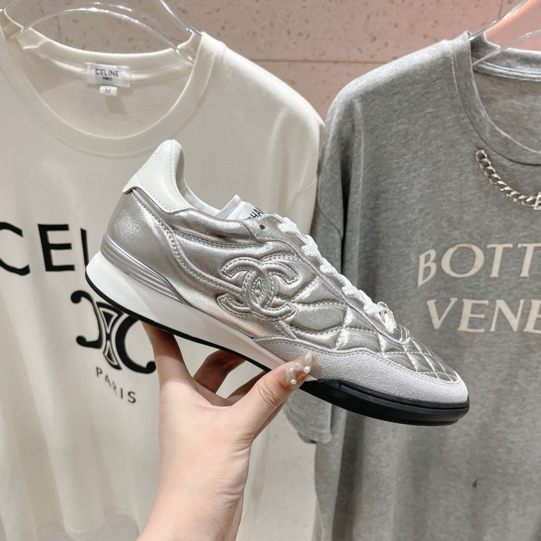 Double C New Quilted Panda Shoes Silver Sheepskin