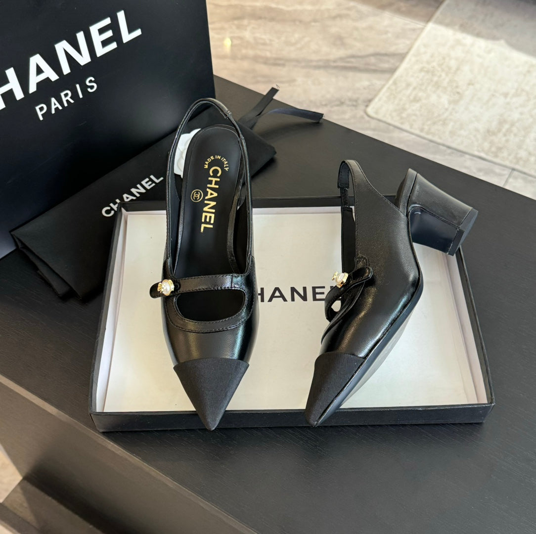 Double C WOMEN'S Slingback SPIRIT TOE Black Lambskin