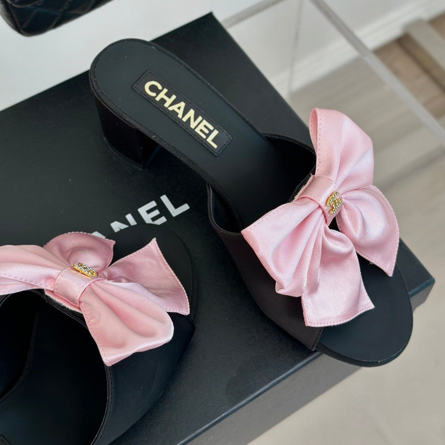 Double CC Big Bow High Heels Sheepskin Light Pink / Black