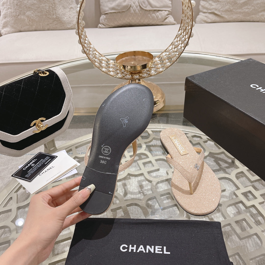Double CC Rhinestone Flip Flop Thongs Beige Cream Sheepskin