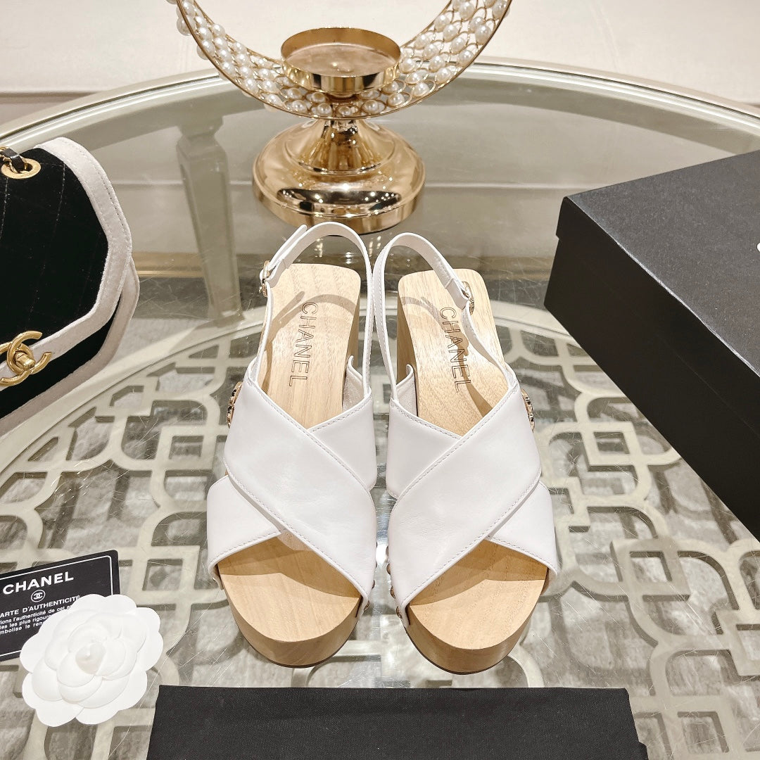 Double CC Wood Grain Platform Sandals White Sheepskin