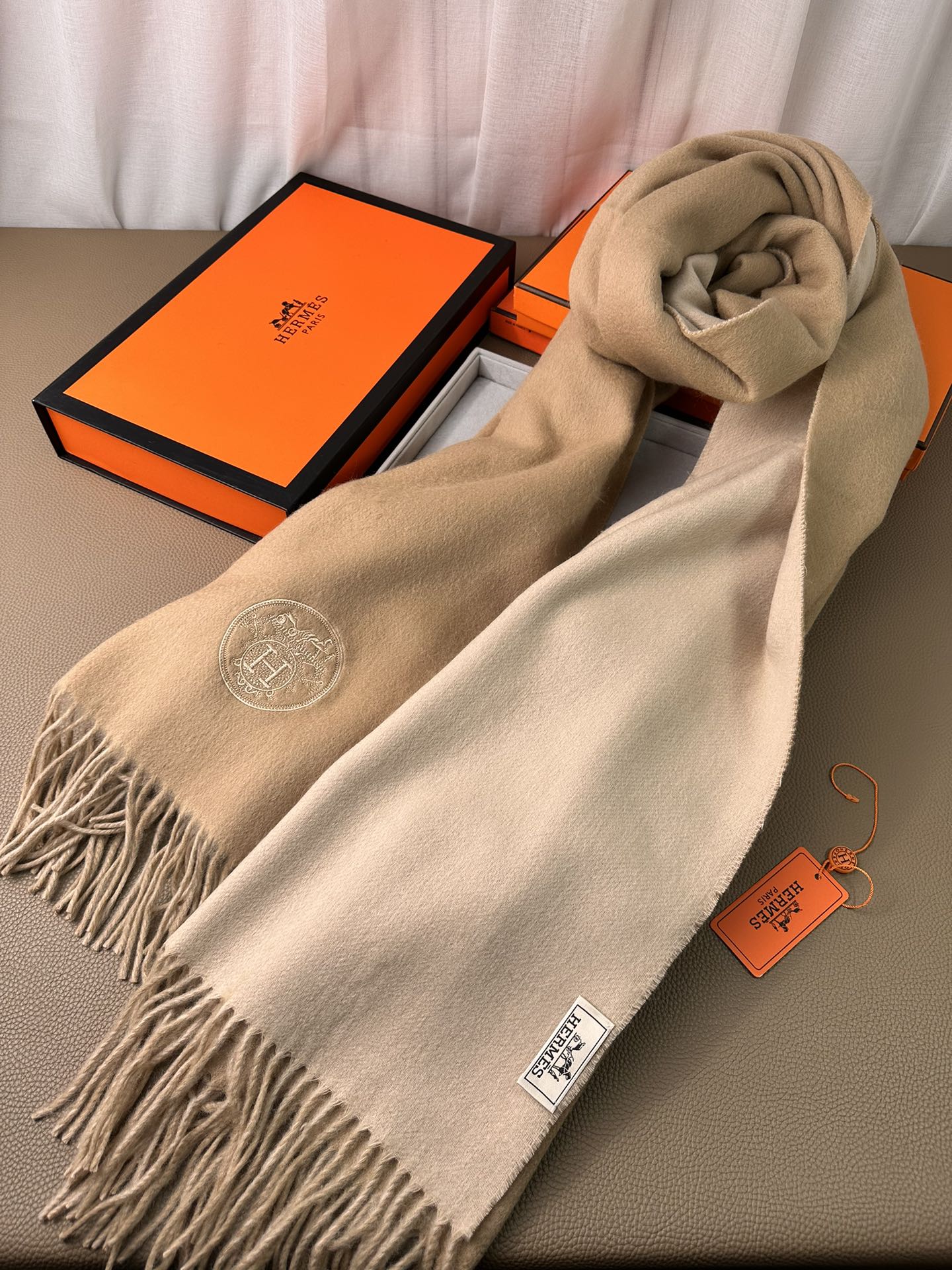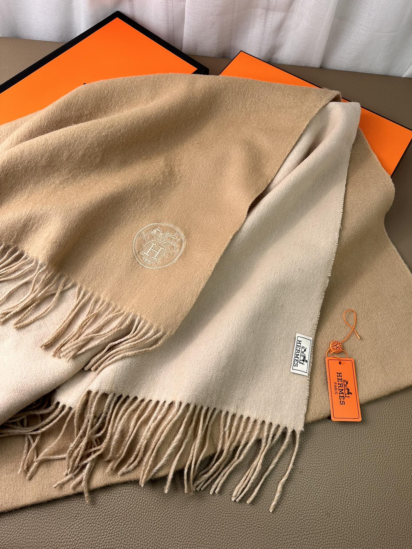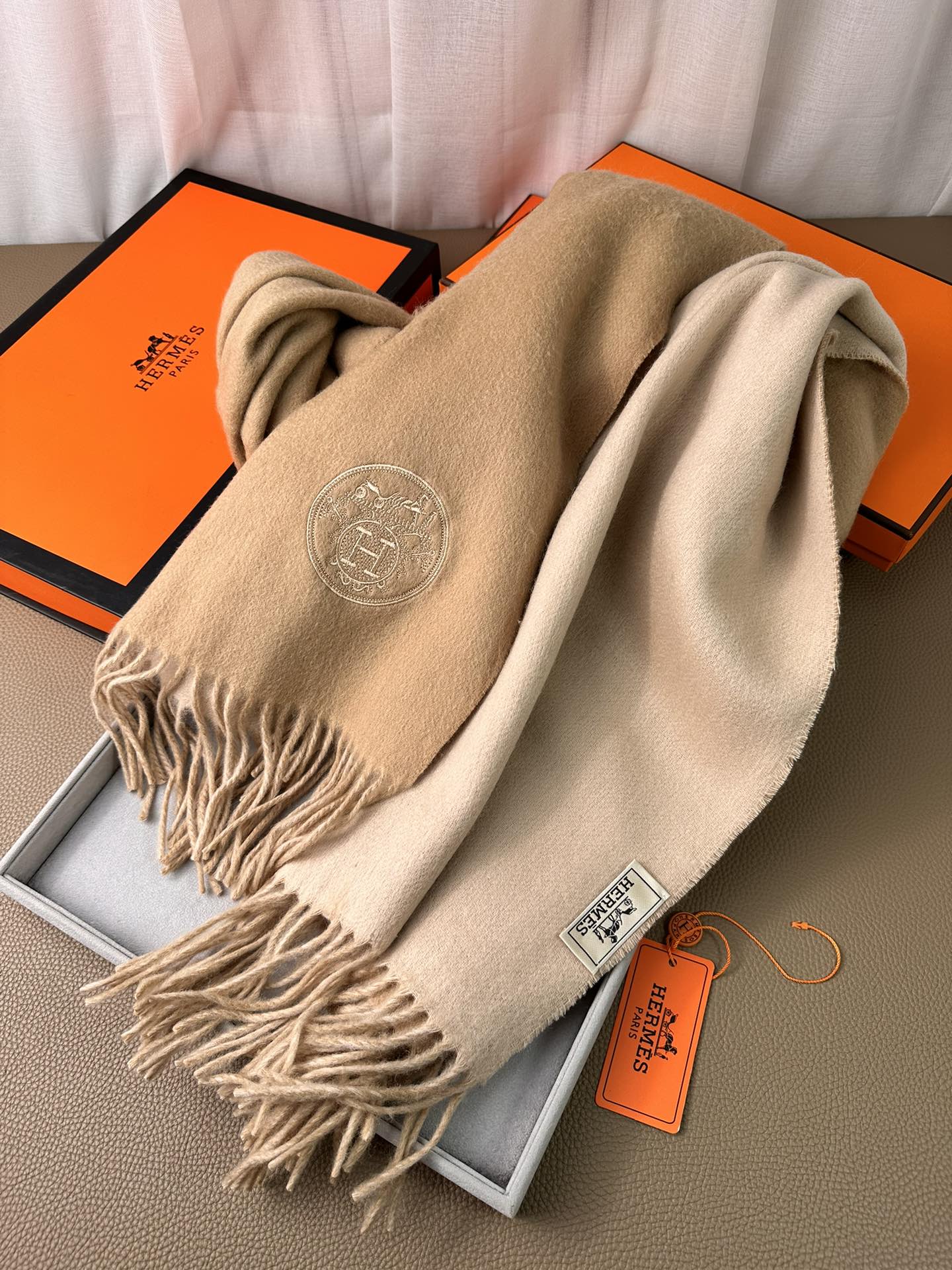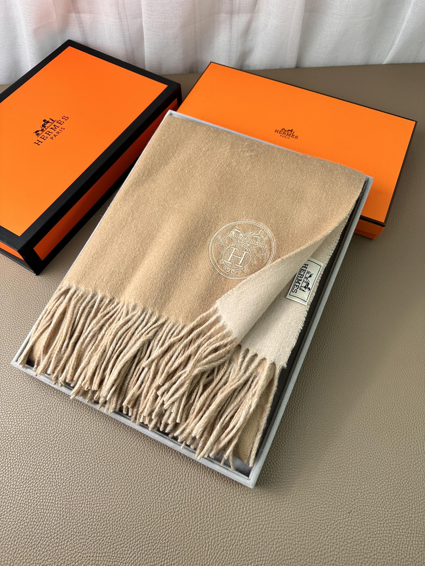 DOUBLE-FACE SCARF 200 CM IN CAMEL BROWN CASHMERE