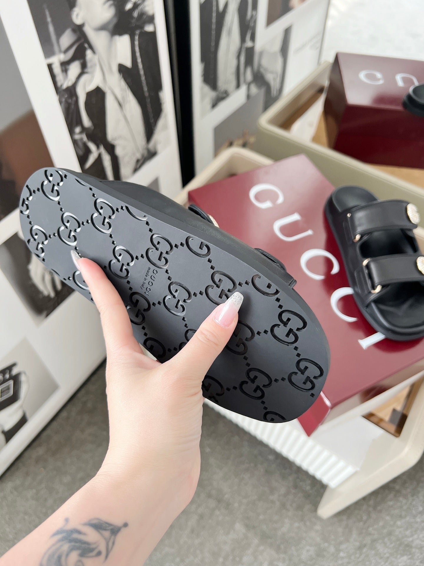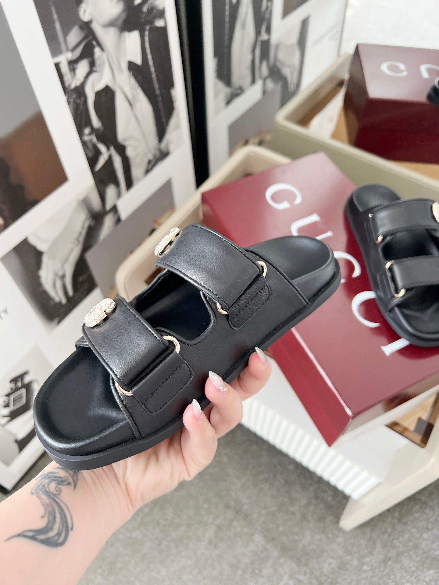 DOUBLE G CRYSTAL FLAT SANDALS IN BLACK SOFT LAMBSKIN