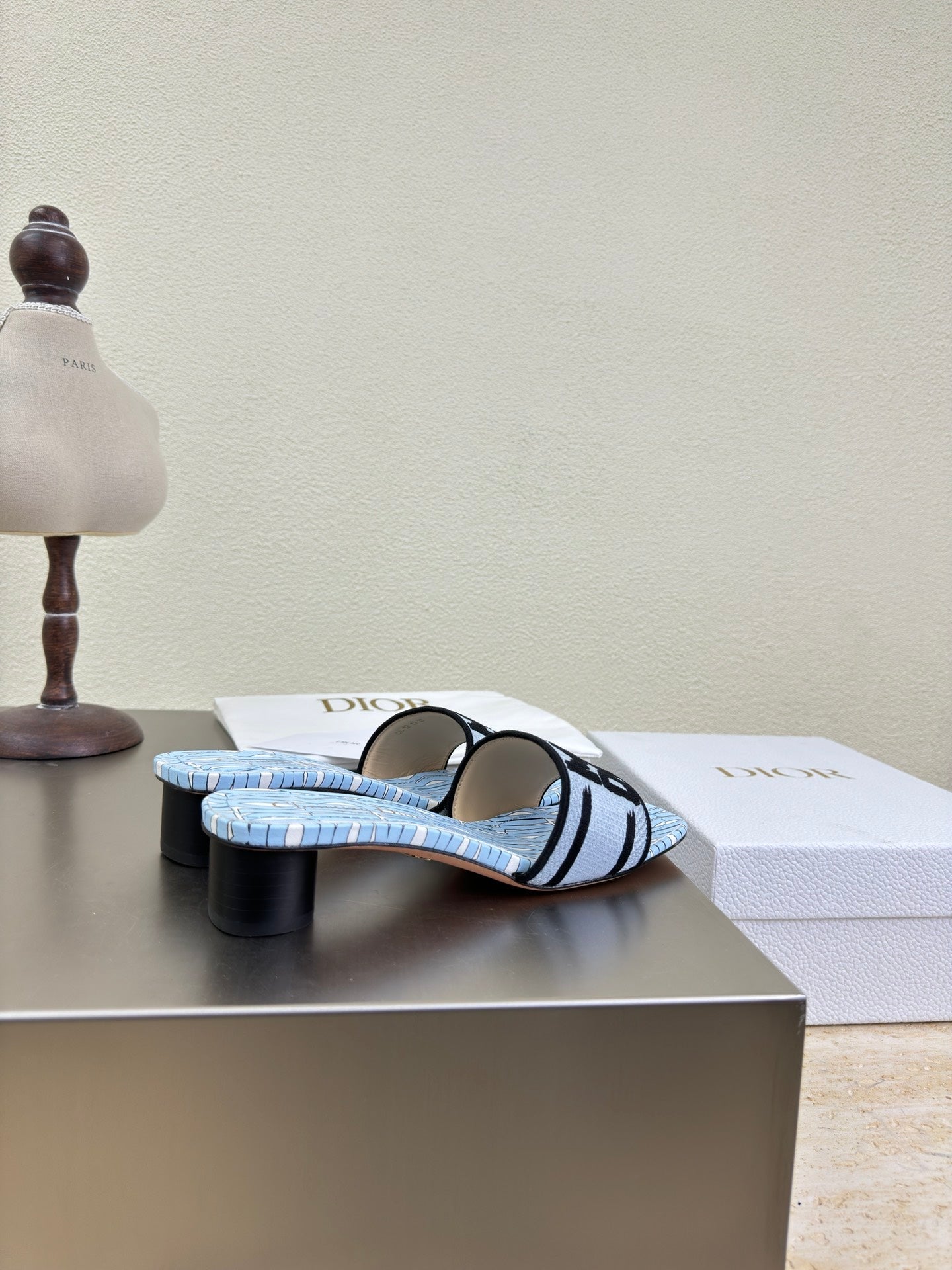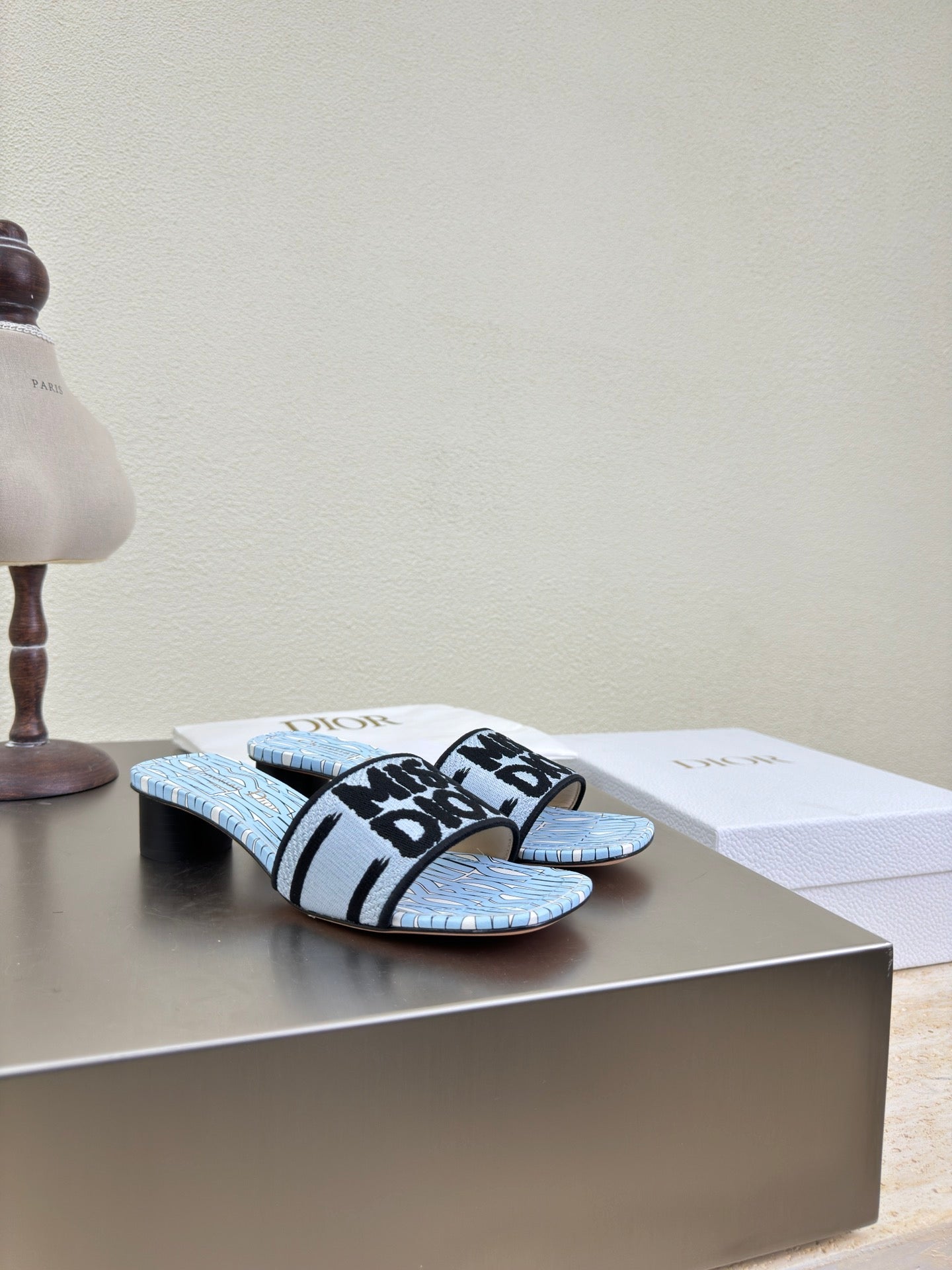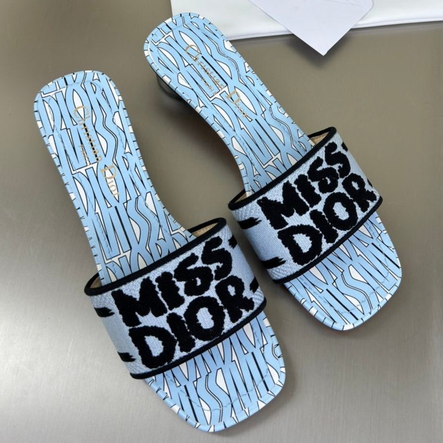 DWAY HEELED SLIDE EMBROIDERED COTTON AND LIGHT PINK MISS DIOR ALLOVER MOTIF 35 MM