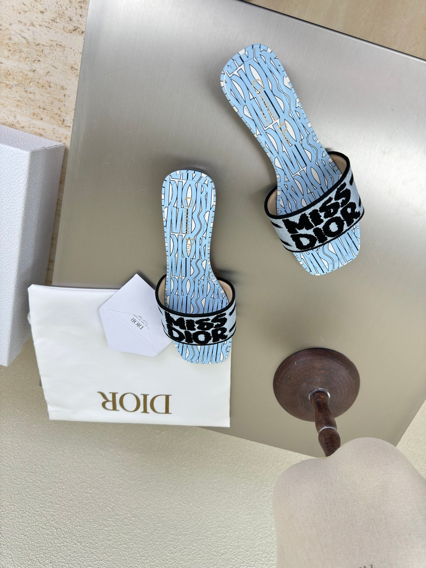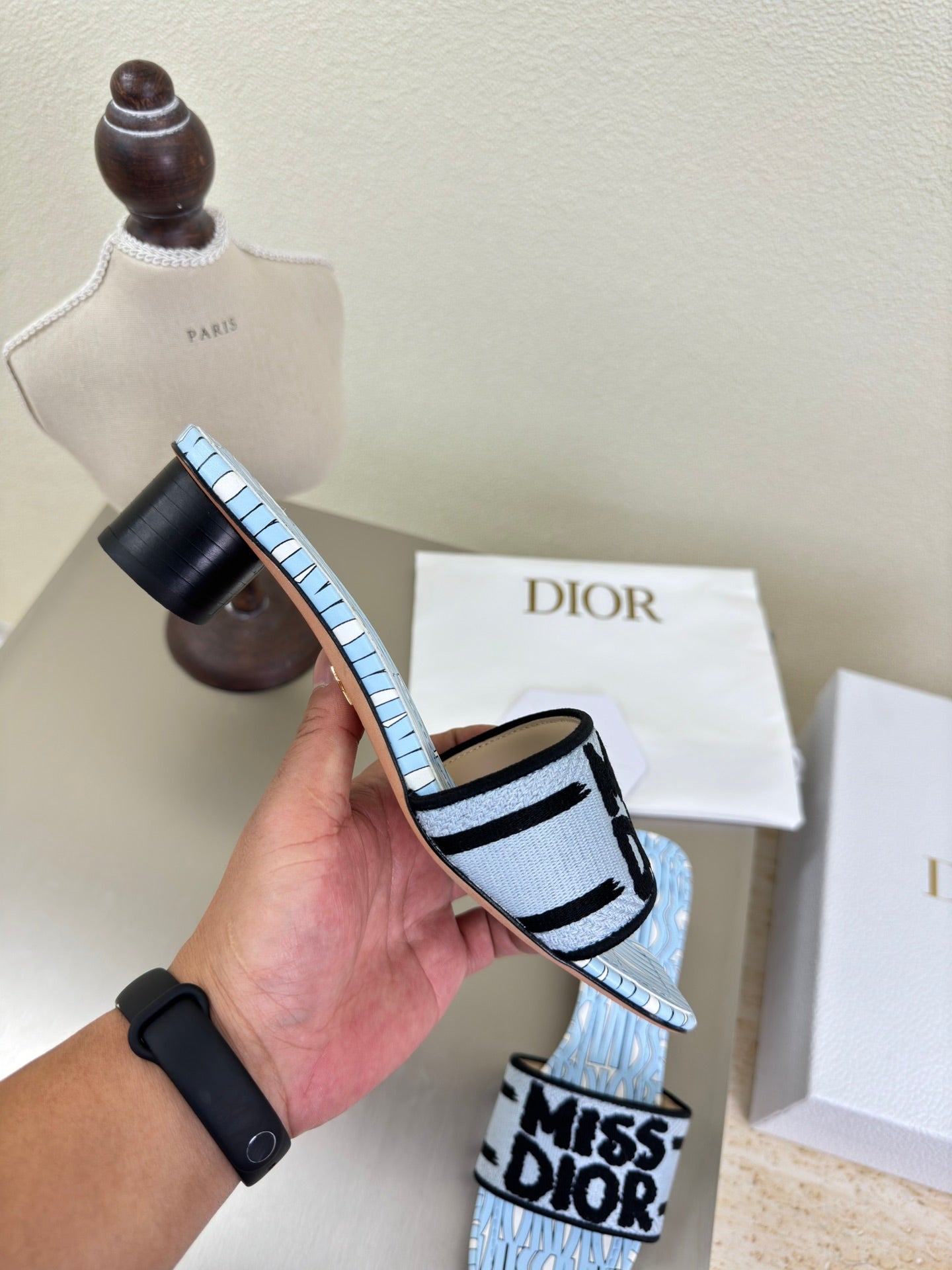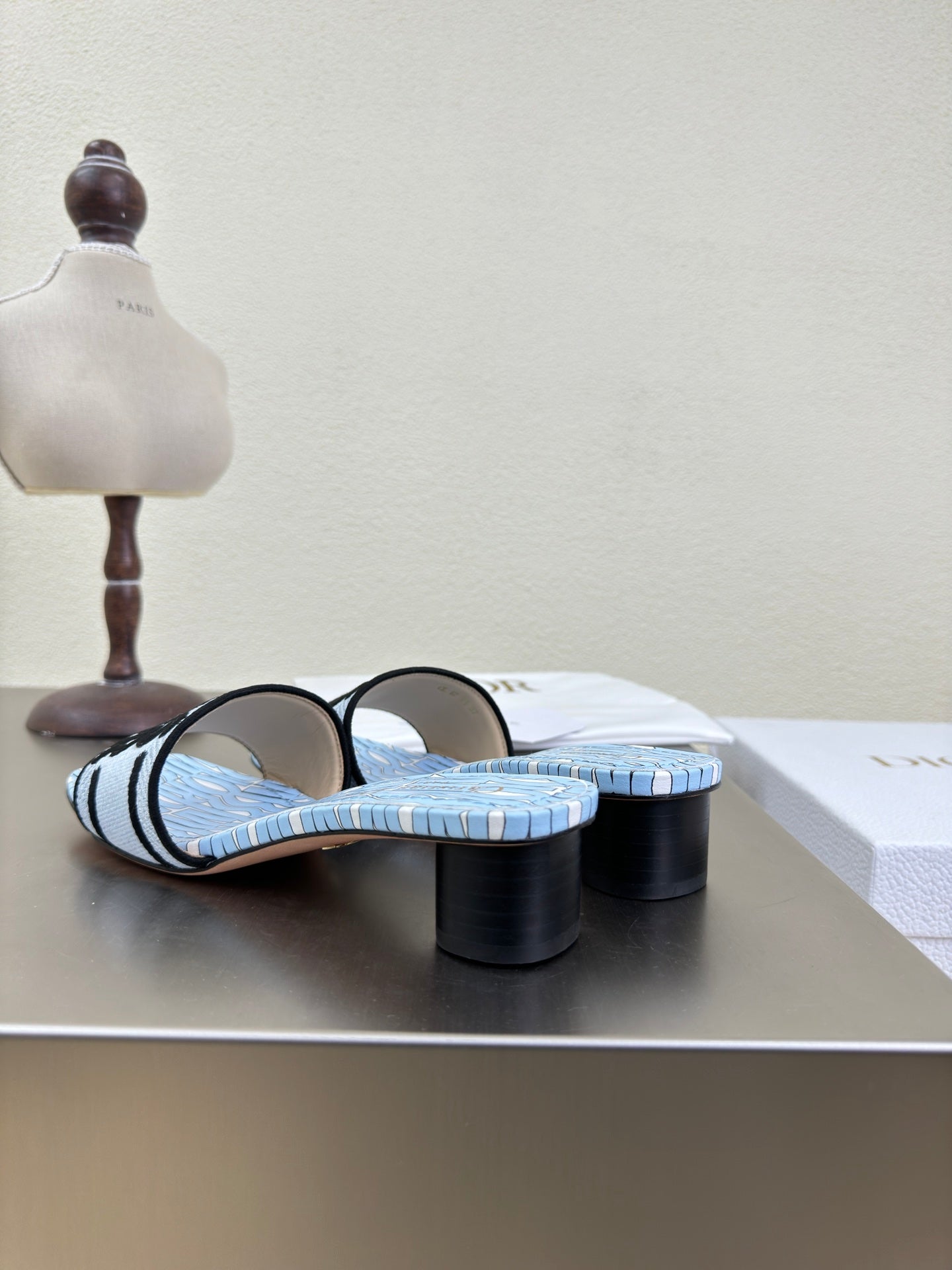 DWAY HEELED SLIDE EMBROIDERED COTTON AND LIGHT PINK MISS DIOR ALLOVER MOTIF 35 MM