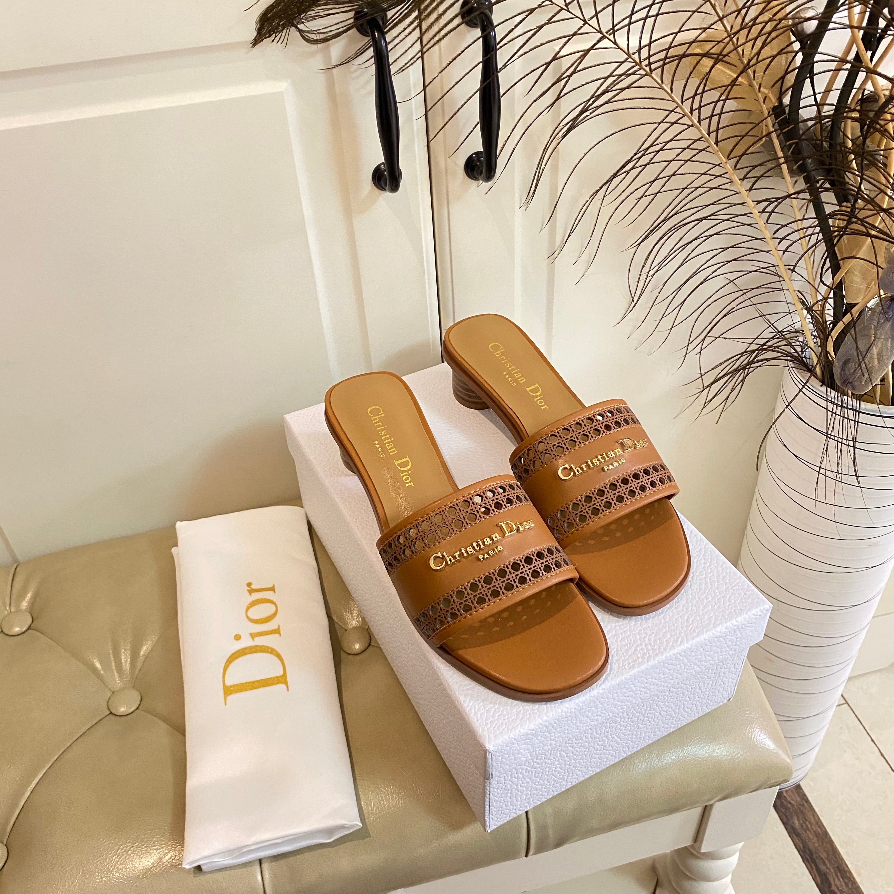DWAY HEELED SLIDE IN BRONZE BROWN CALFSKIN WITH GOLD LOGO