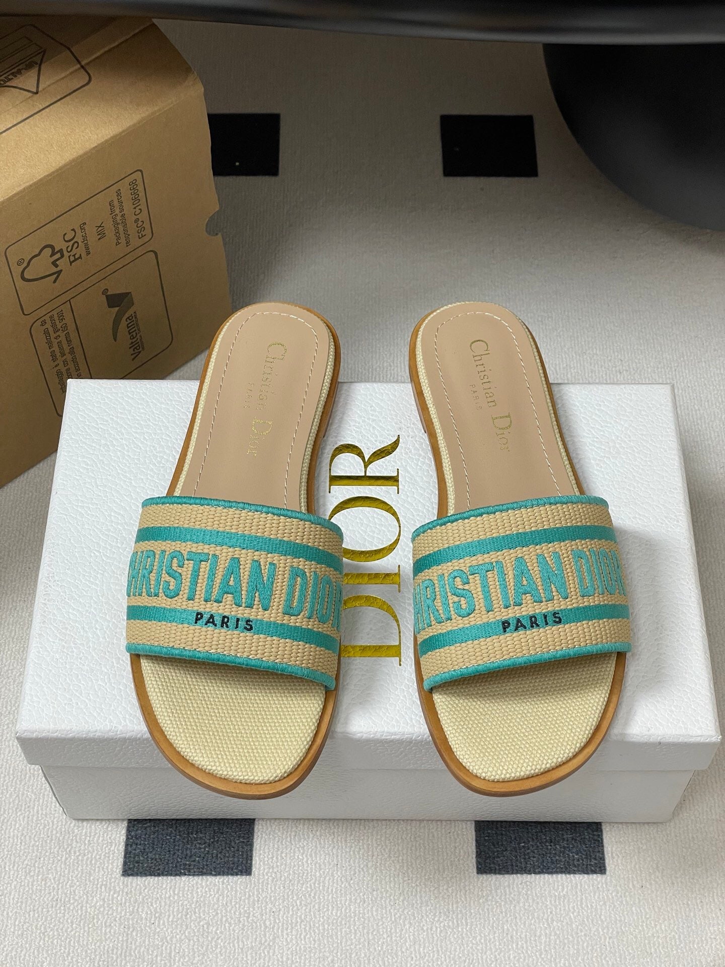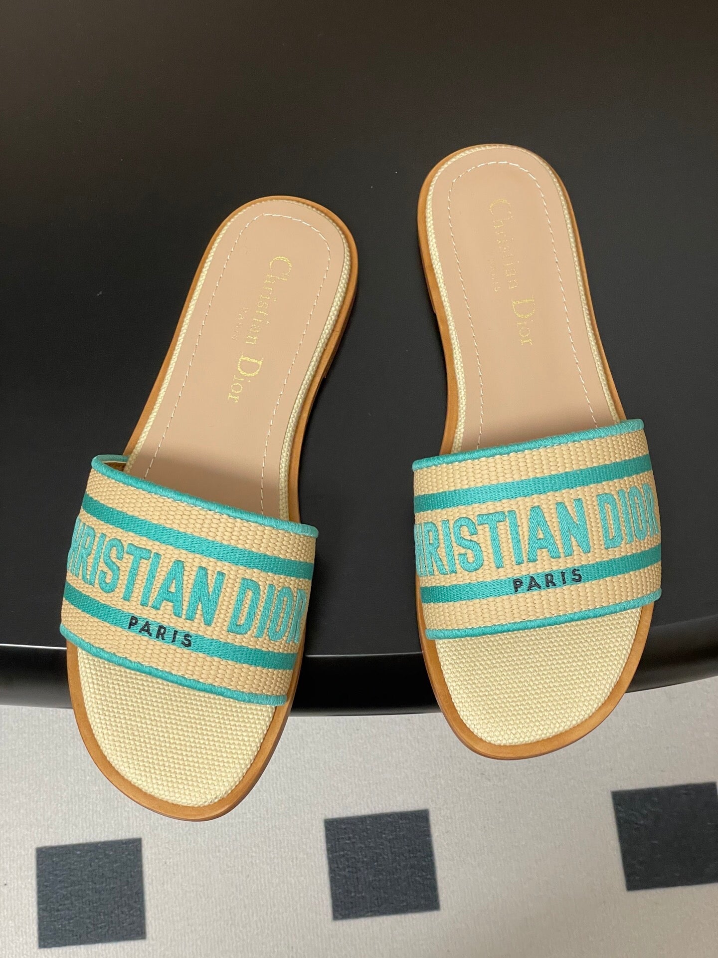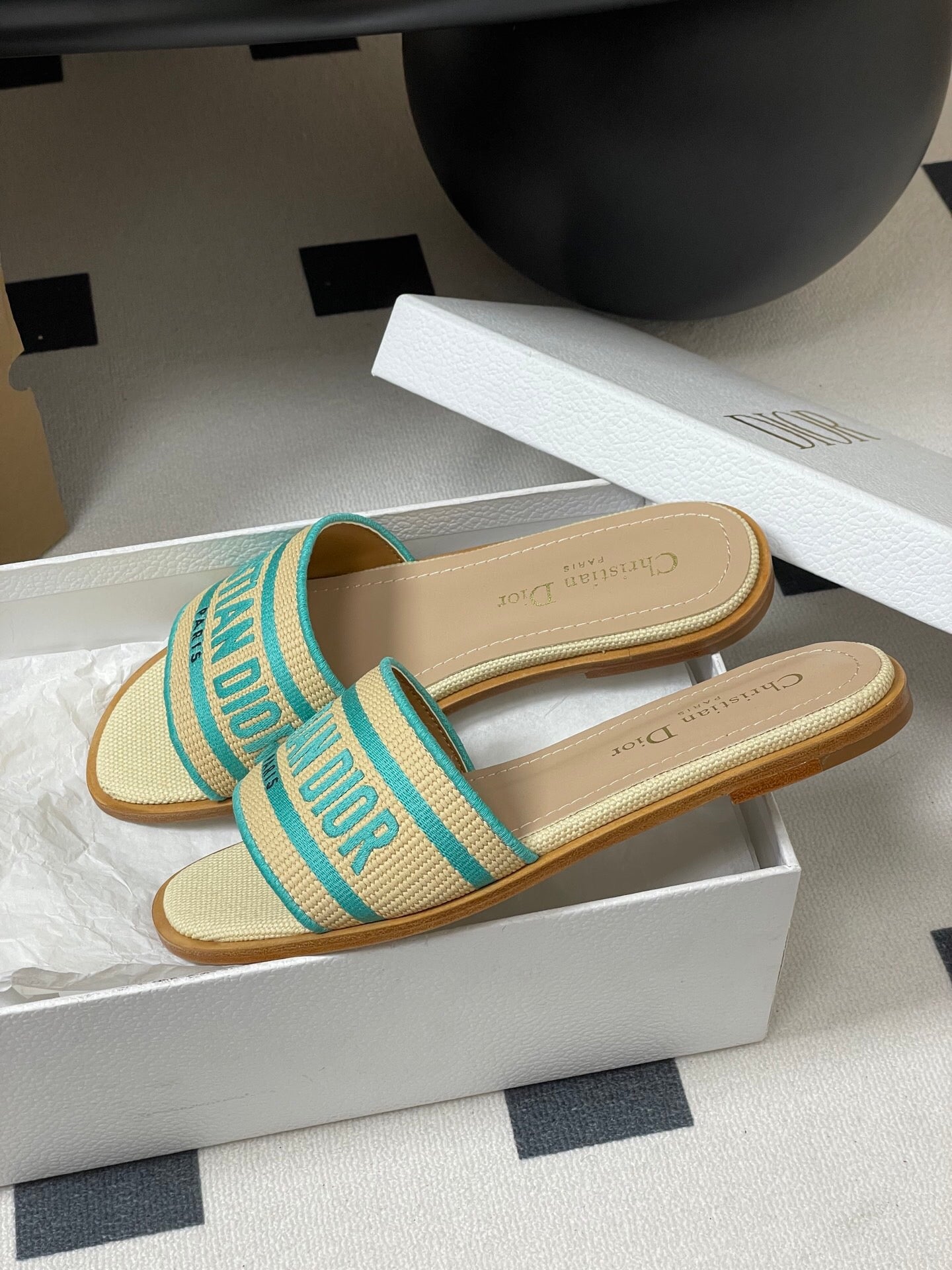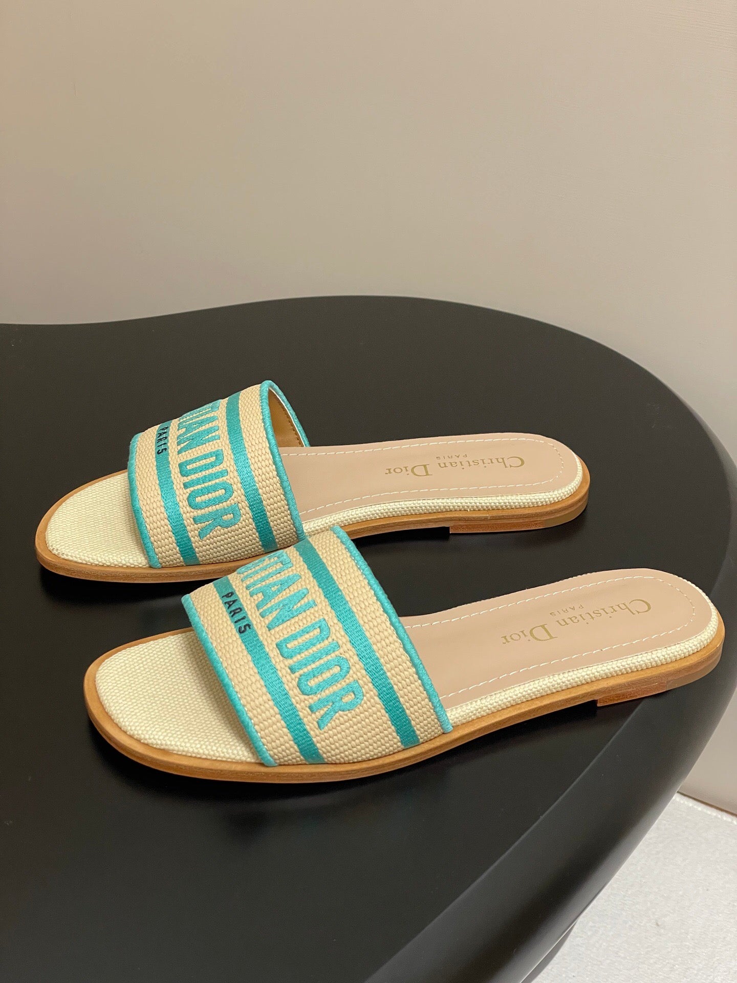 DWAY SLIDES IN BEIGE TURQUOISE CANVAS