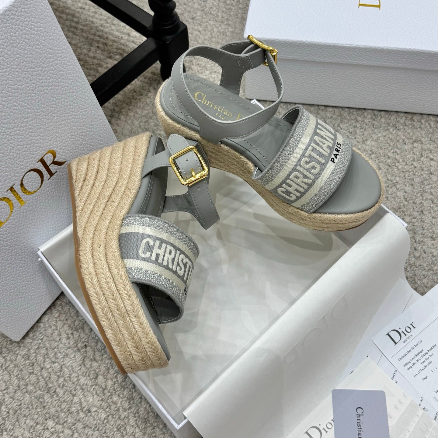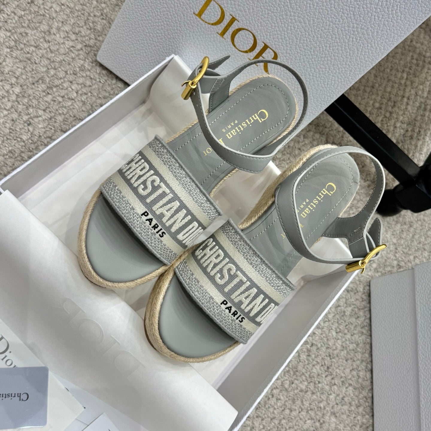 DWAY WEDGE SANDAL 25S 95MM IN GRAY EMBROIDERED COTTON RAFFIA SOLE