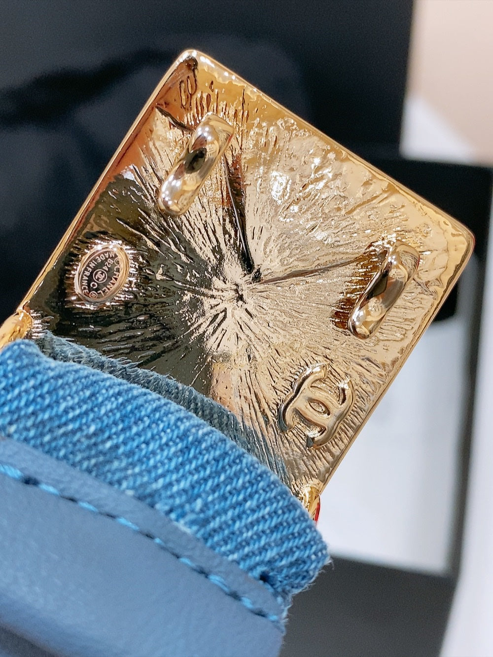 ELASTIC BELT 30MM IN BLUE DENIM WITH SQUARE BUCKLE EMBOSSED LOGO