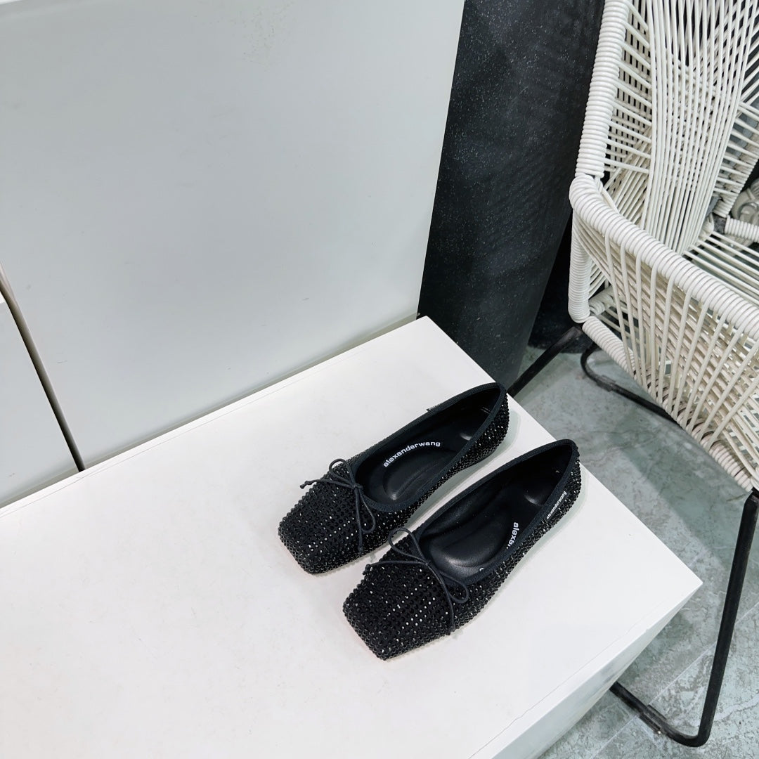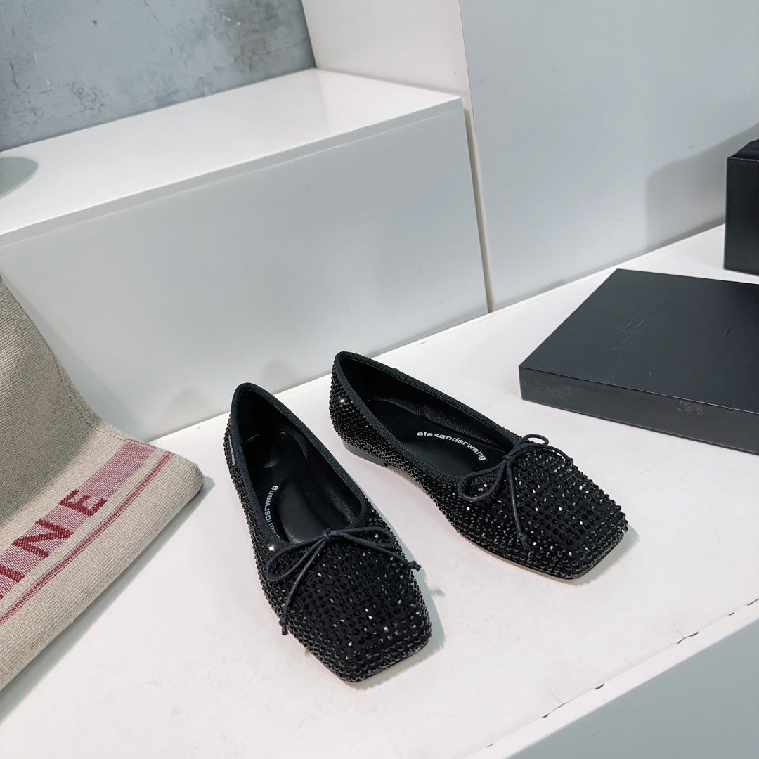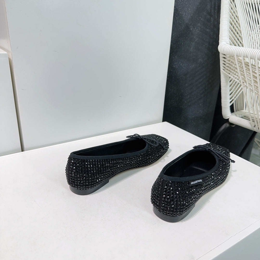 EMBELLISHED BILLIE FLATS IN BLACK CRYSTAL SATIN