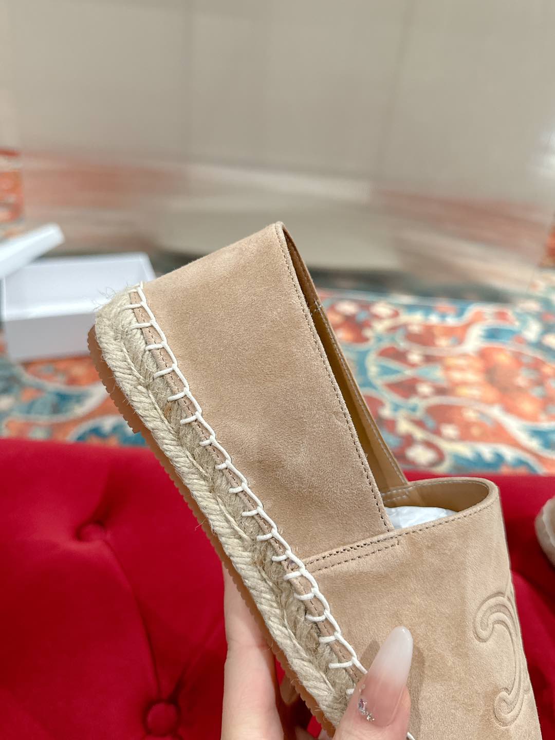 ESPADRILLES BEIGE SUEDE EMBOSSED LOGO