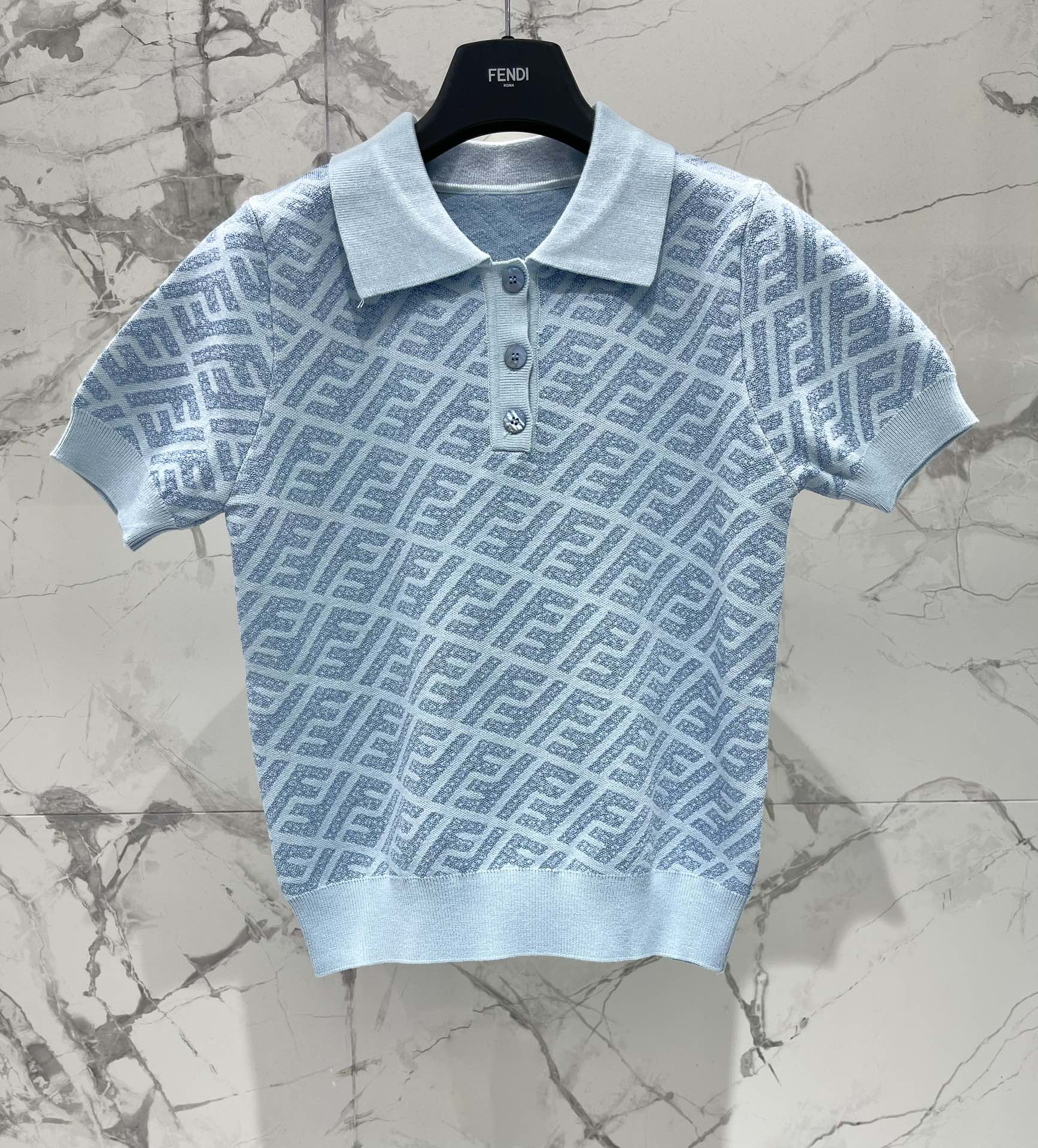 FEND 25S SHORT SLEEVE JACQUARD KNIT LAPEL 264232