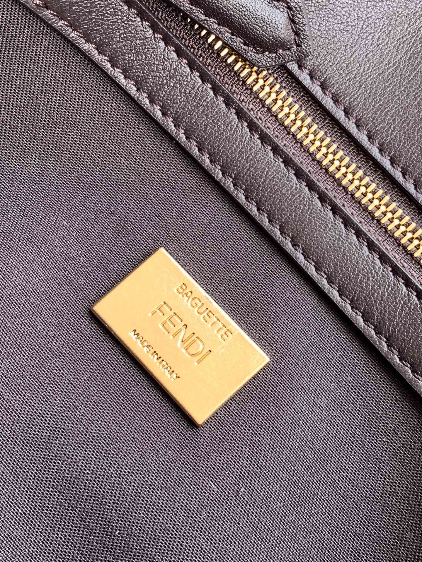 Fend Baguette 24 Brown FF Jacquard Fabric Bag Ghw
