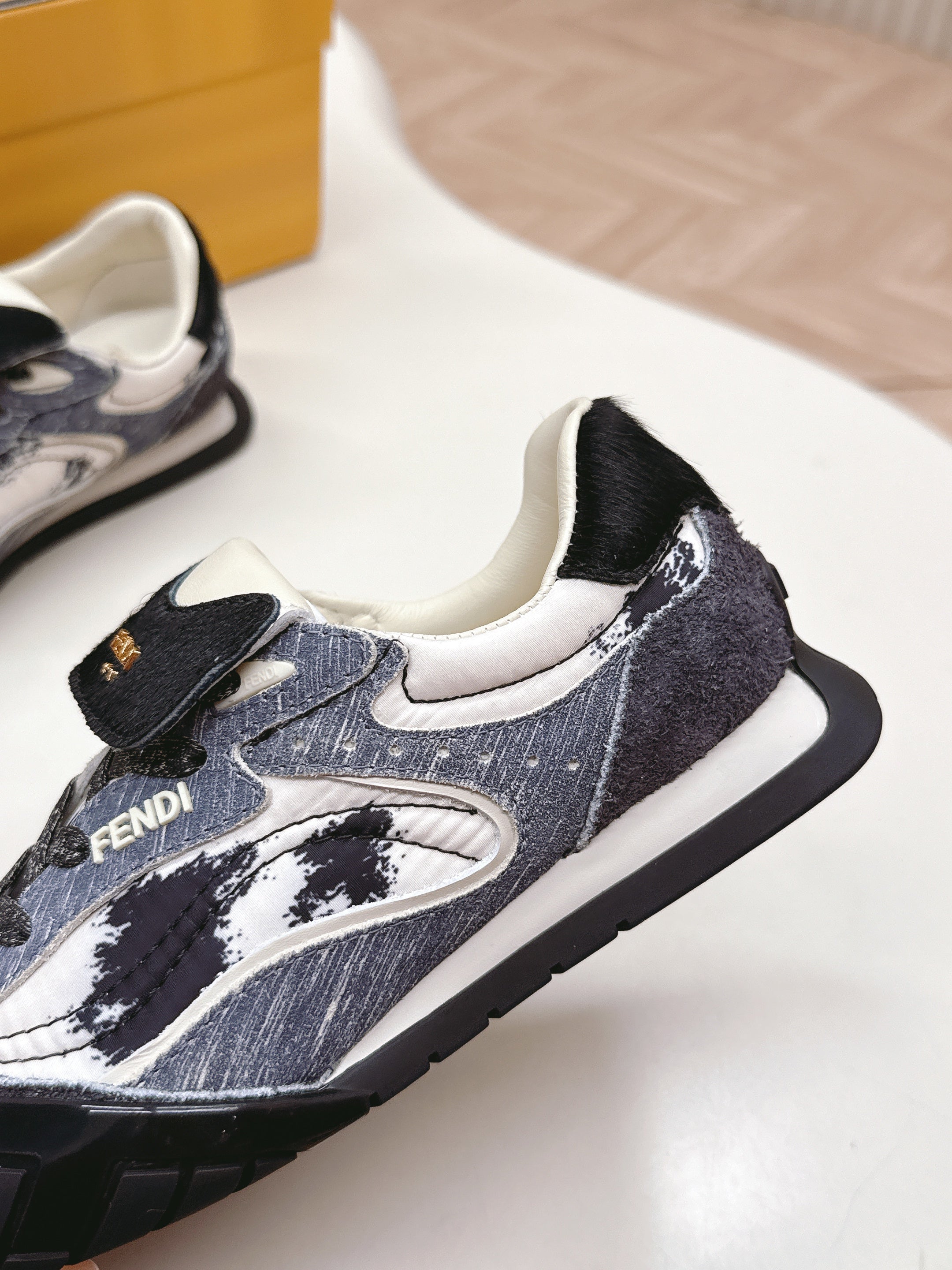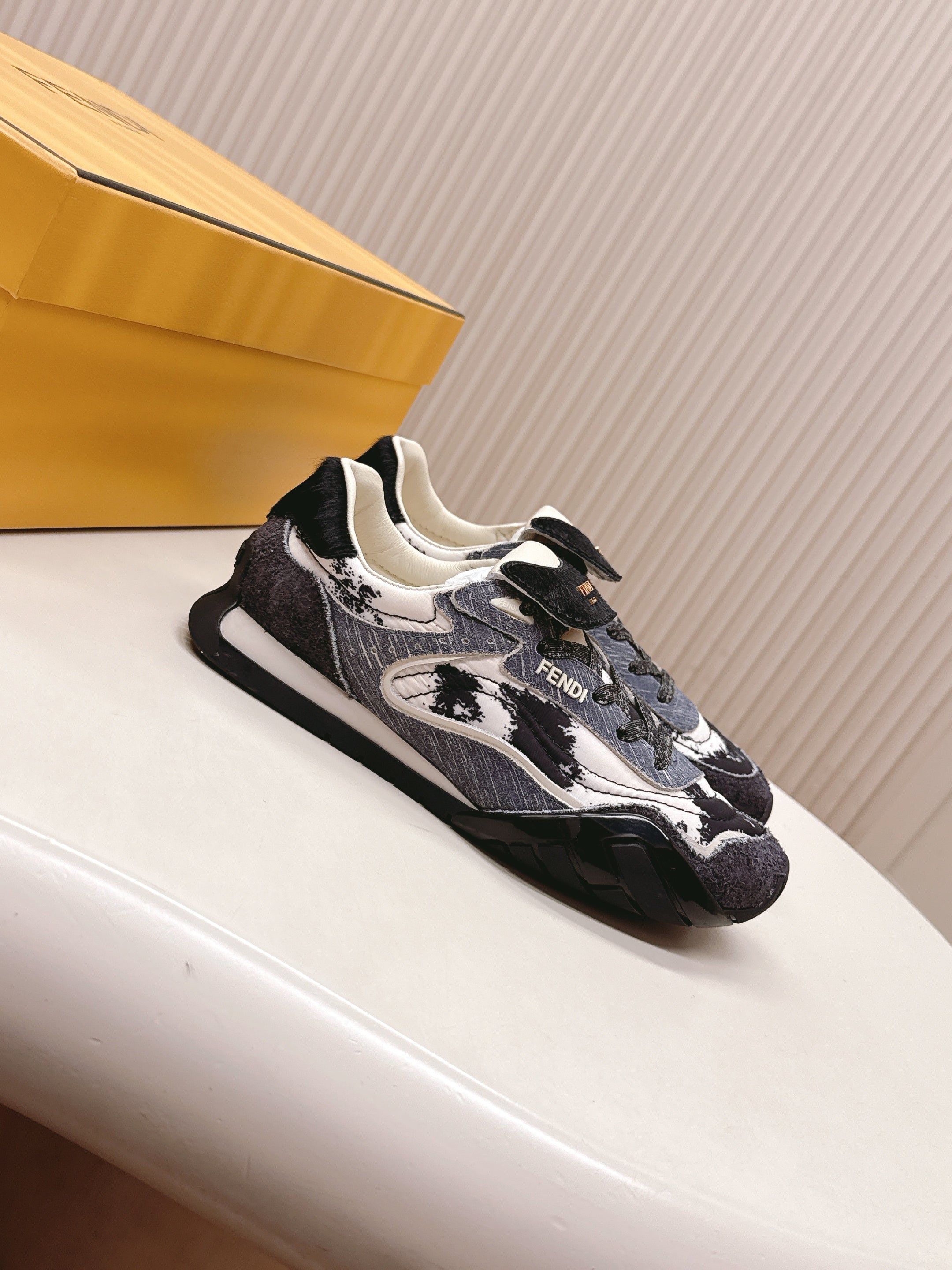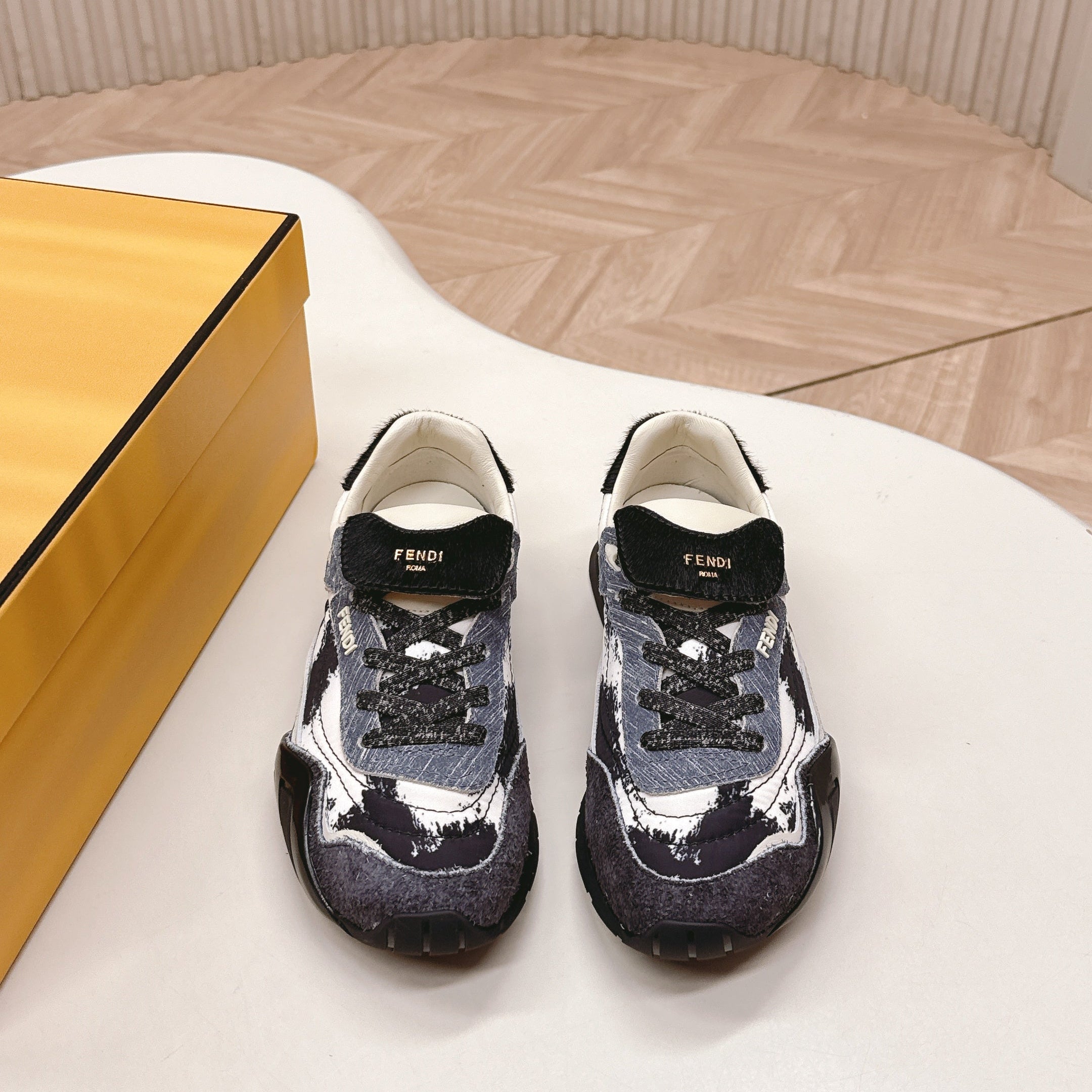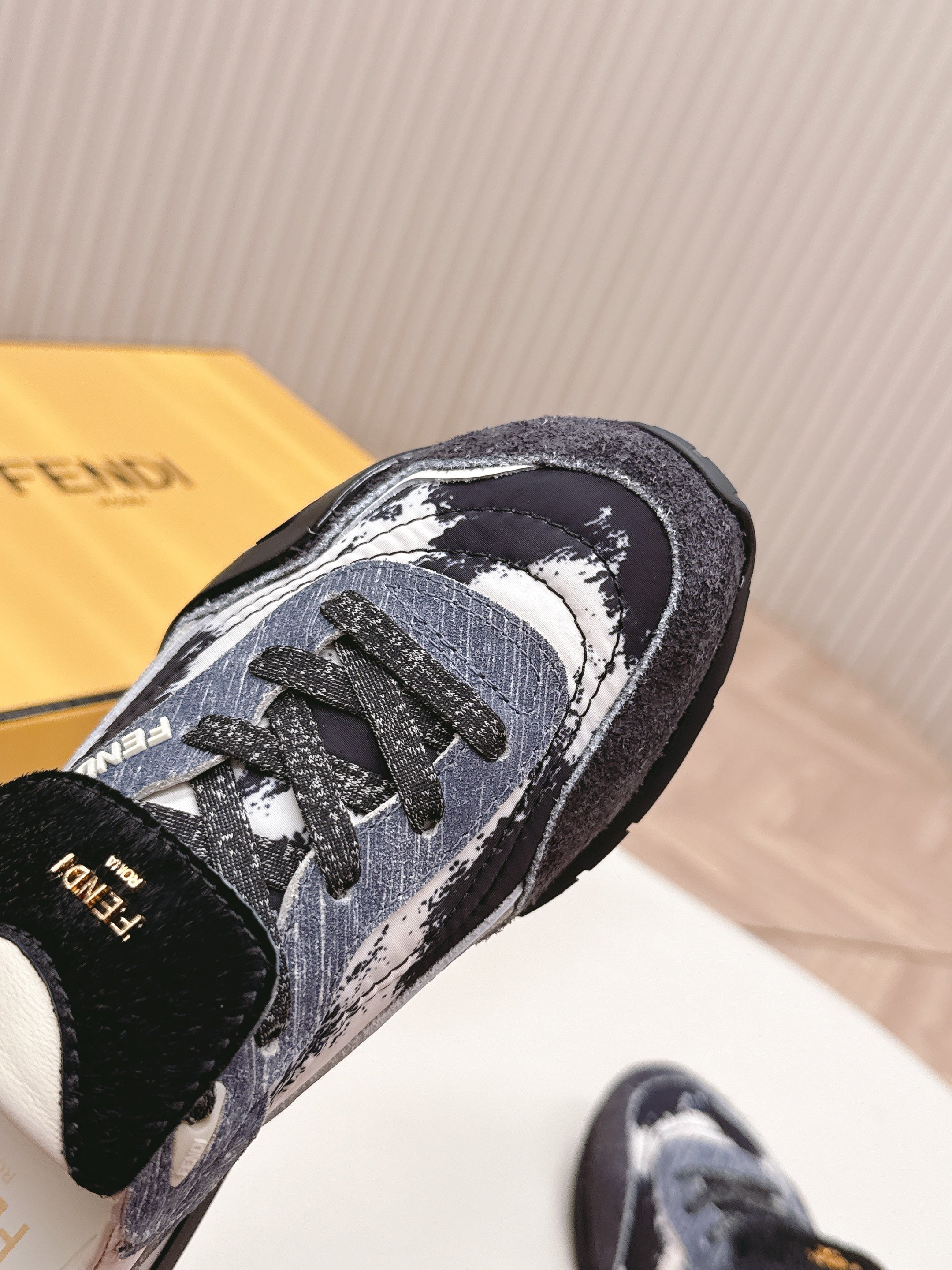 FENDI 25S CORTEZ RETRO SNEAKERS IN DARK CHARCOAL PURPLE SUEDE AND FABRIC