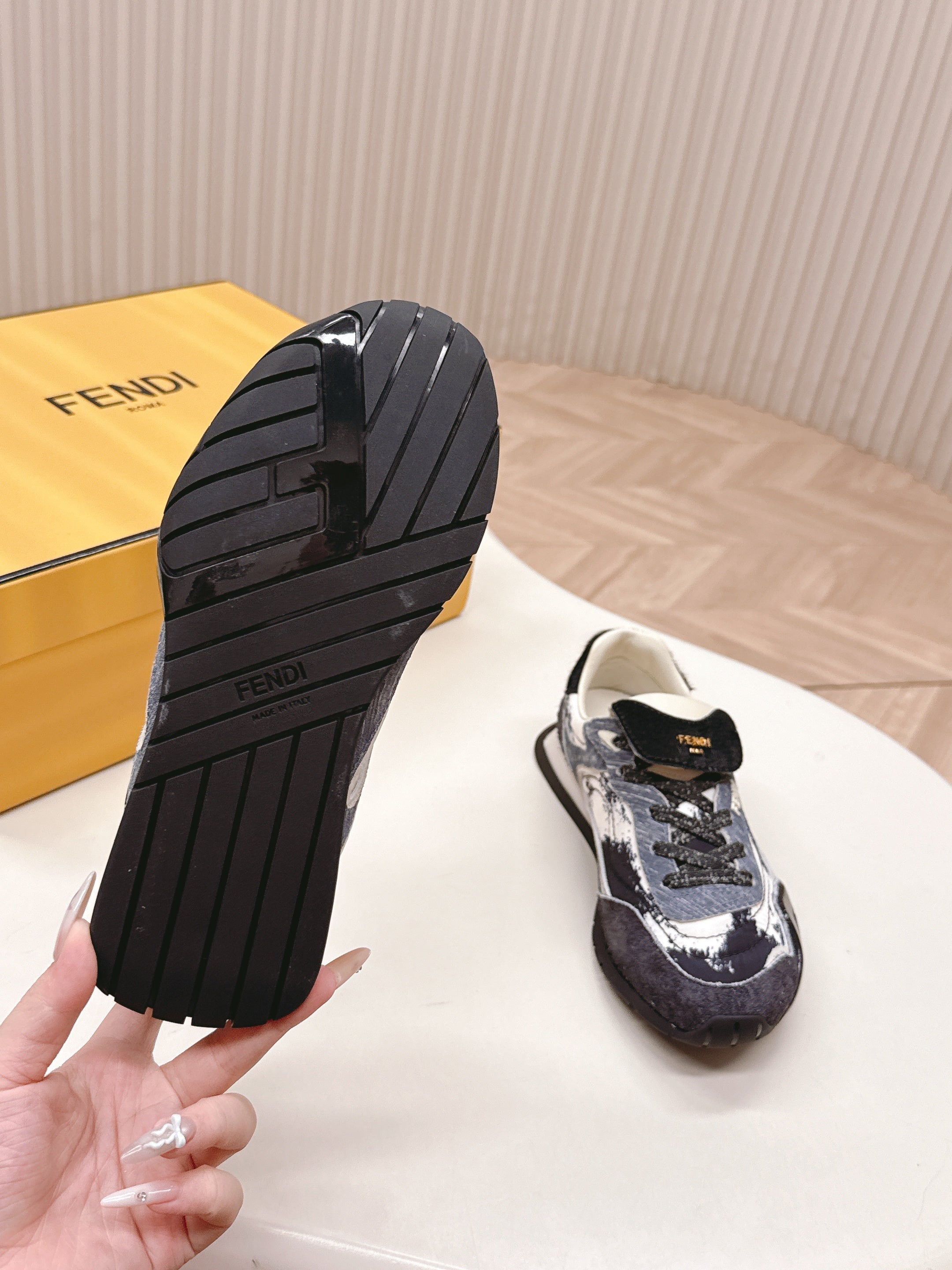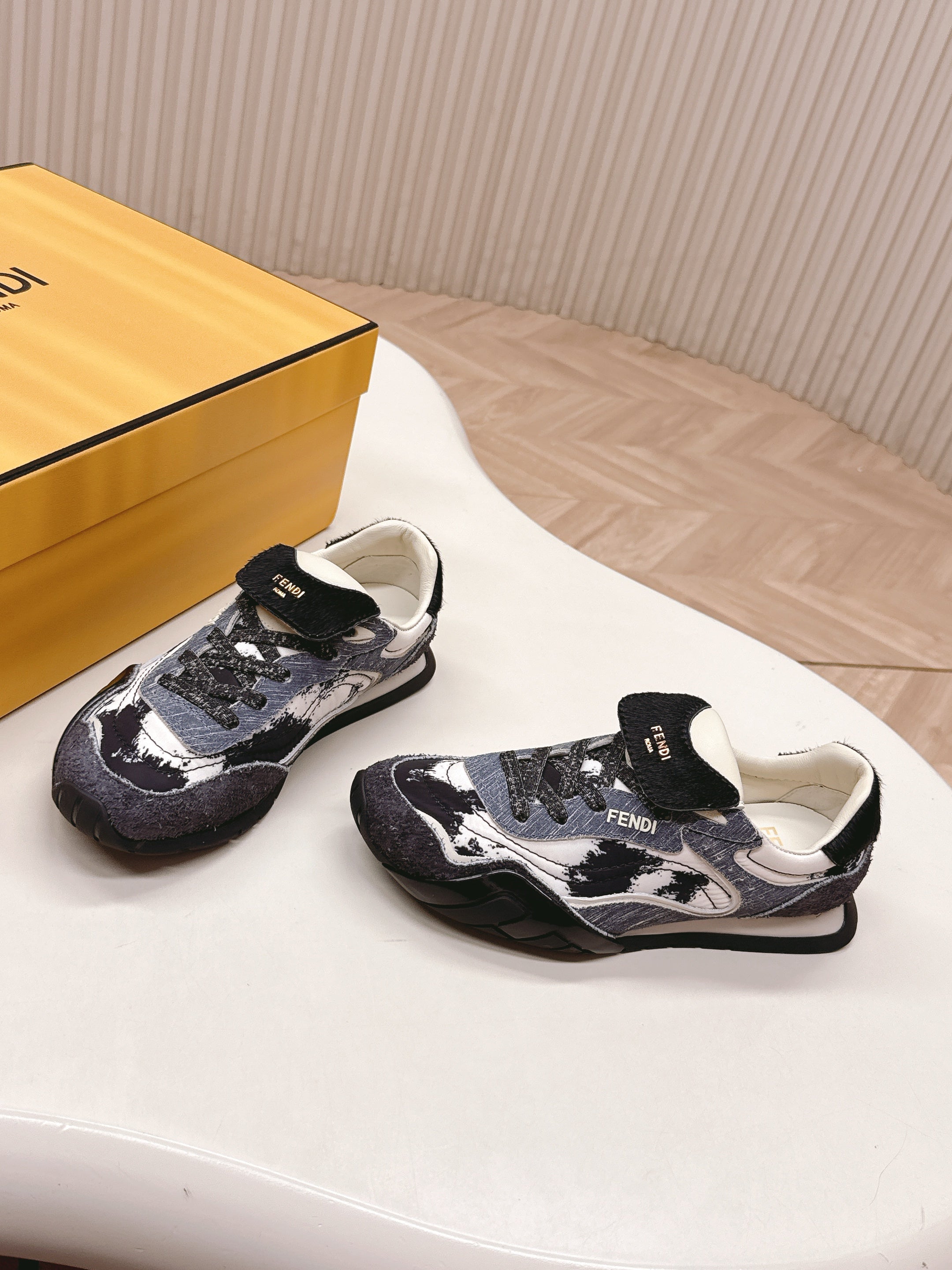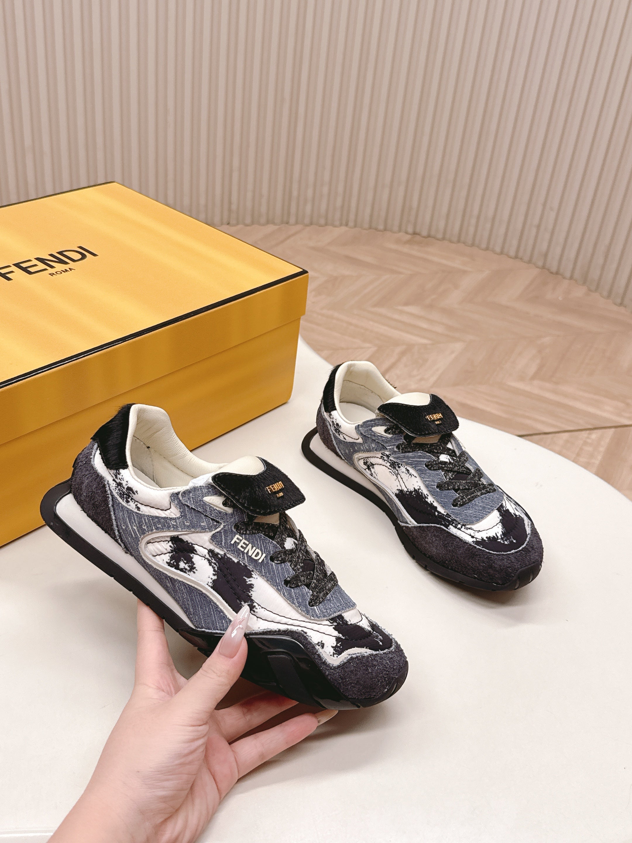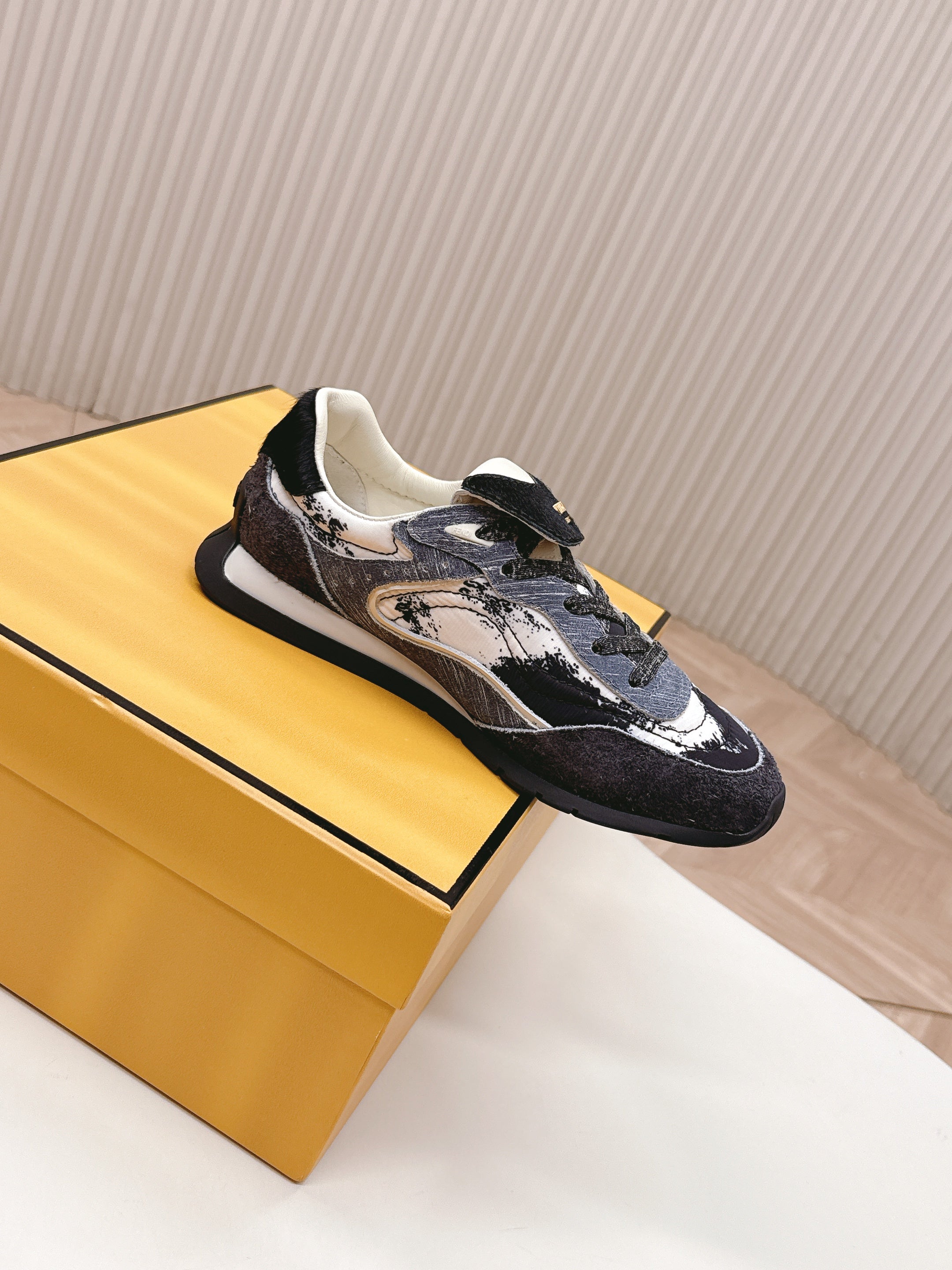 FENDI 25S CORTEZ RETRO SNEAKERS IN DARK CHARCOAL PURPLE SUEDE AND FABRIC