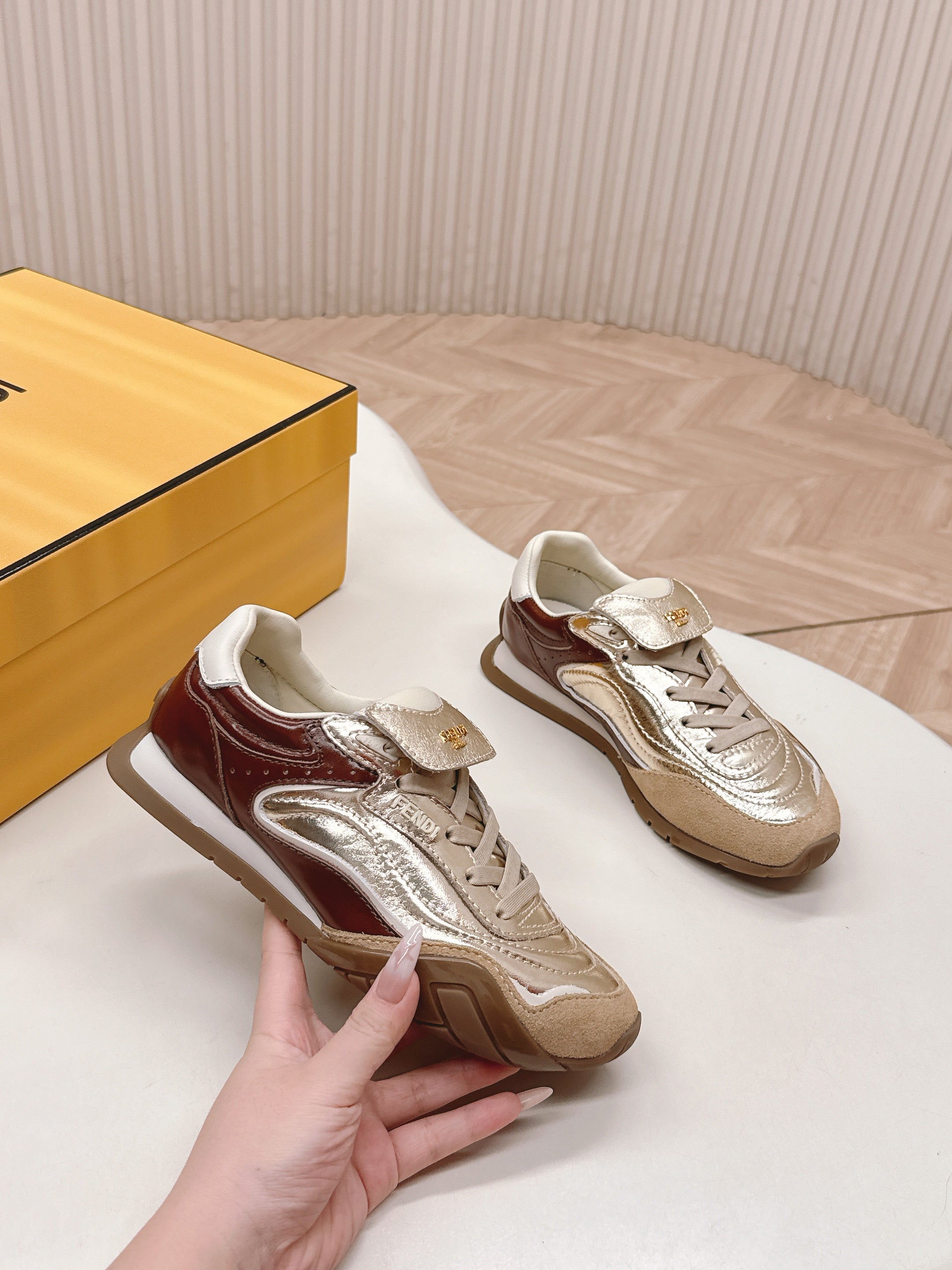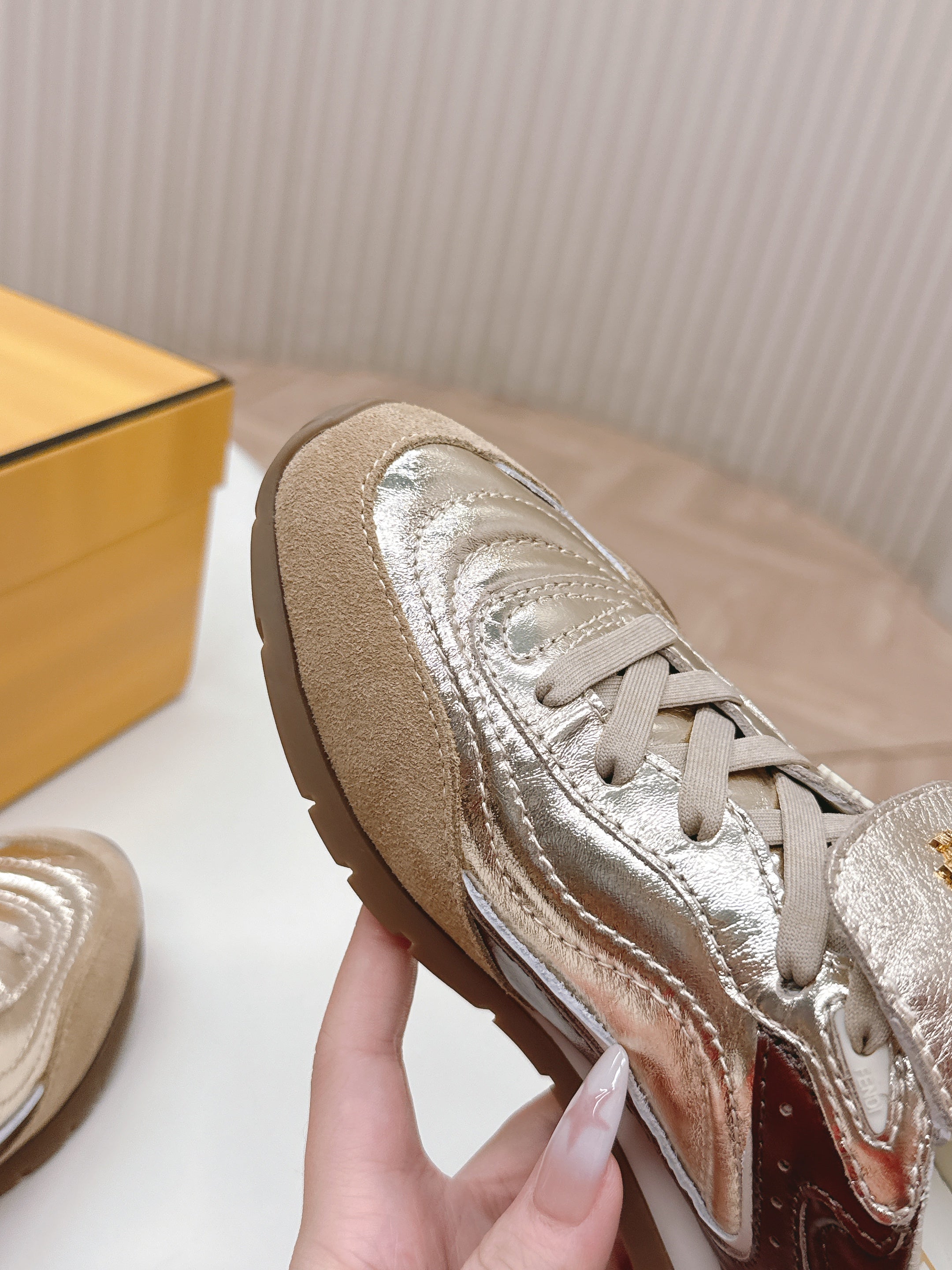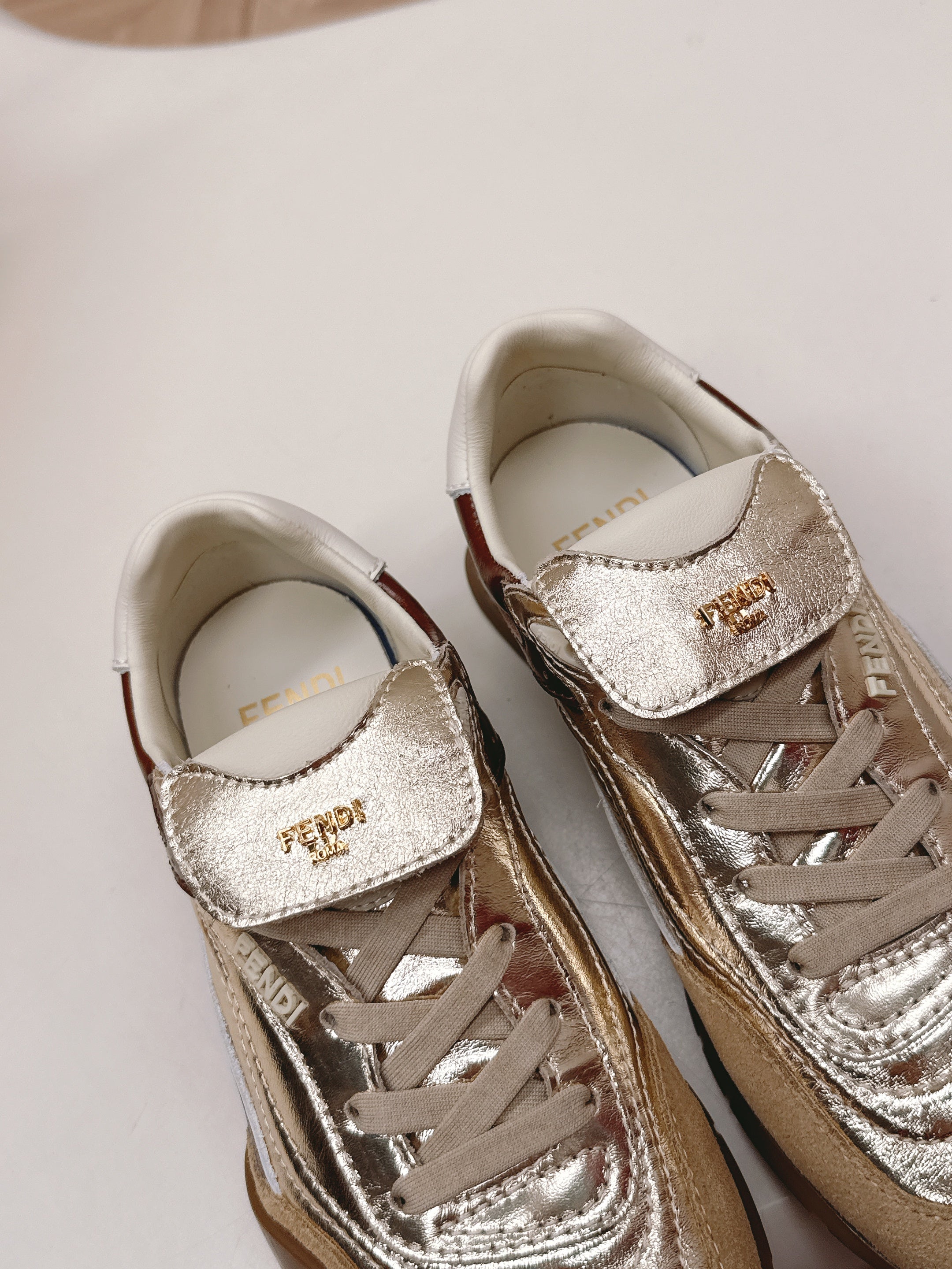 FENDI 25S CORTEZ RETRO SNEAKERS IN SOFT GOLD MIX BROWN LAMBSKIN
